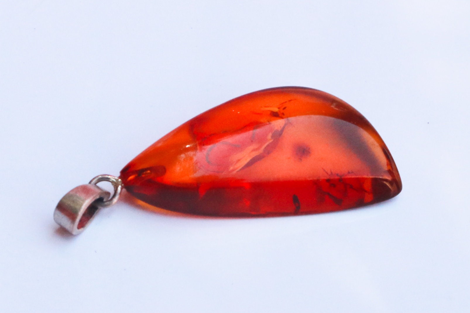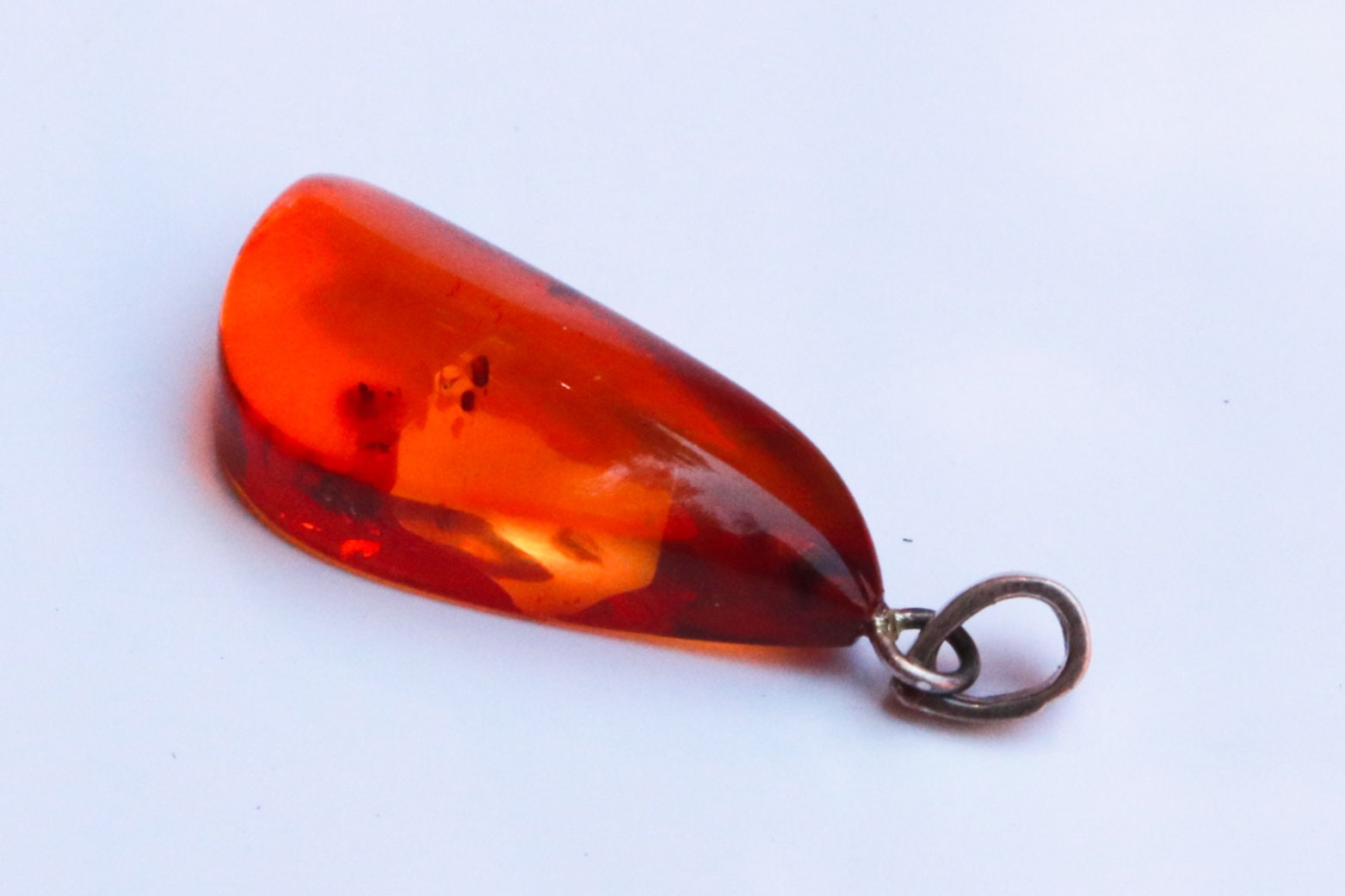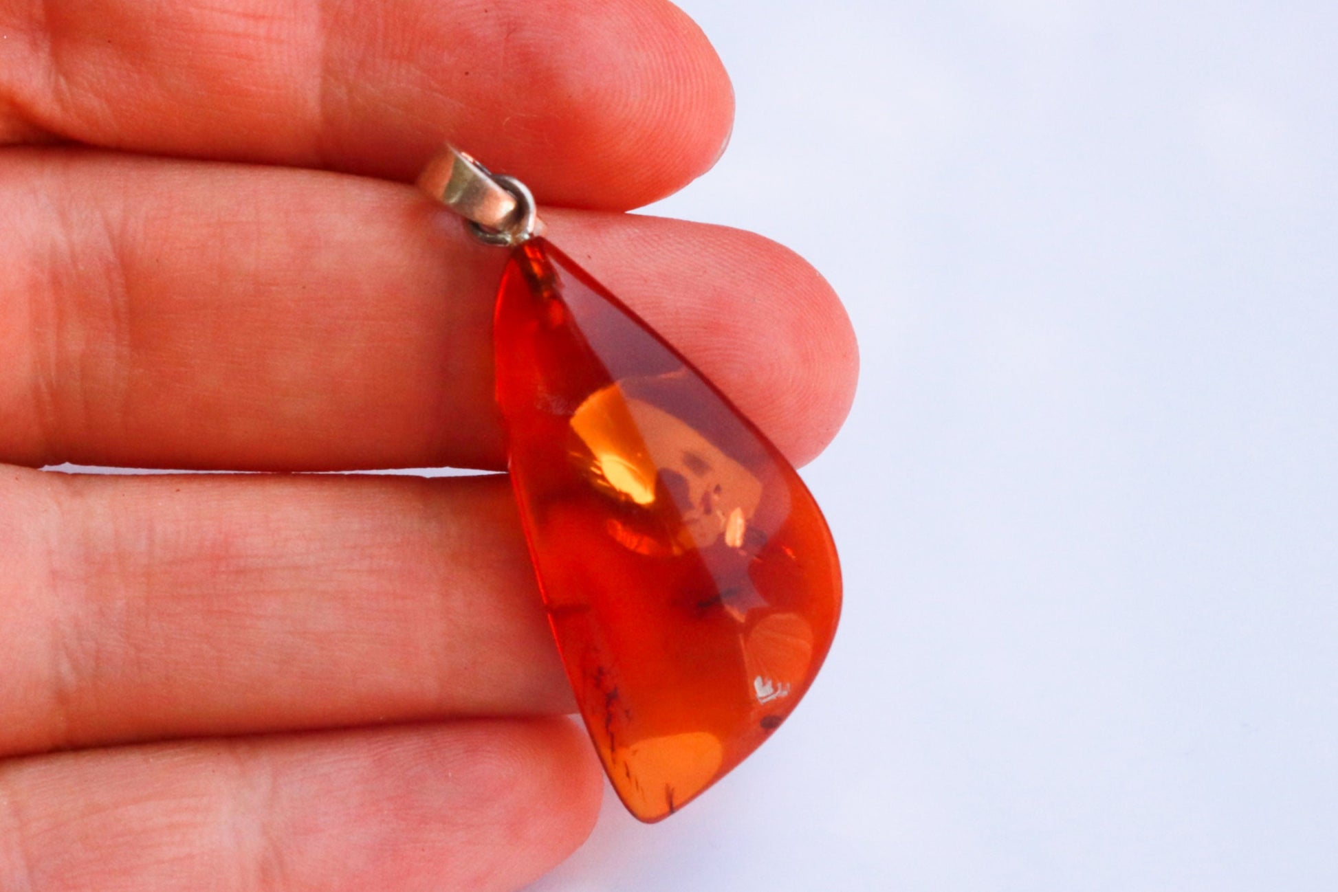 Baltic Amber Pendant Cognac Unisex Natural Jewelry 1.64″ 2.9 gram 925 Silver