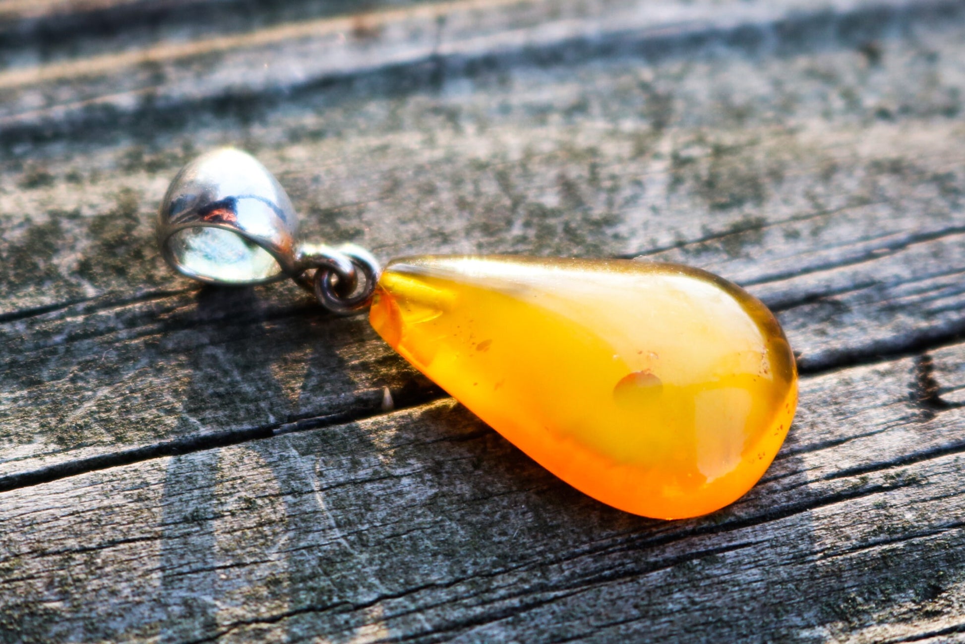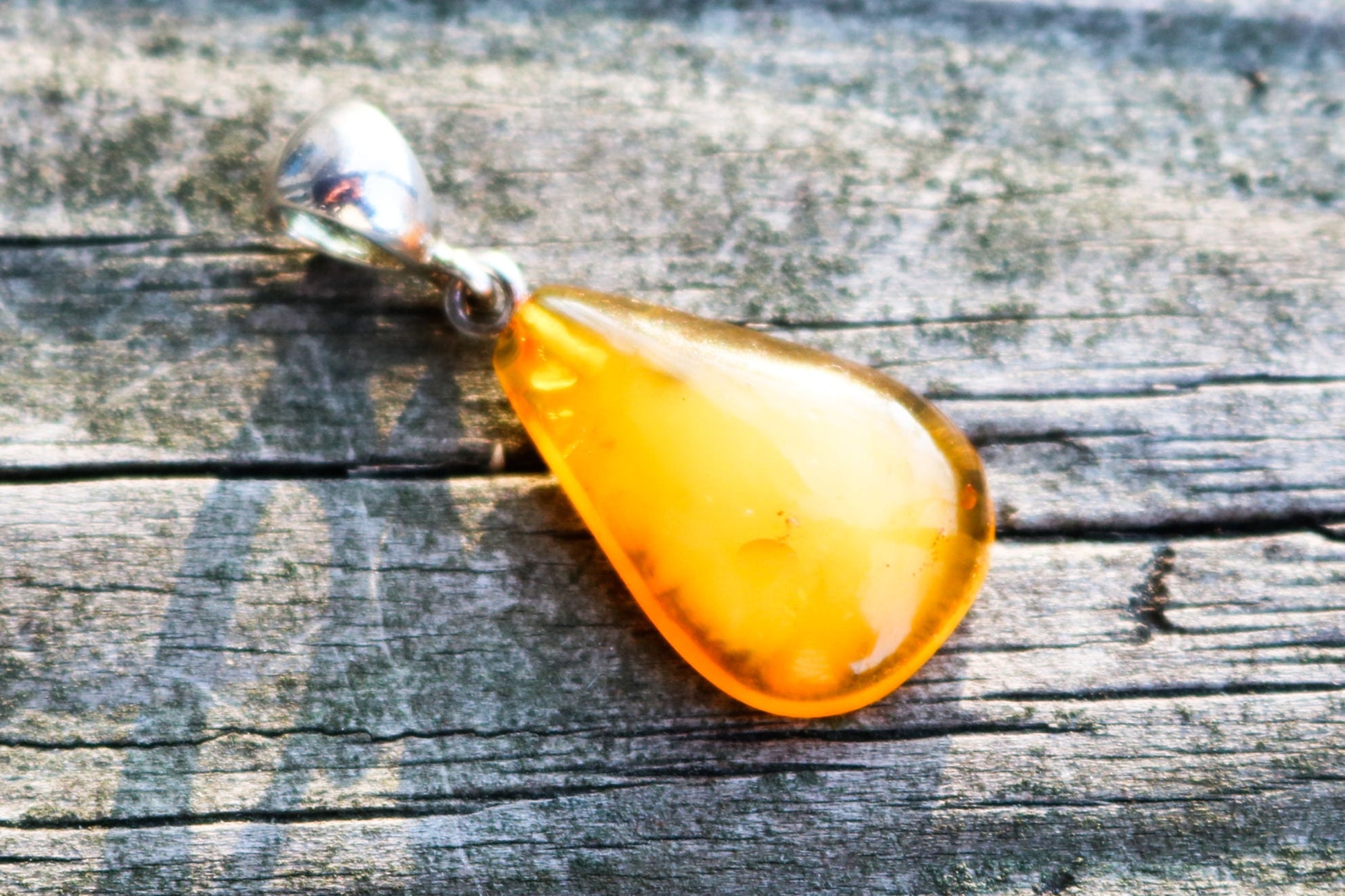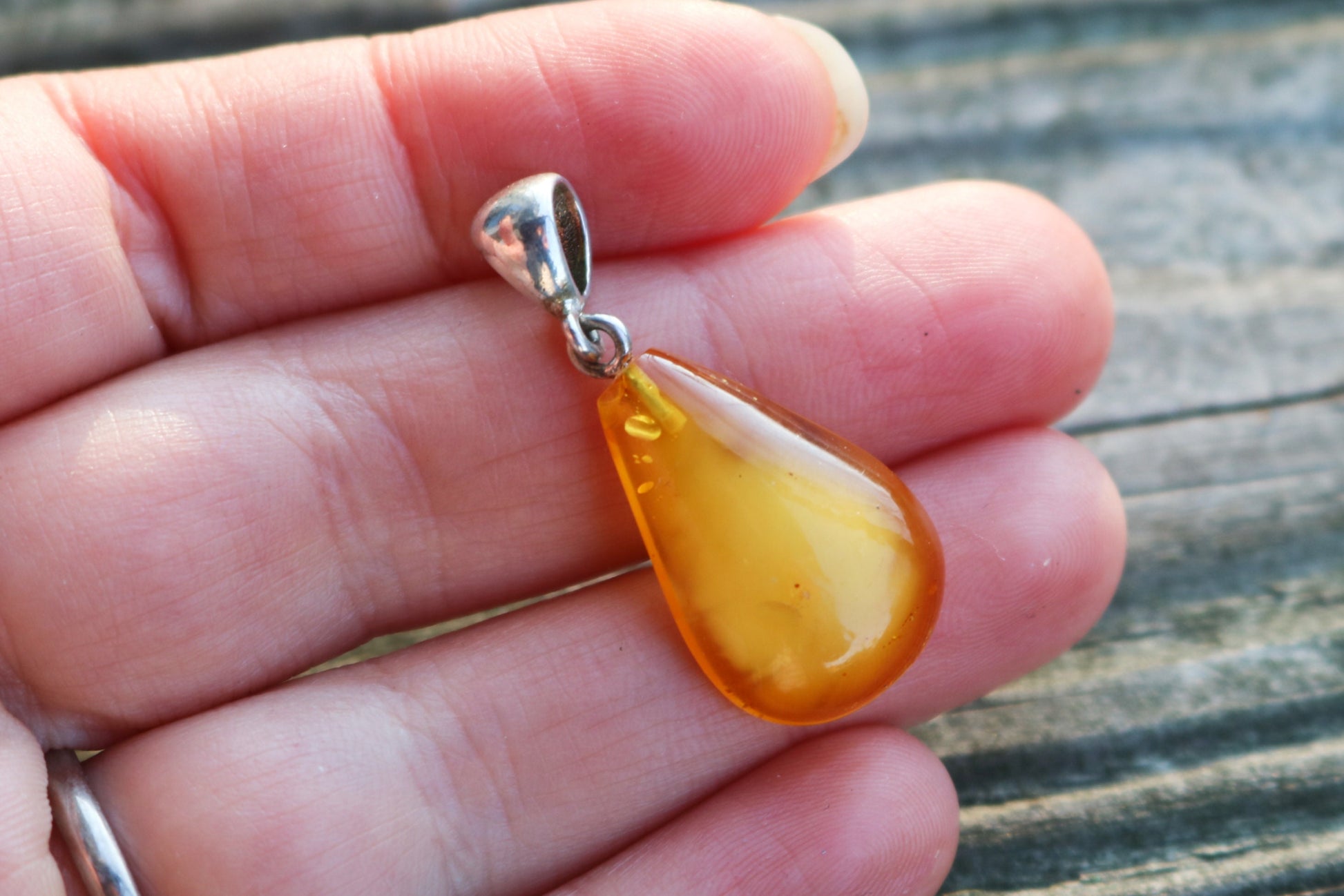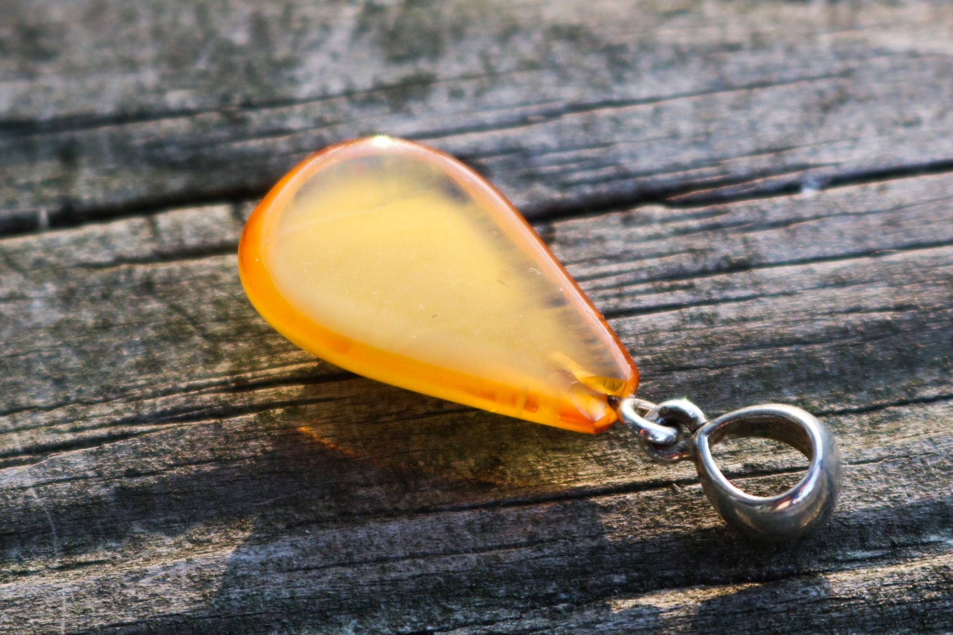 Baltic Amber Pendant Drop Cloudy Yolk Natural Untreated Unisex 1.38" 2 gram 925 Silver
