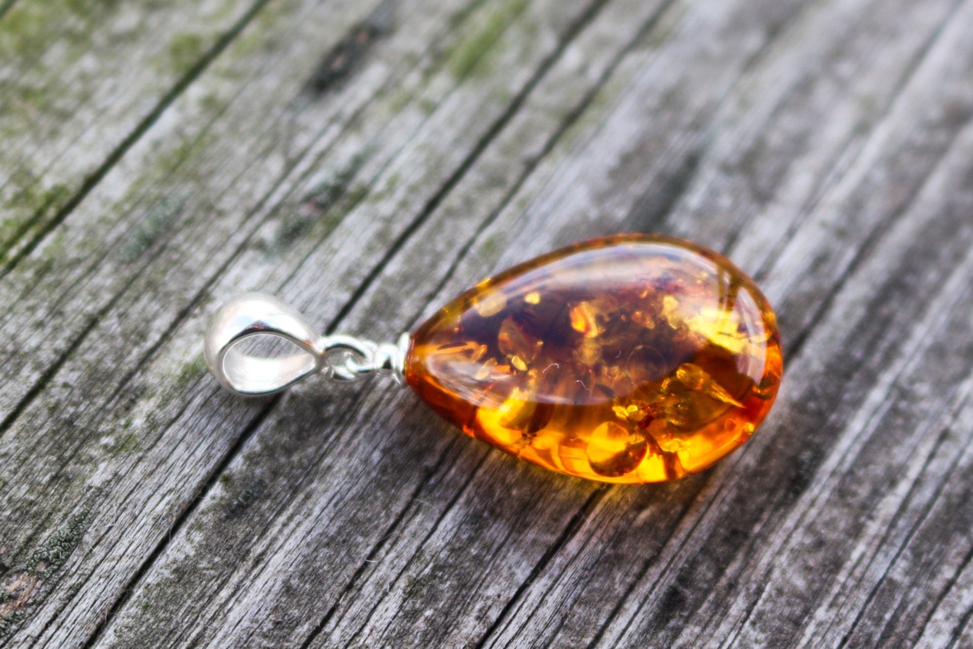 Baltic Amber Pendant Drop Honey Sparkling Unisex 1.41″ 2.8 gram 925 Silver