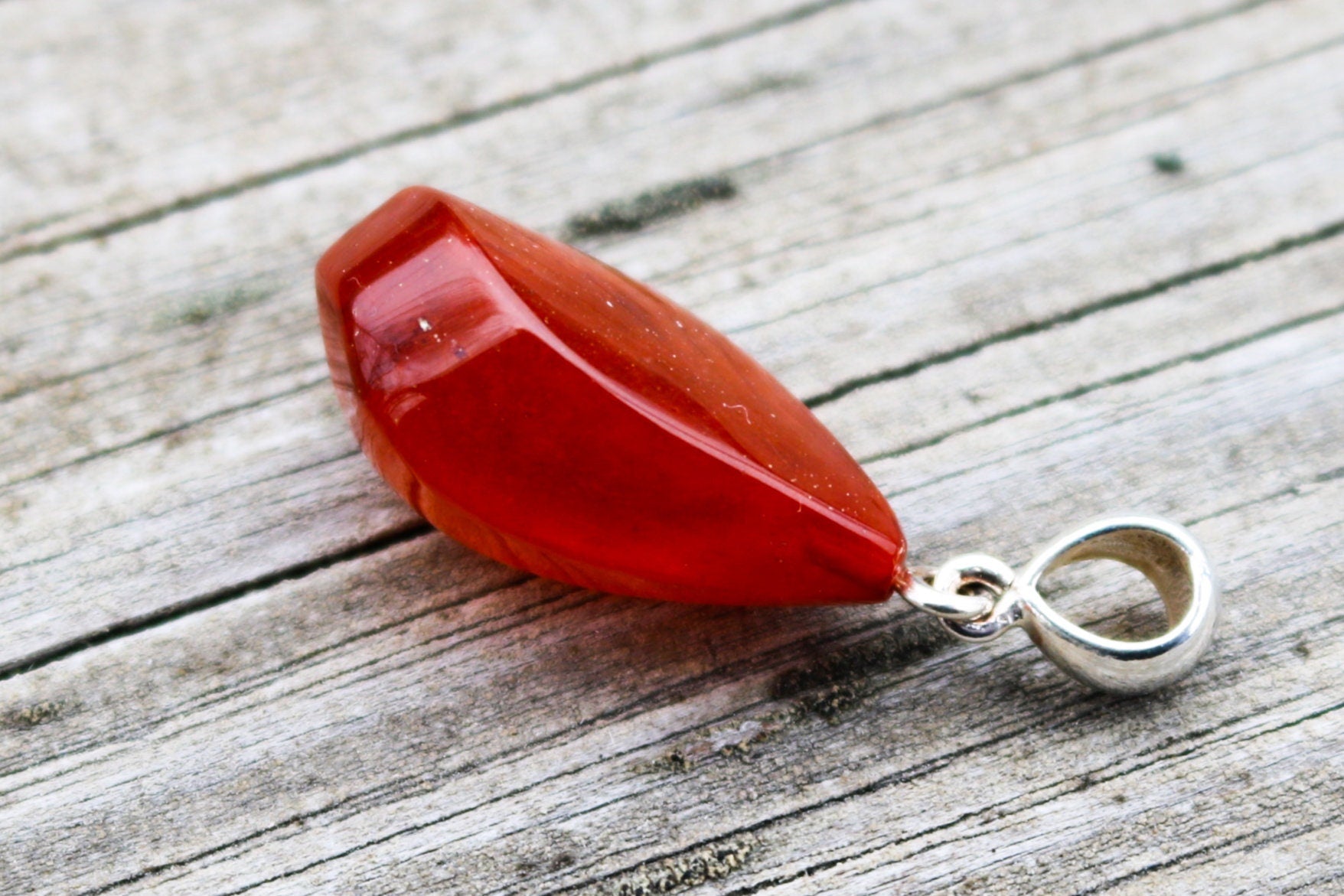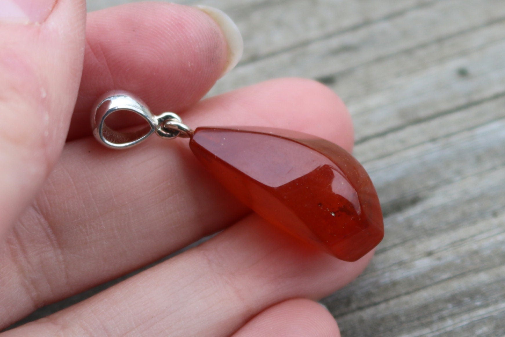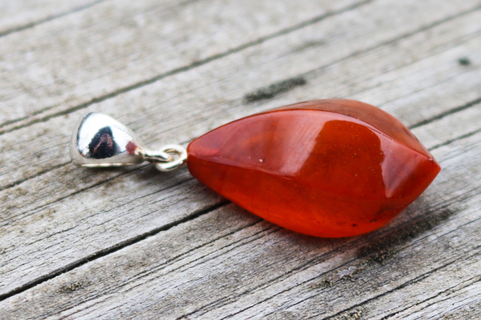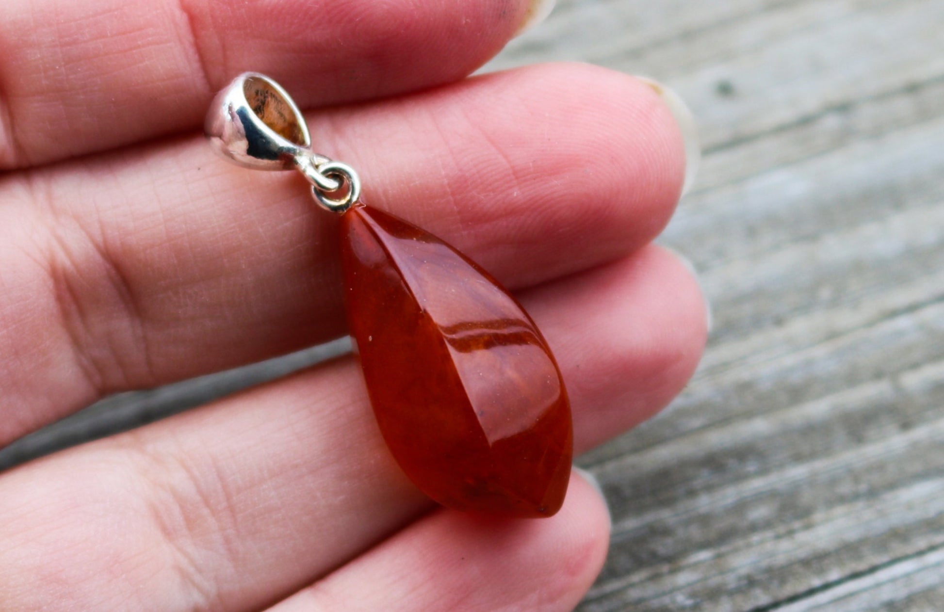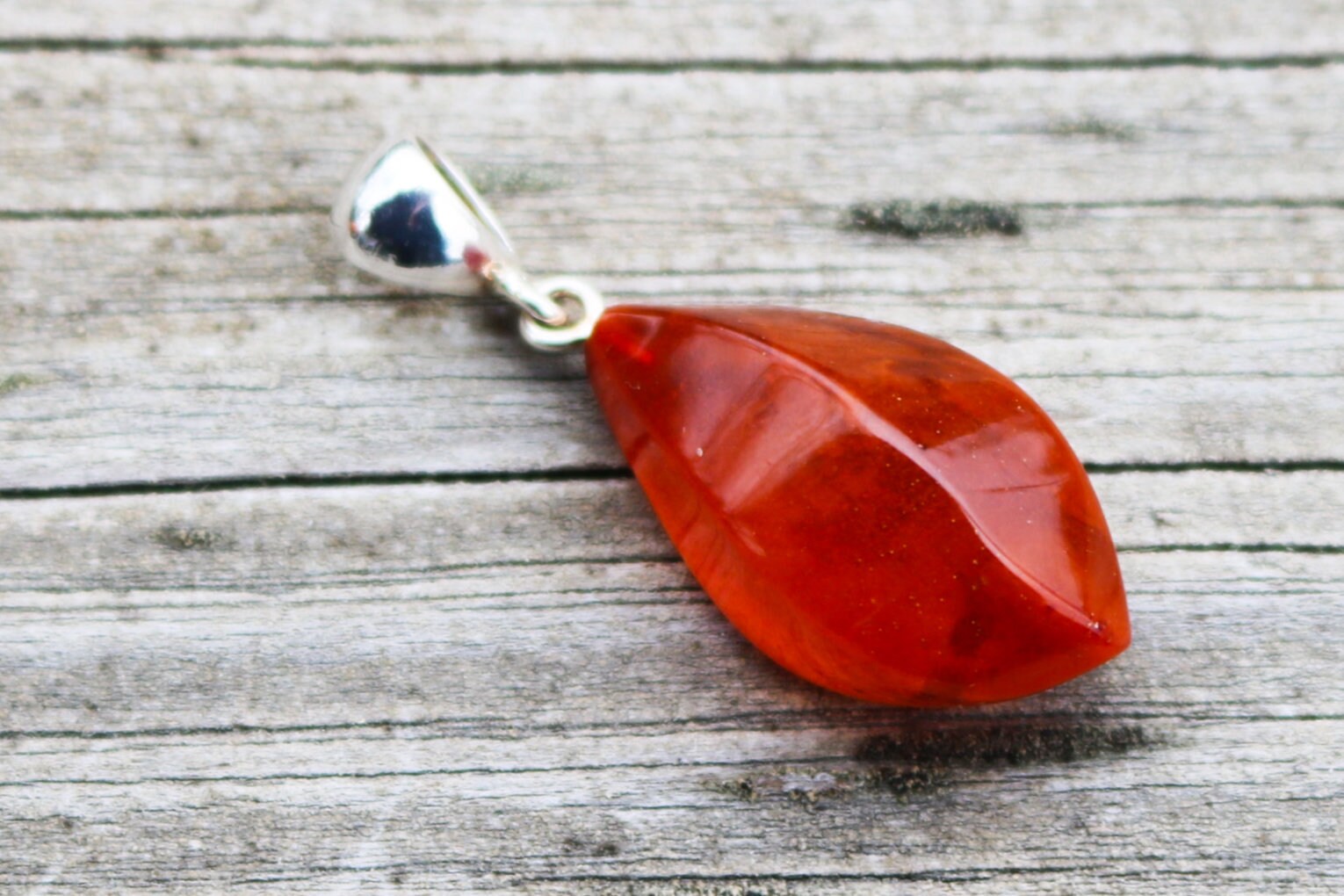Baltic amber pendant in caramel (brick) color. Hand faceted and set in 925 sterling silver.