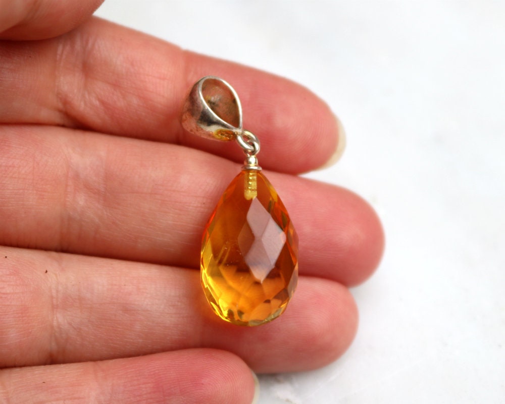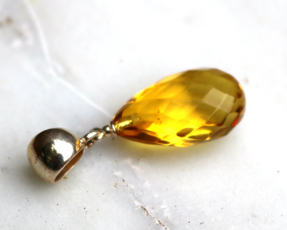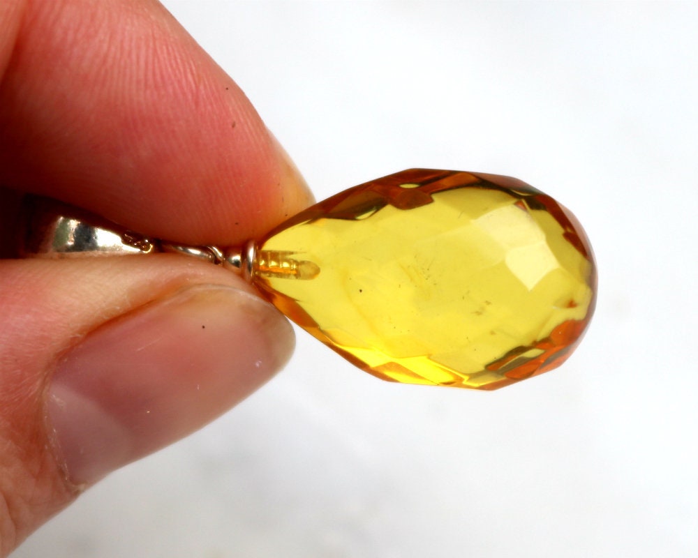 Baltic Amber Pendant Faceted Drop Honey Natural Untreated Unisex Jewelry 1.48" 3.2 gram 925 Silver