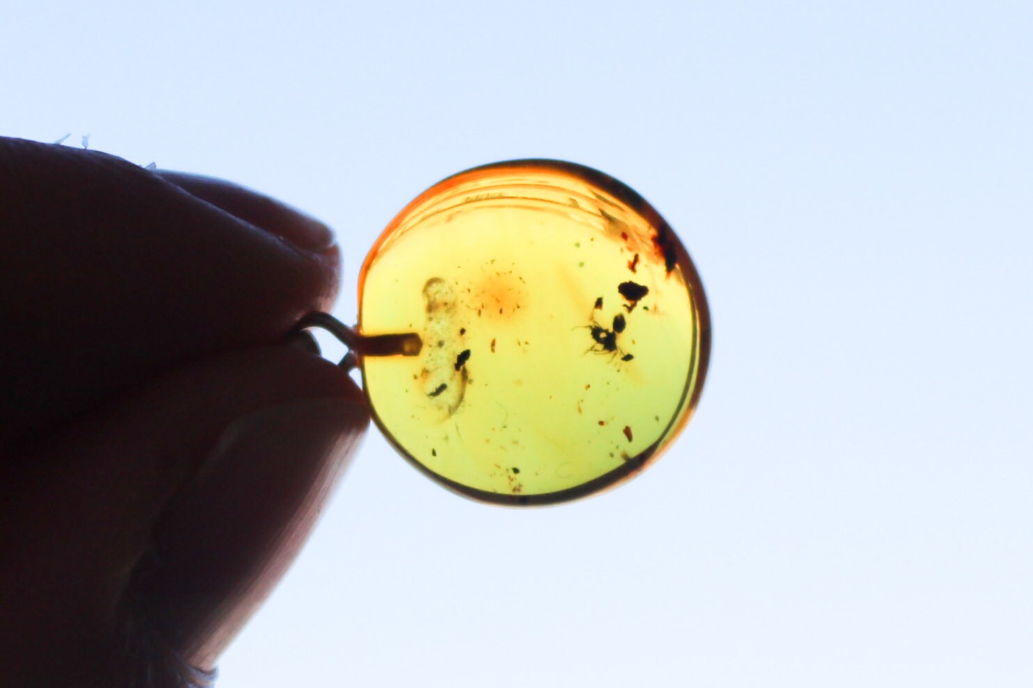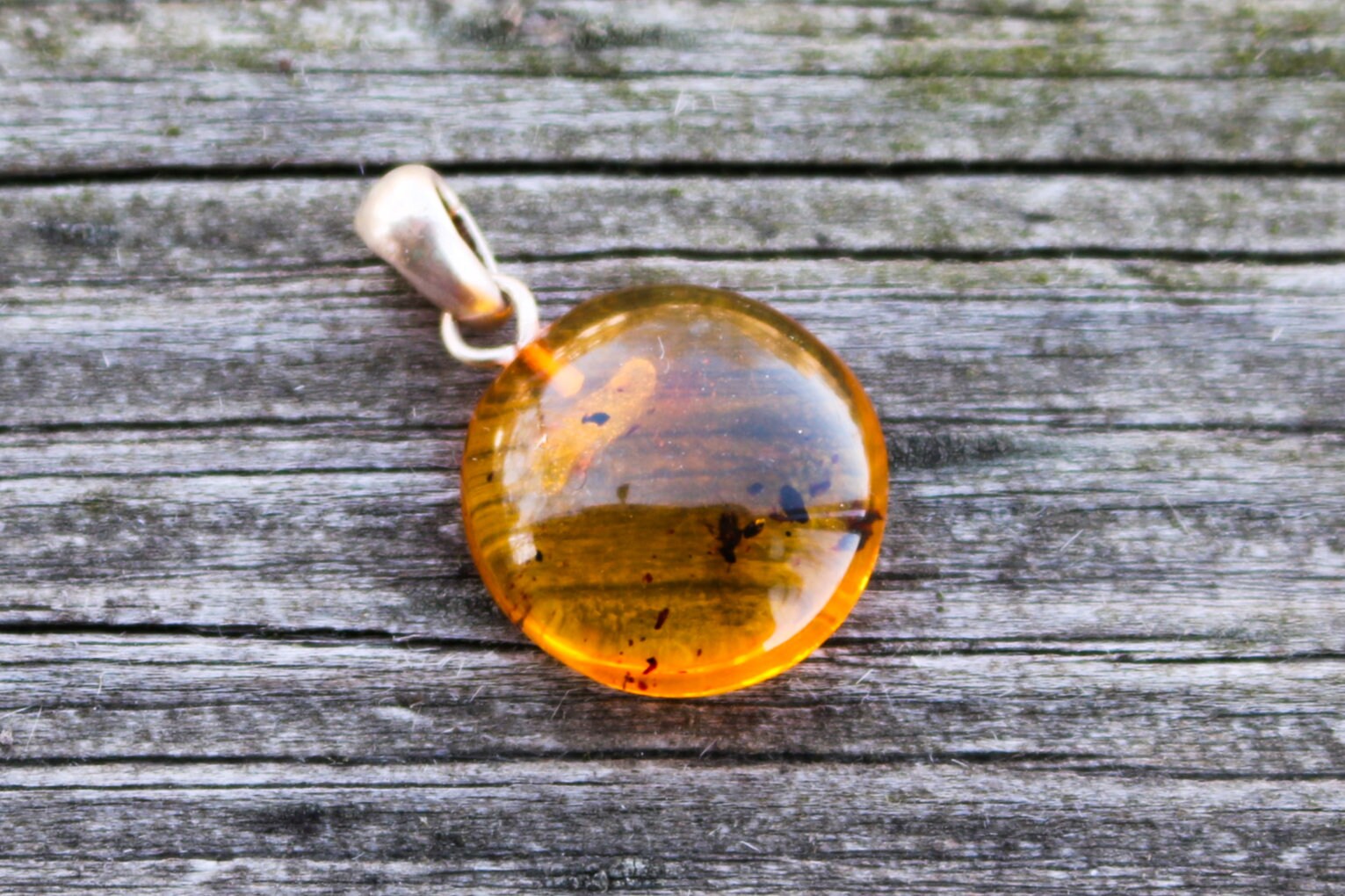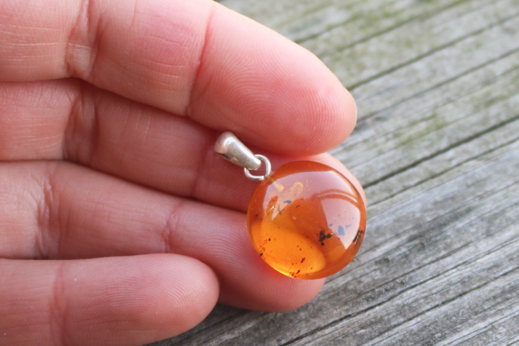 Baltic Amber Pendant Fossil Insect Round Natural Honey Untreated 1" 1.7 gram