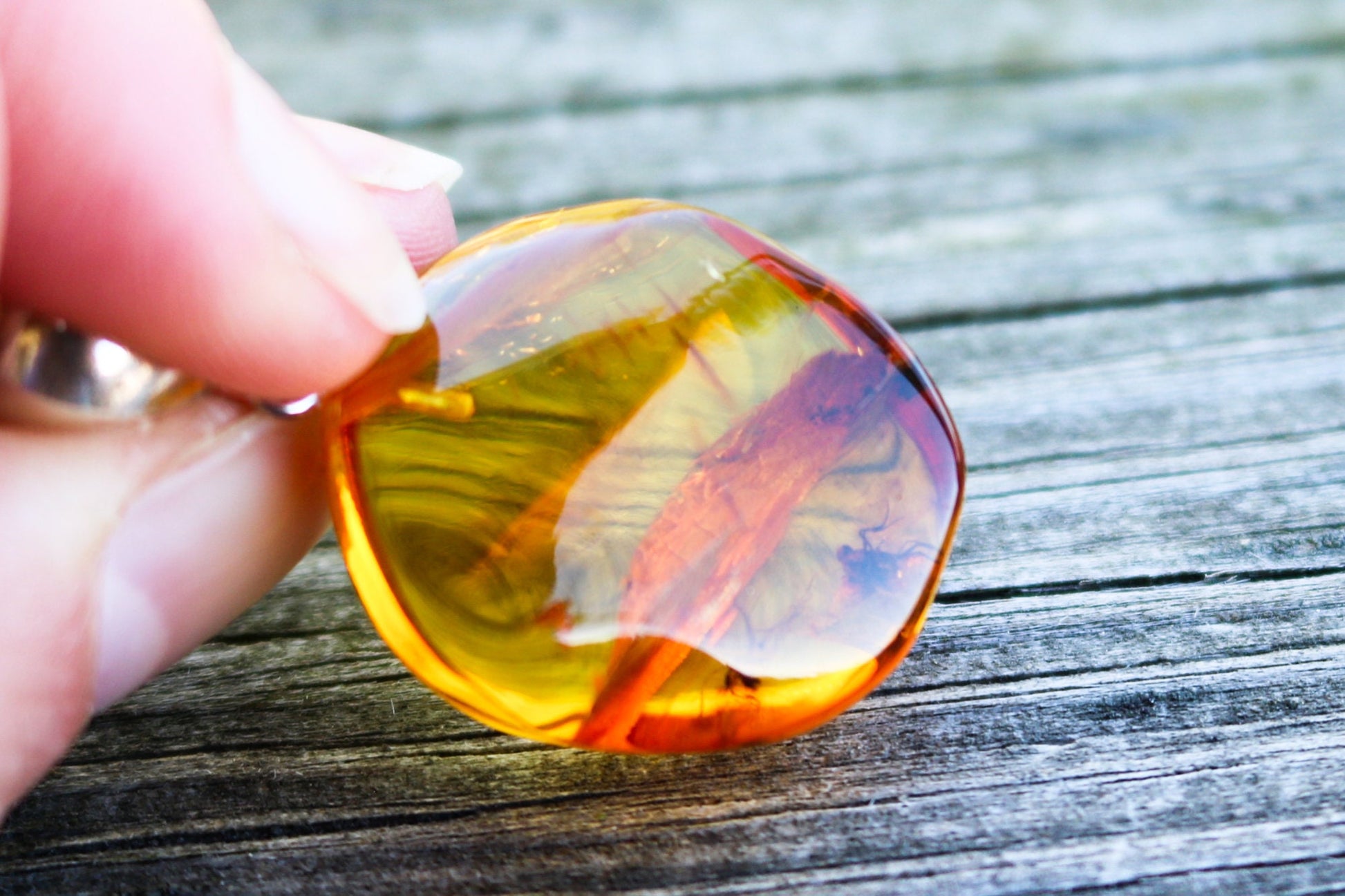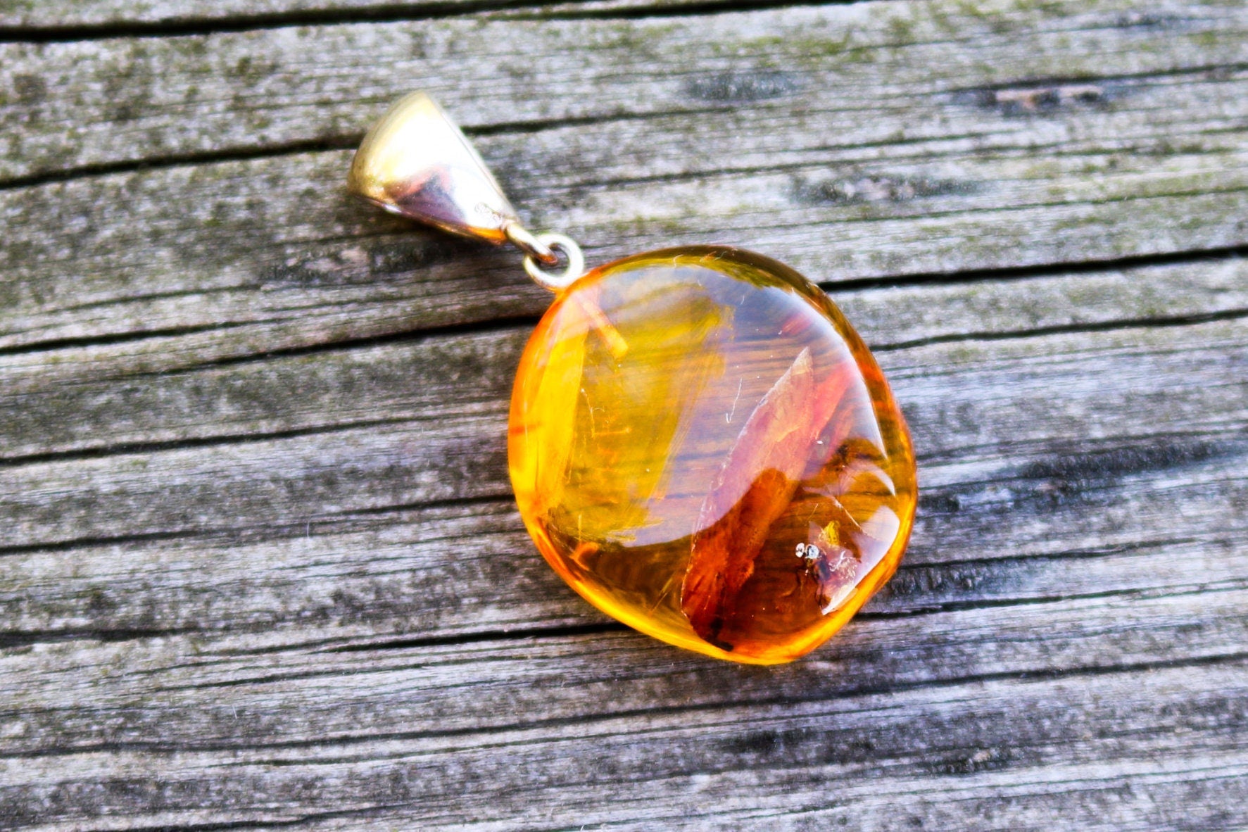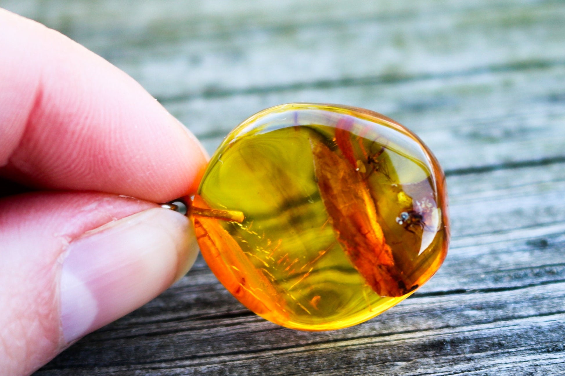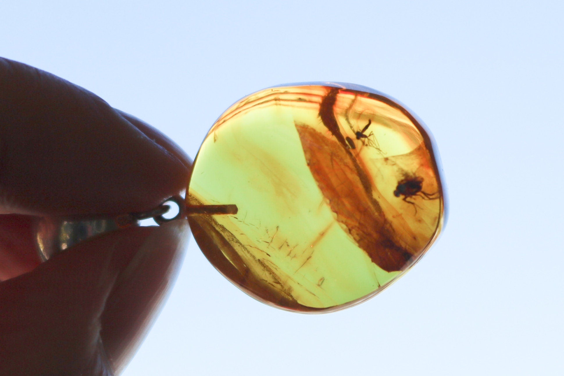 Baltic Amber Pendant Fossil Insects Mosquito Fly Natural Honey Untreated 1.6" 5.9 gram