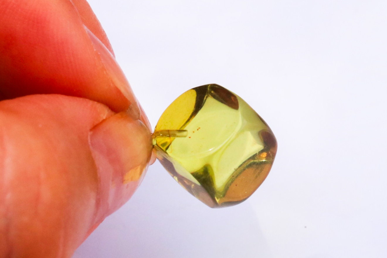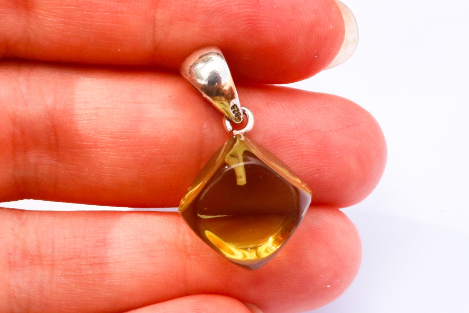 Baltic Amber Pendant Green Faceted Cube Natural Unisex 1.1" 2.4 gram 925 Silver