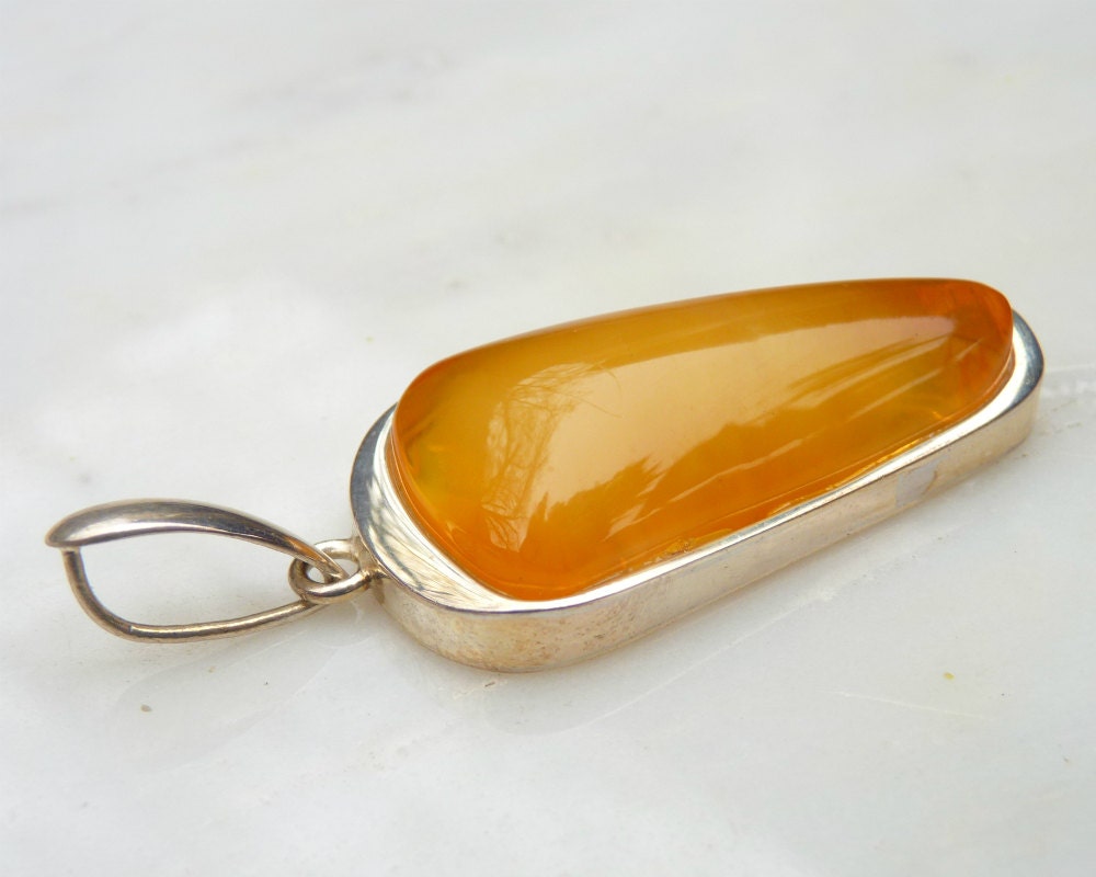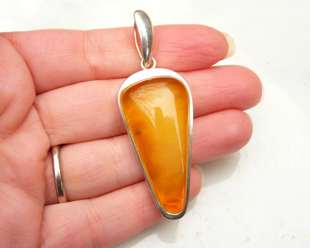 Baltic Amber Pendant Honey Cloudy Natural Untreated Unisex Jewelry 2.44" 12.7 gram 925 Silver