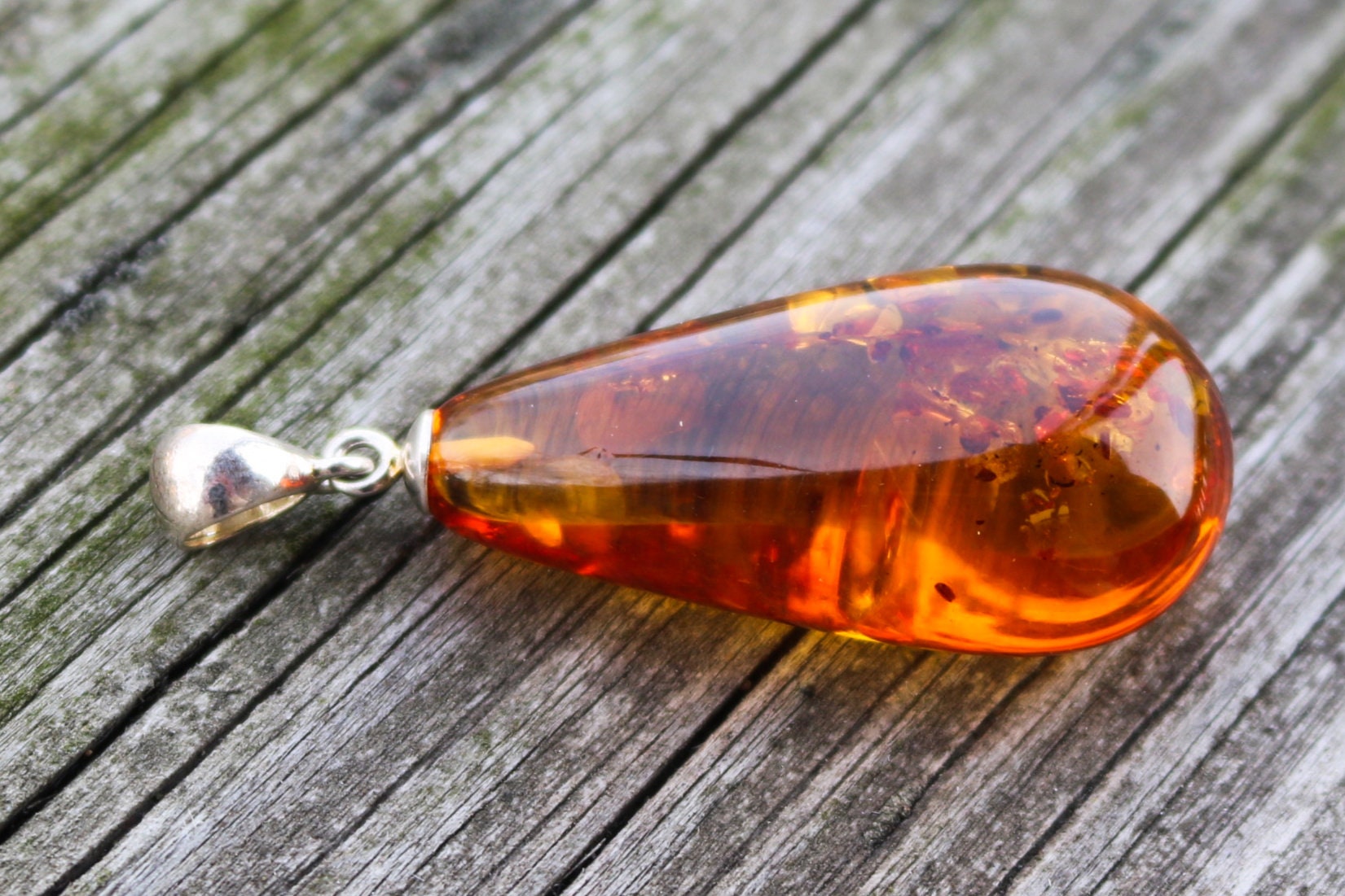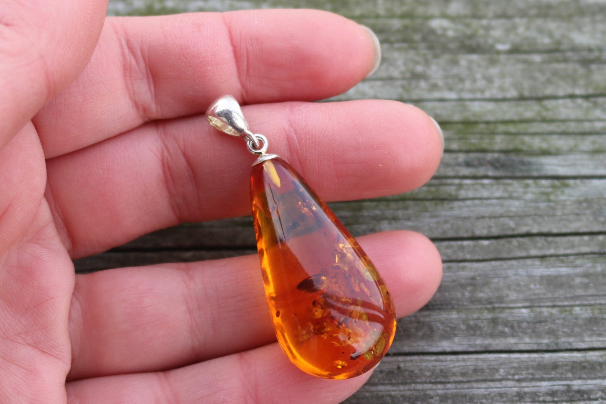 Baltic Amber Pendant Honey Drop Natural Unisex Jewelry 2" 6.5 gram 925 Silver