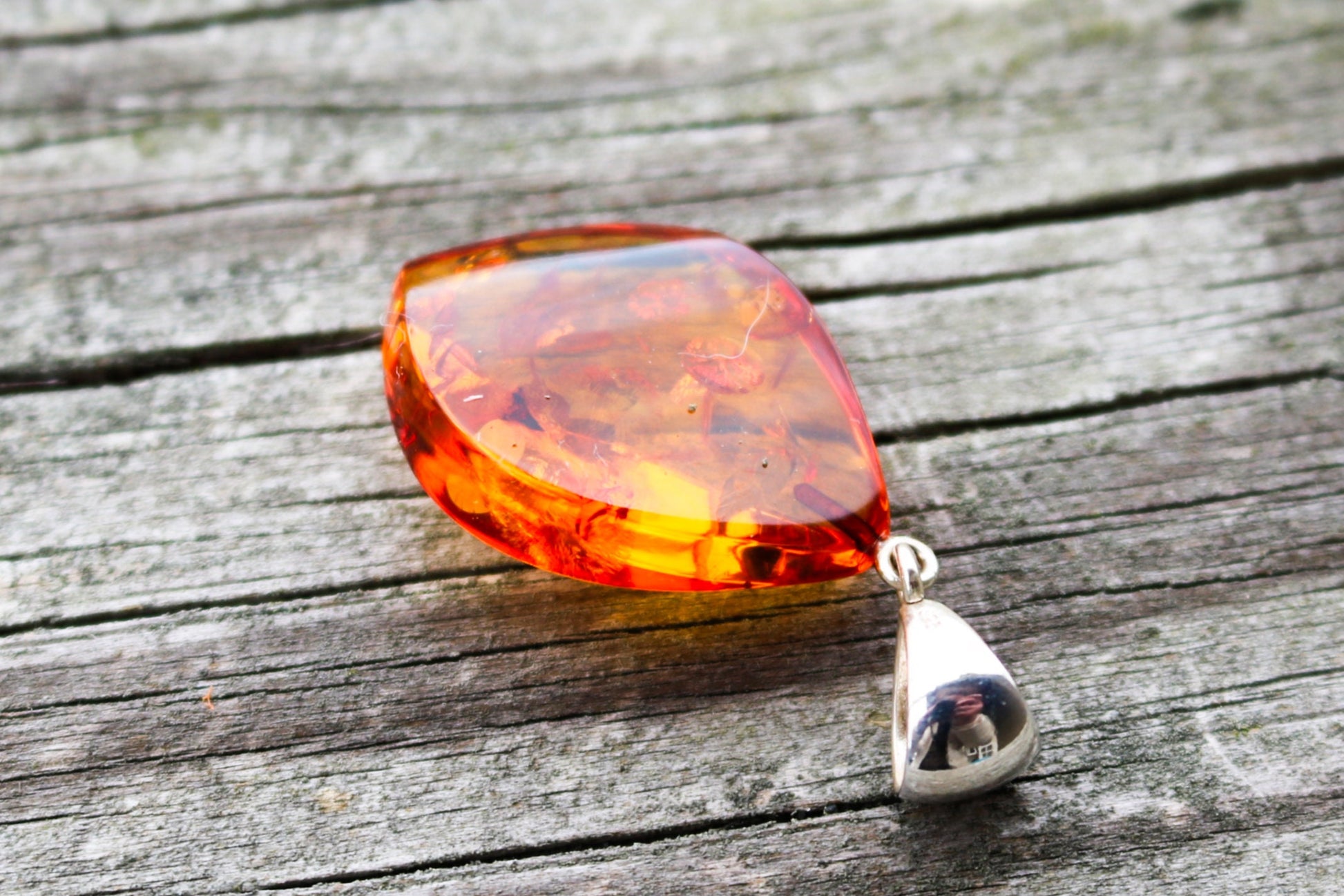 Baltic Amber Pendant Honey Faceted Natural Sparkling 1.9" 5.3 gram 925 Silver