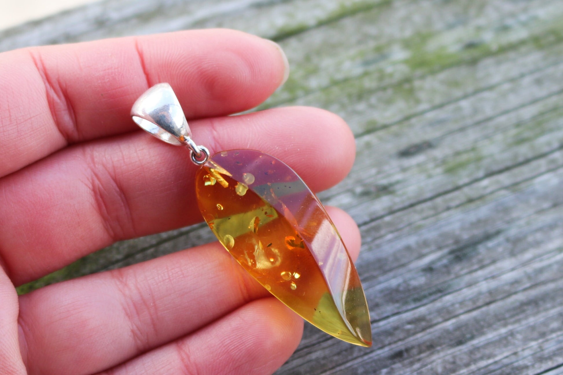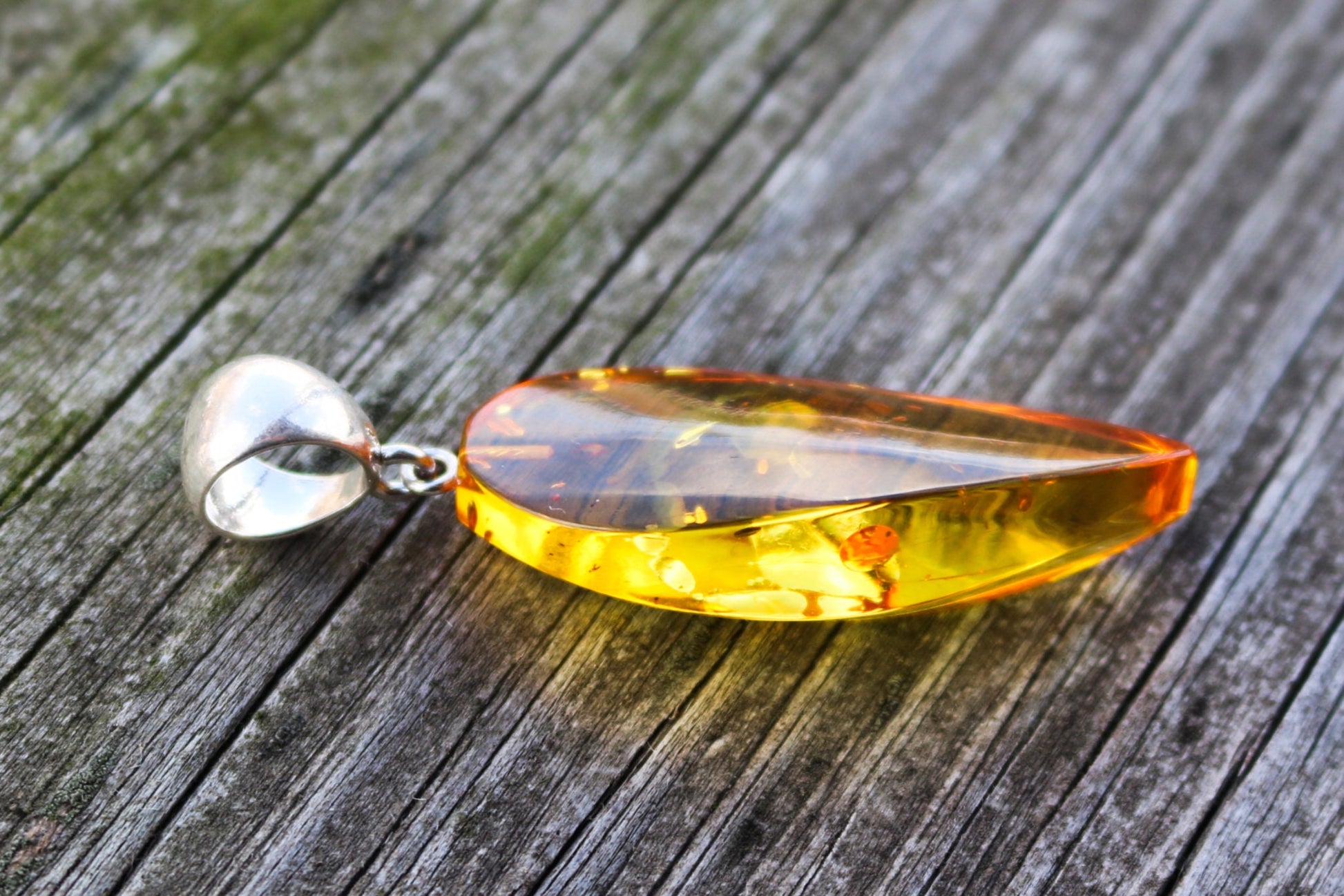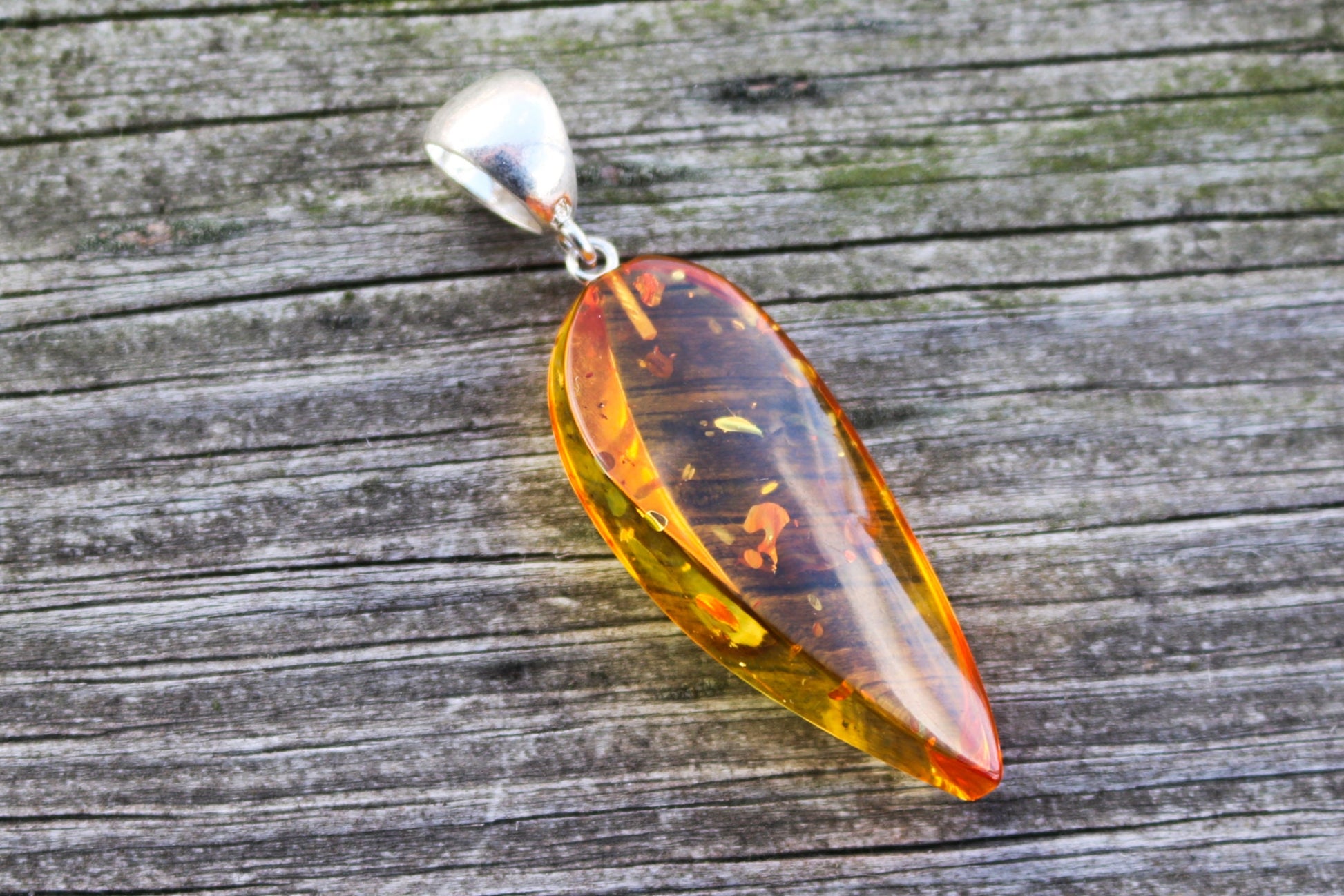 Baltic Amber Pendant Honey Faceted Natural Unisex 2.3″ 6.5 gram 925 Silver