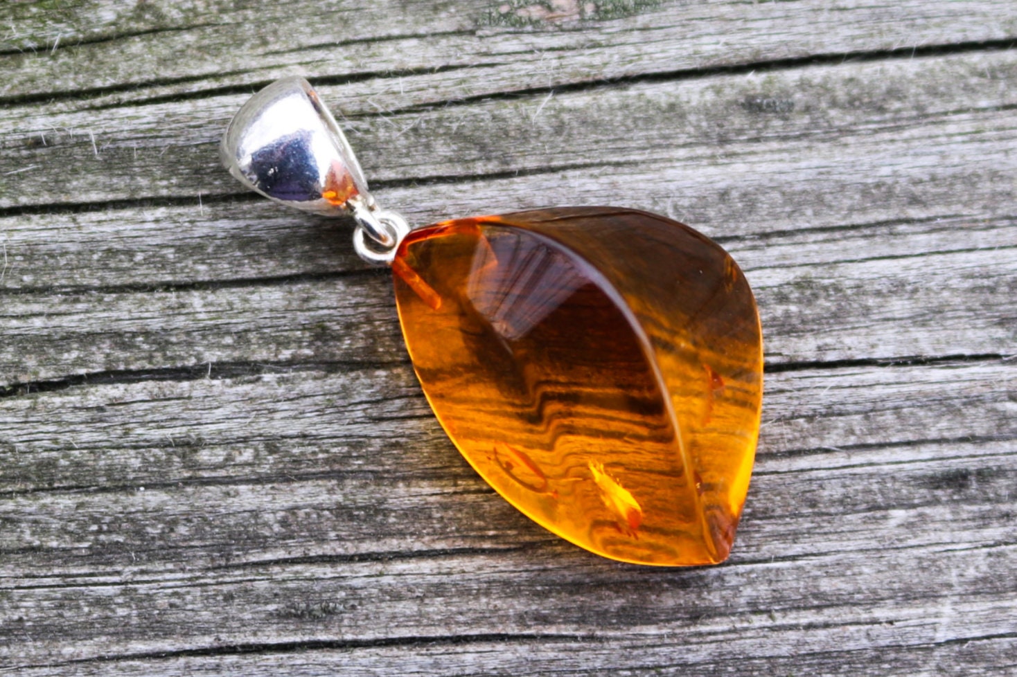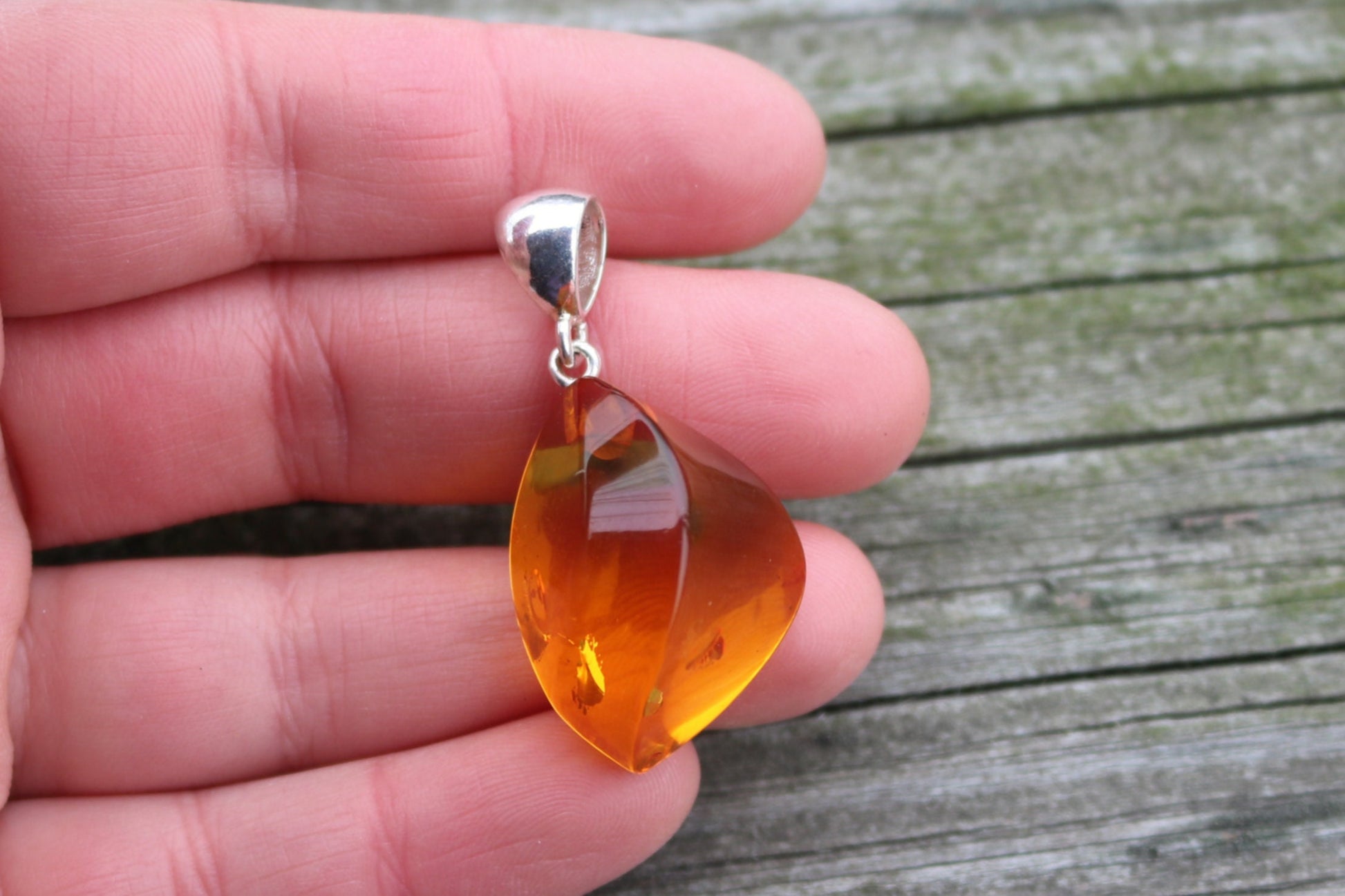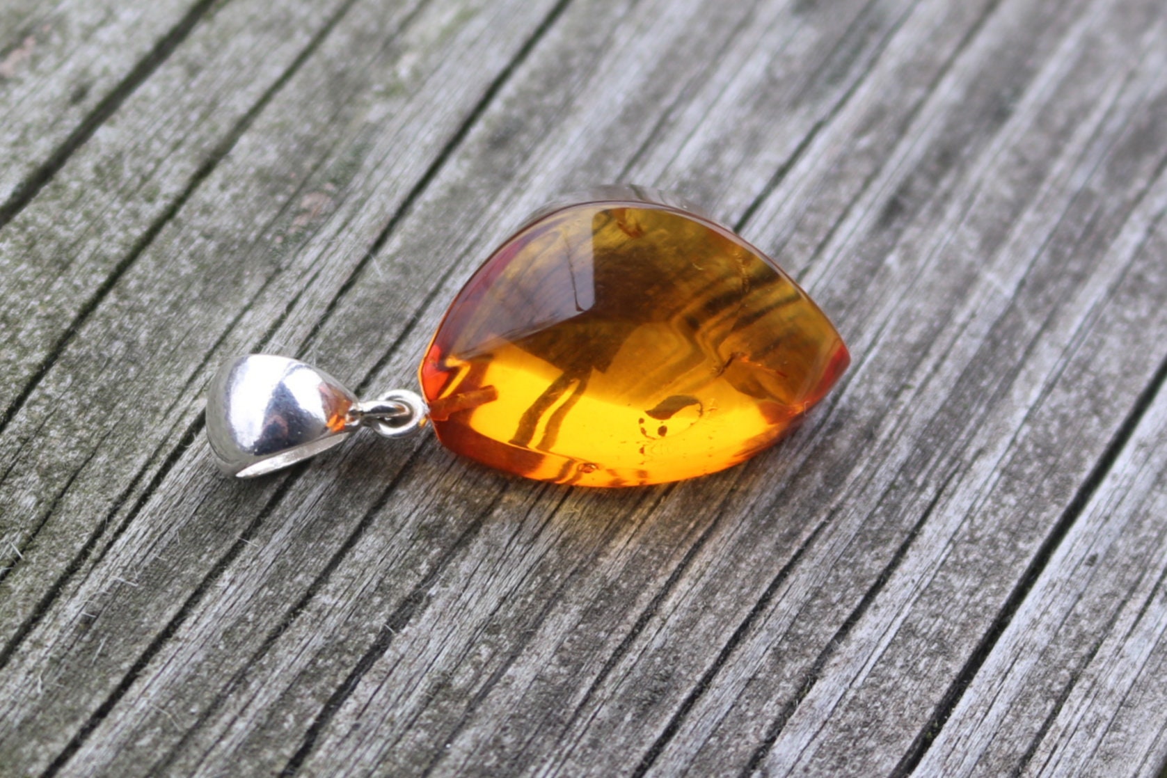 Baltic Amber pendant in sparkling honey color. Set in 925 sterling silver.