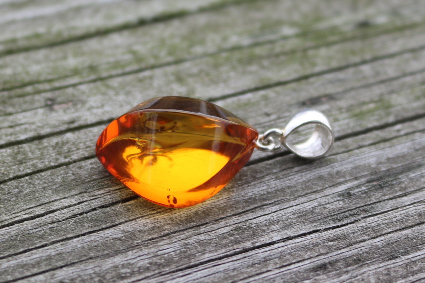 Baltic Amber Pendant Honey Faceted Sparkling Unisex 1.62" 5.1 gram 925 Silver