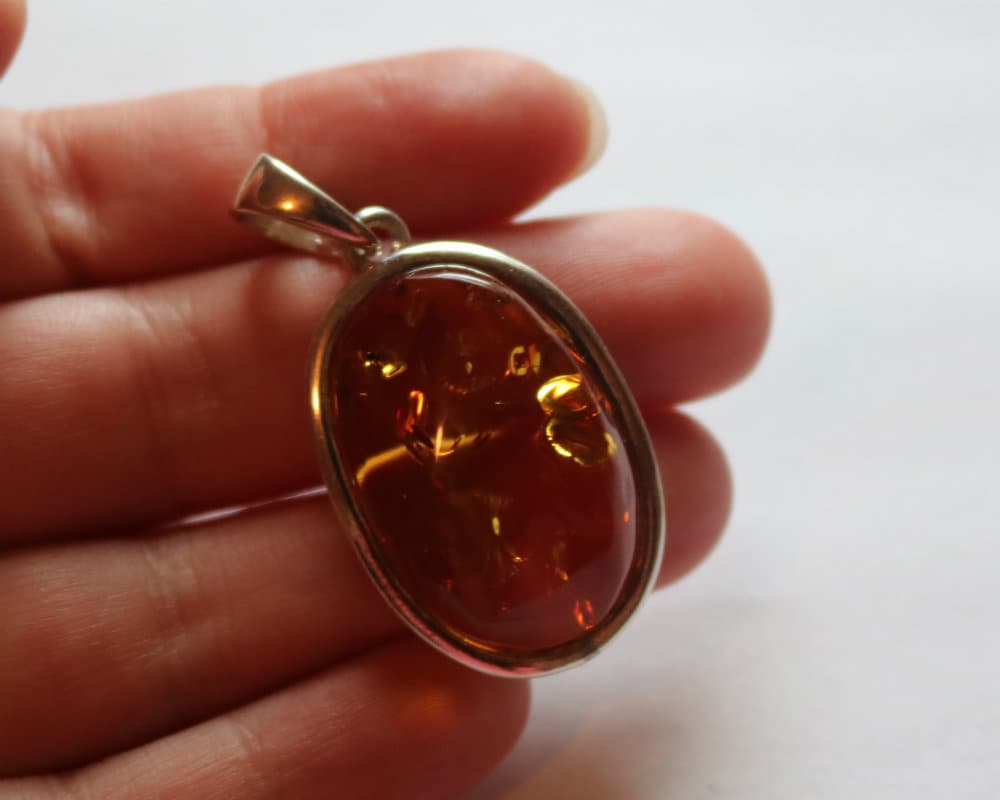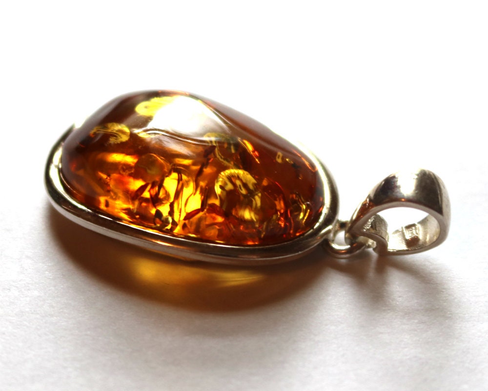 Baltic Amber Pendant Honey Natural Sparkling Unisex Jewelry 1.8" 10.2 gram 926 Silver