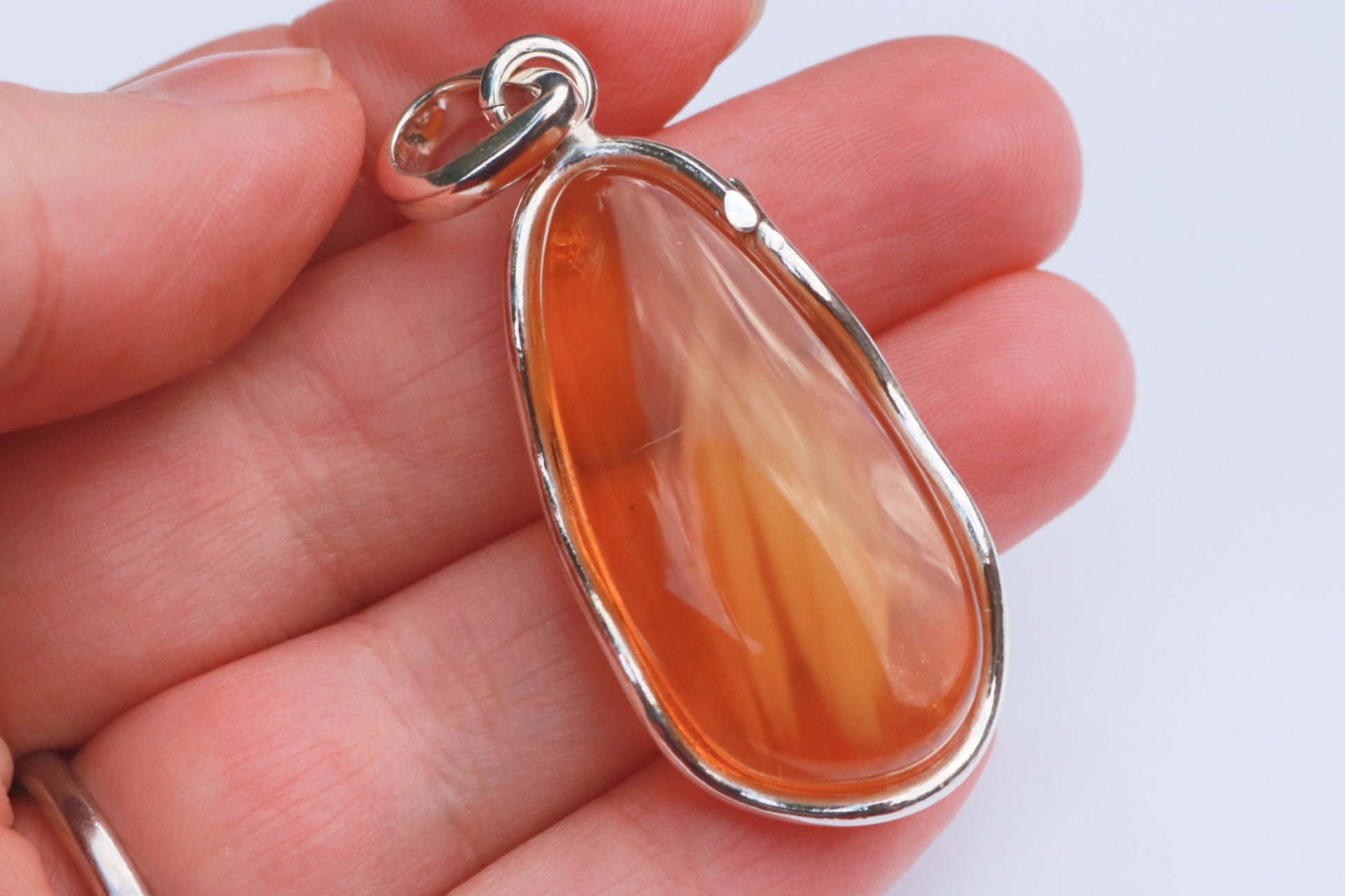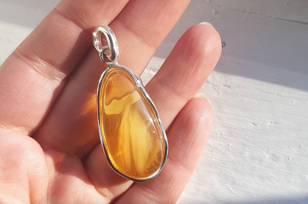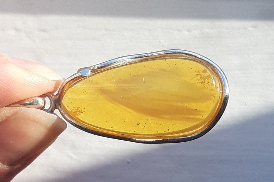 Baltic Amber pendant in natural untreated light honey color with some cloudiness.