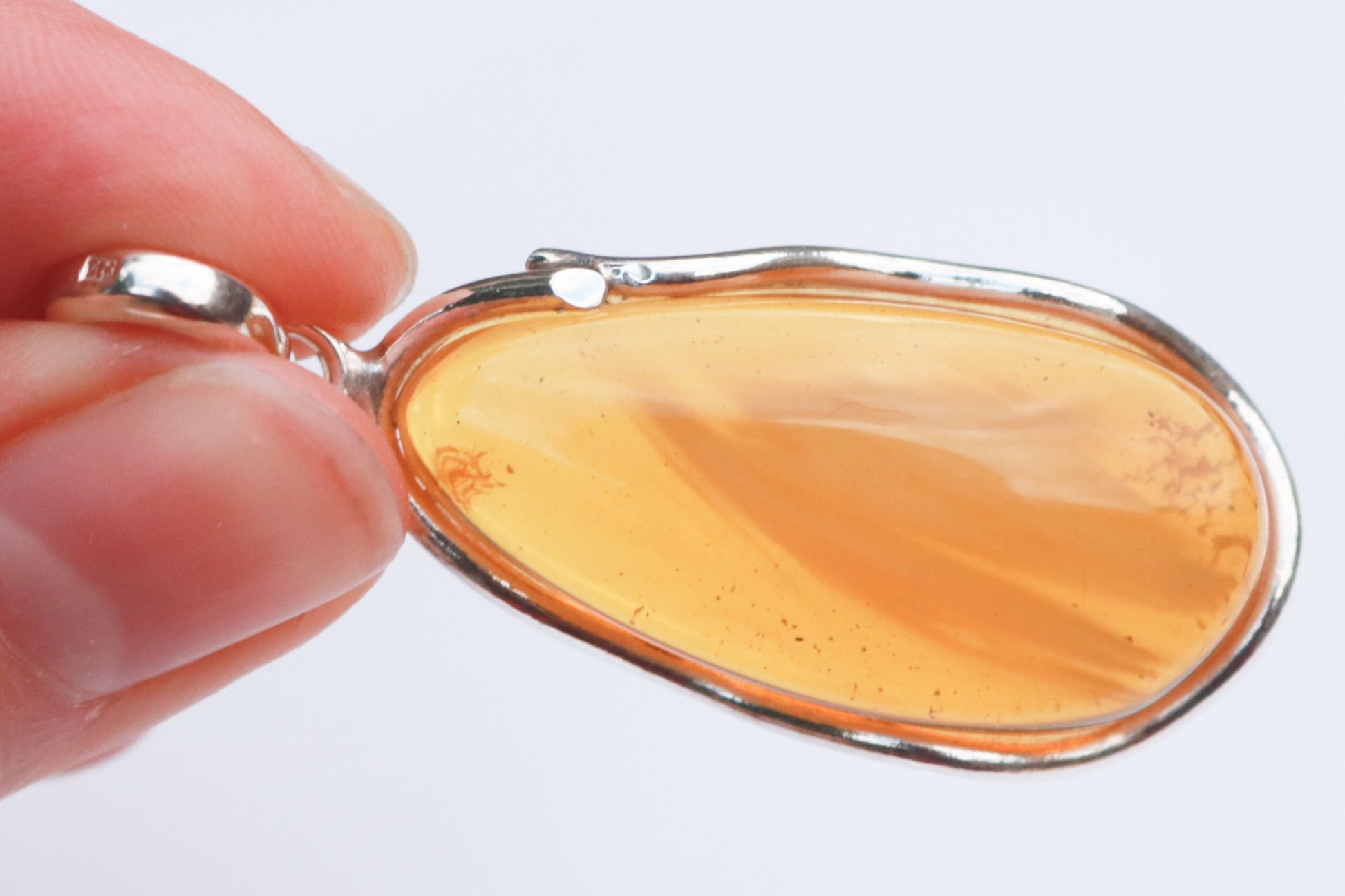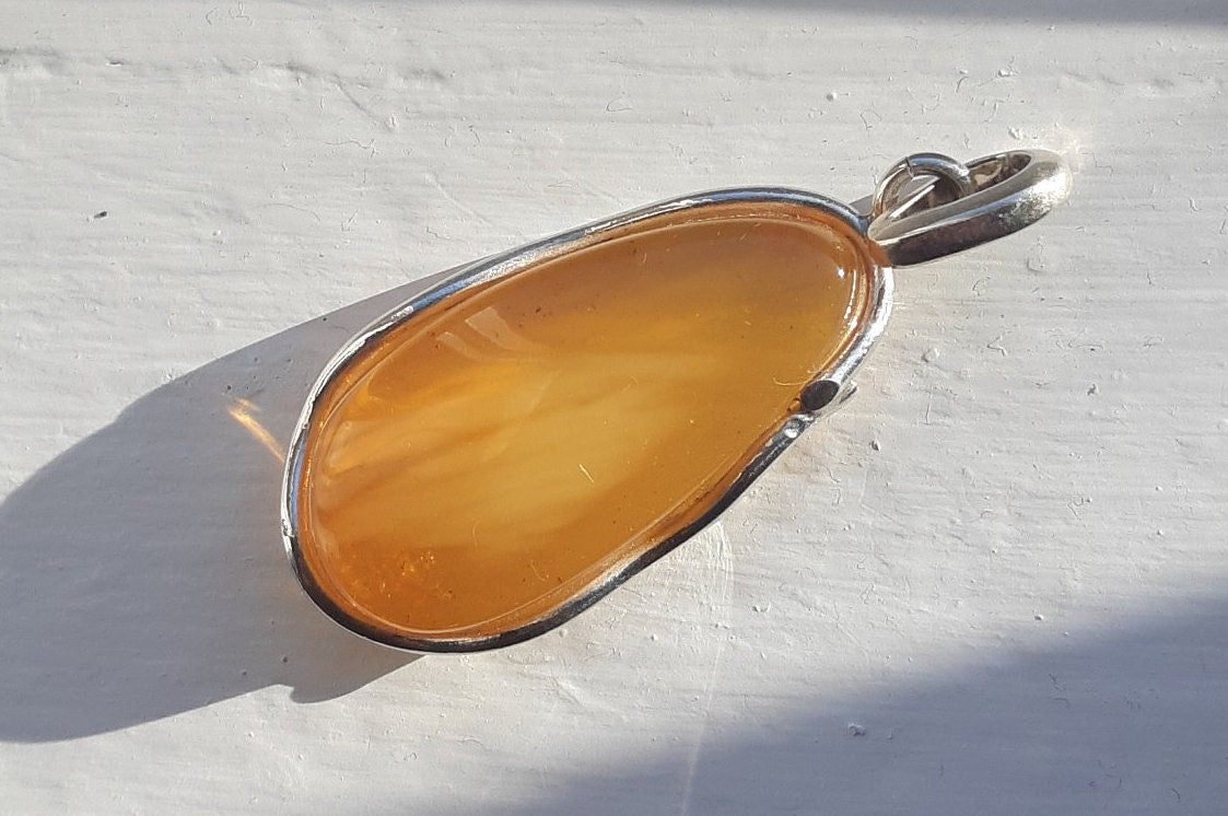 Baltic Amber Pendant Honey Natural Untreated Unisex Cloudy 2.12″ 8.3 gram 925 silver