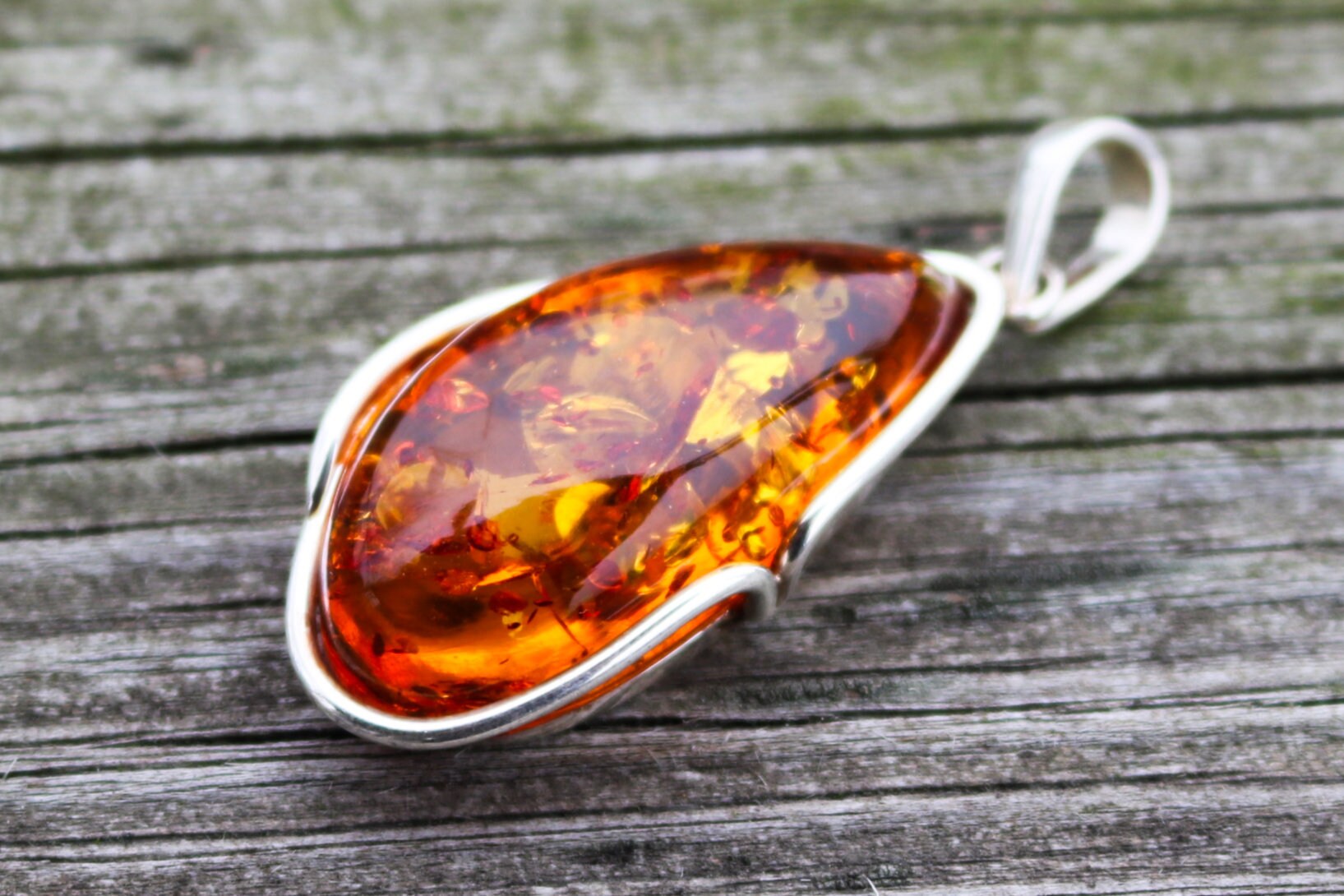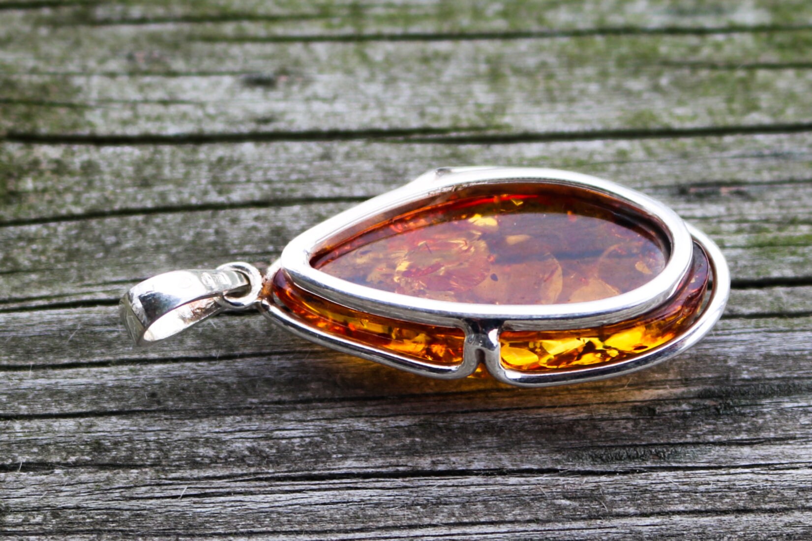 Baltic Amber pendant in sparkling honey color. Set in 925 sterling silver.