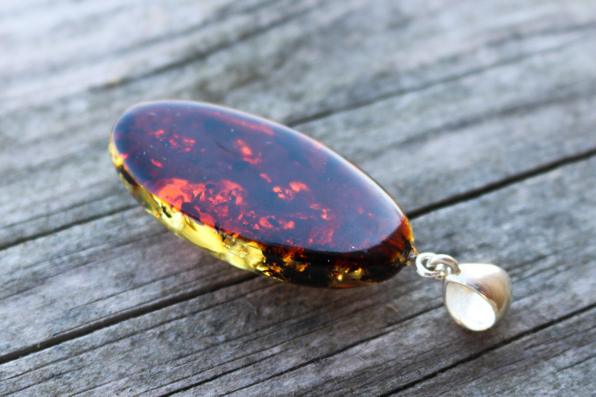 Baltic Amber Pendant Sparkling Green Oval Unisex Jewelry 2.4" 9 gram 925 Silver