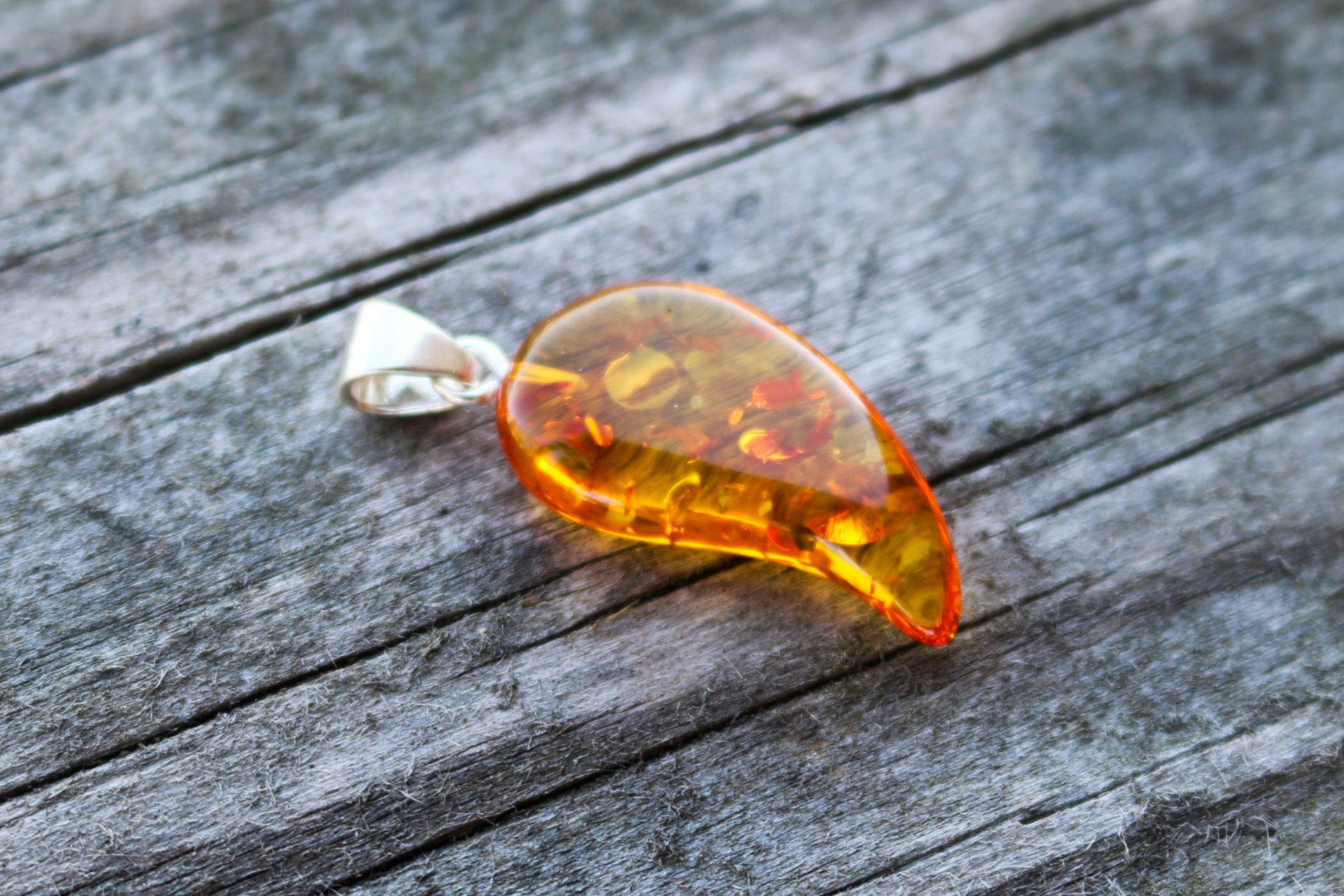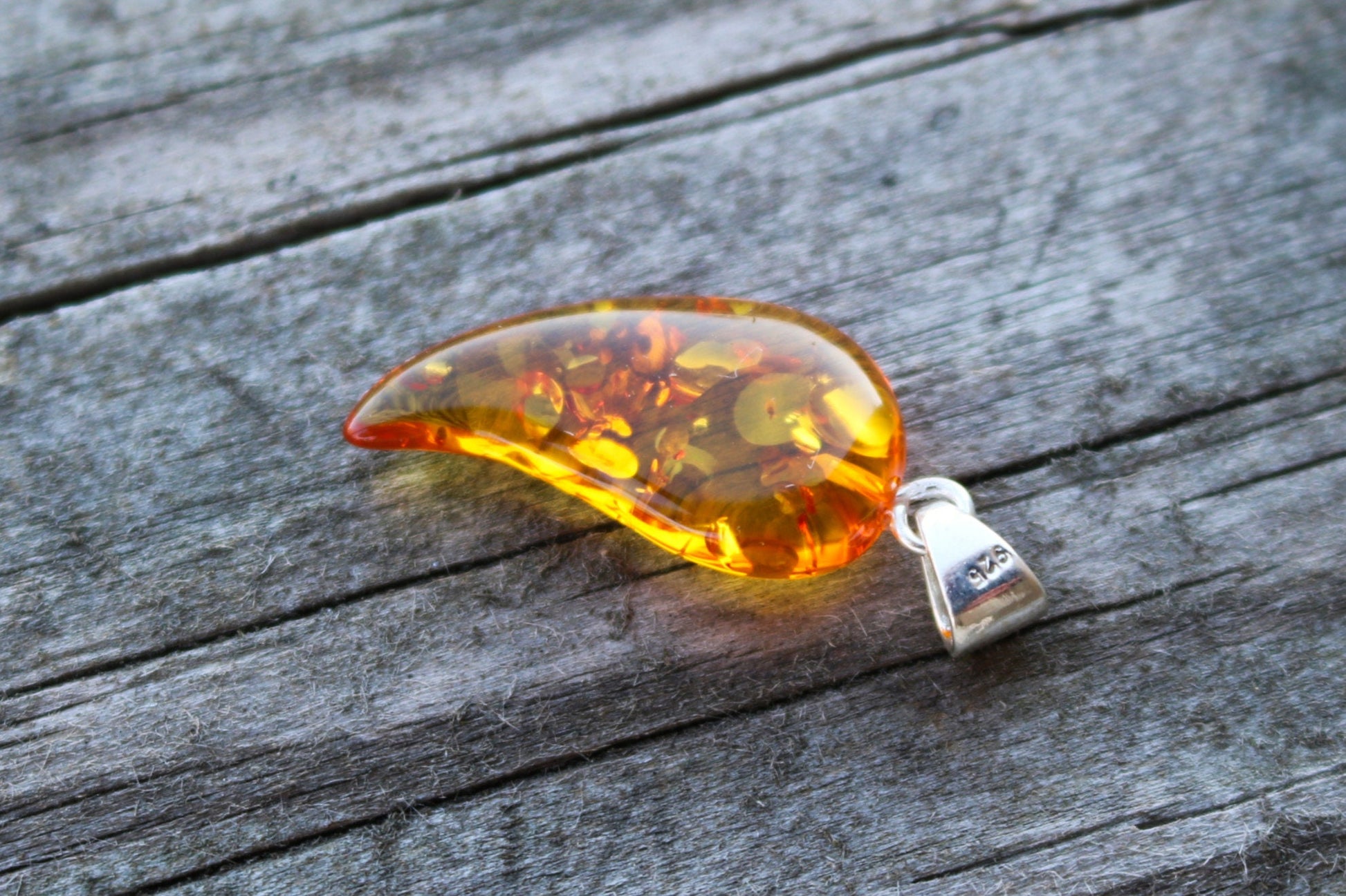 Baltic Amber Pendant Sparkling Honey Fang Natural Unisex 1.3" 1.6 gram 925 Silver