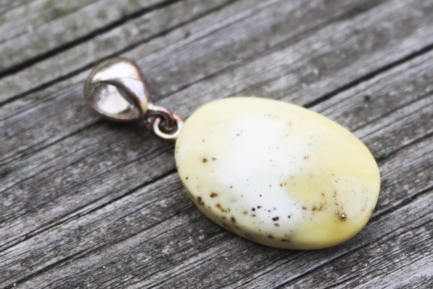 Baltic Amber Pendant White Oval Natural Untreated Unisex Jewelry 1.39" 2.3 gram