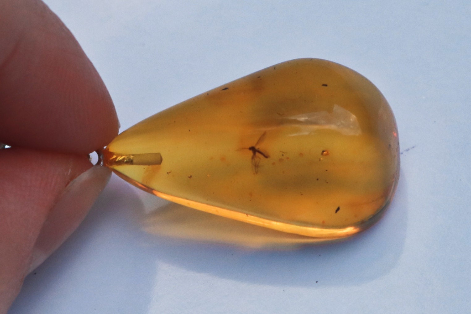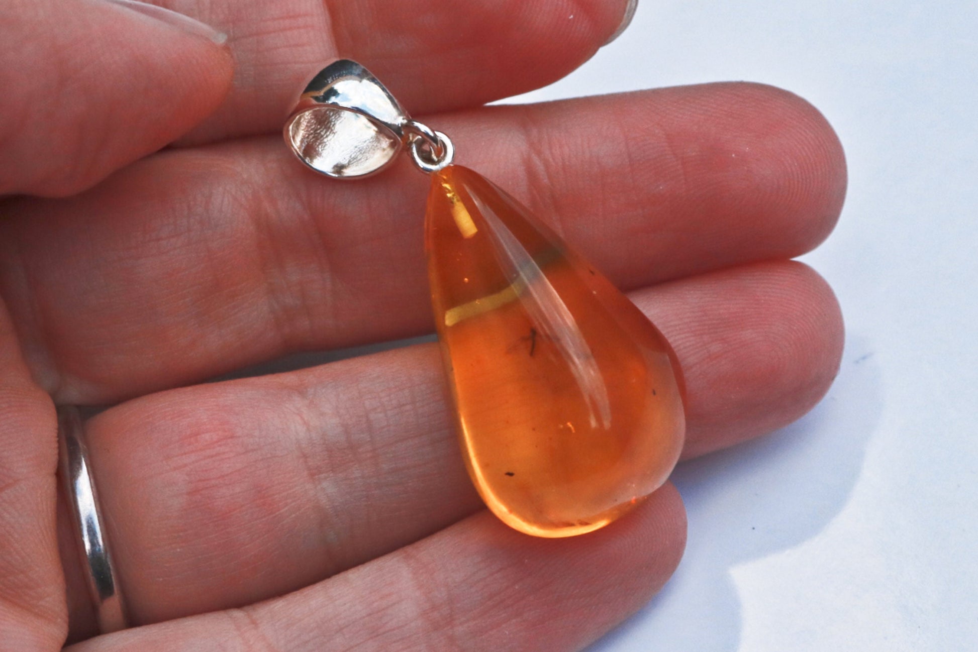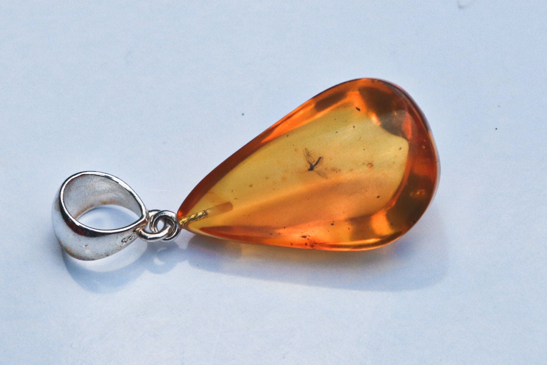 Baltic Amber Pendant with Fossil Insect Drop Honey Natural Untreated Jewelry 1.77" 4.5 gram 925 Silver