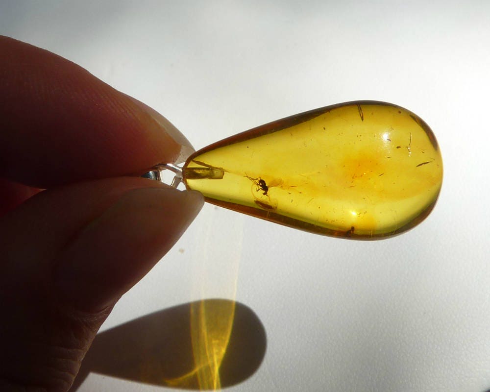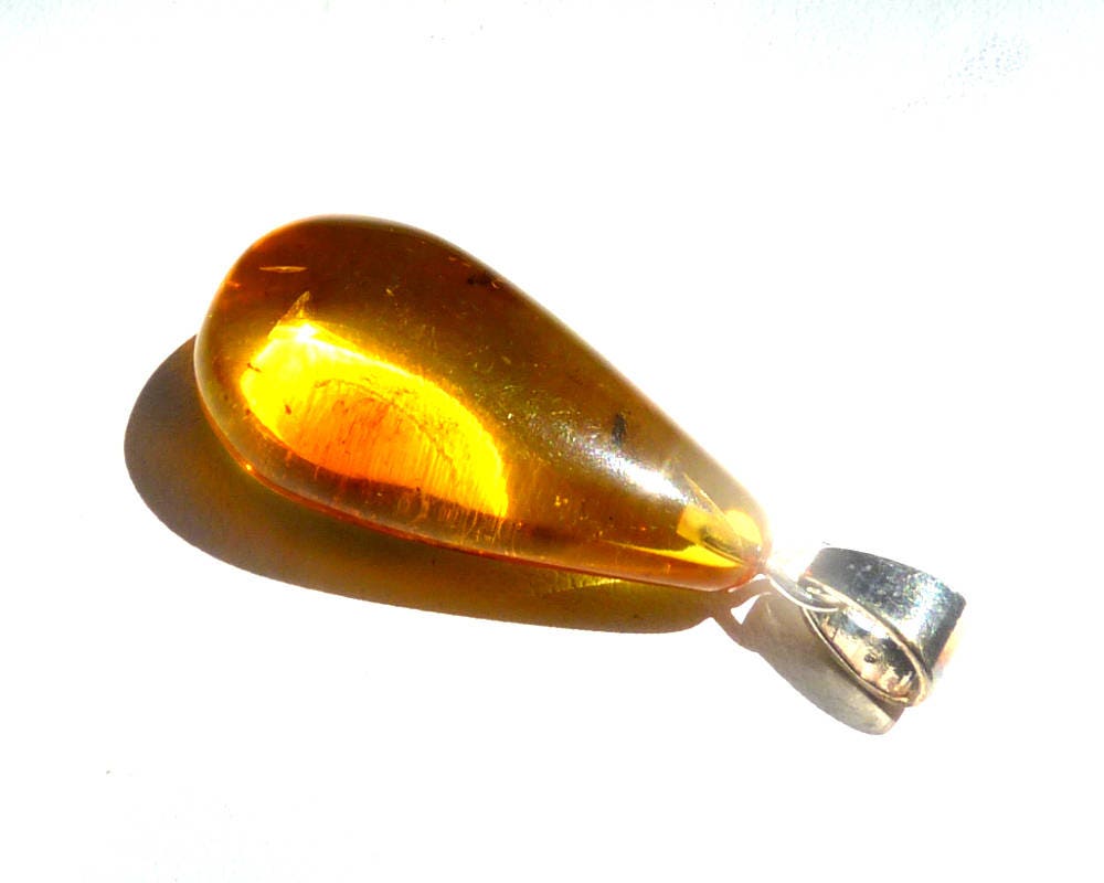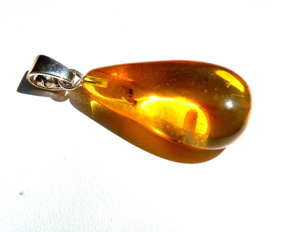 Baltic Amber Pendant with Fossil Insect Drop Natural Honey Untreeated 1.58" 3.4 gram