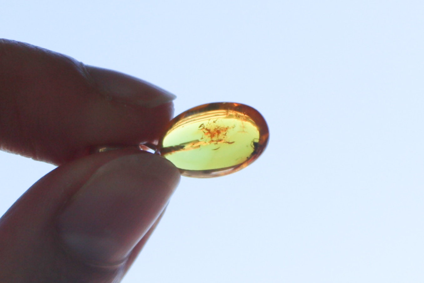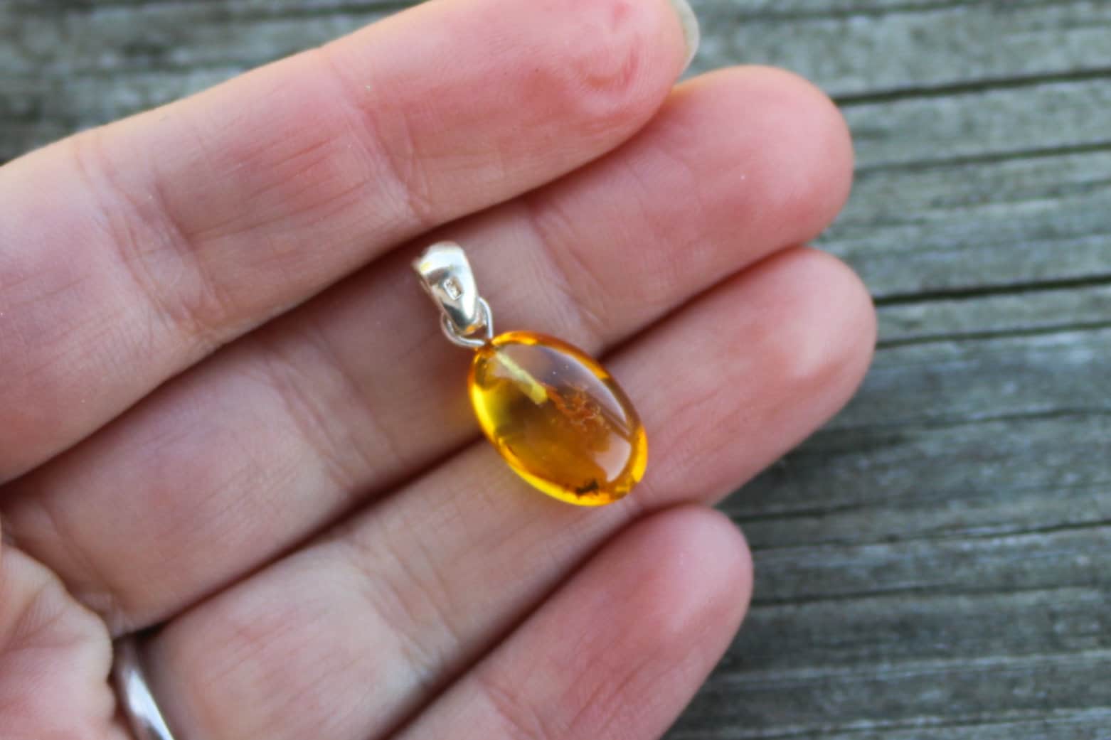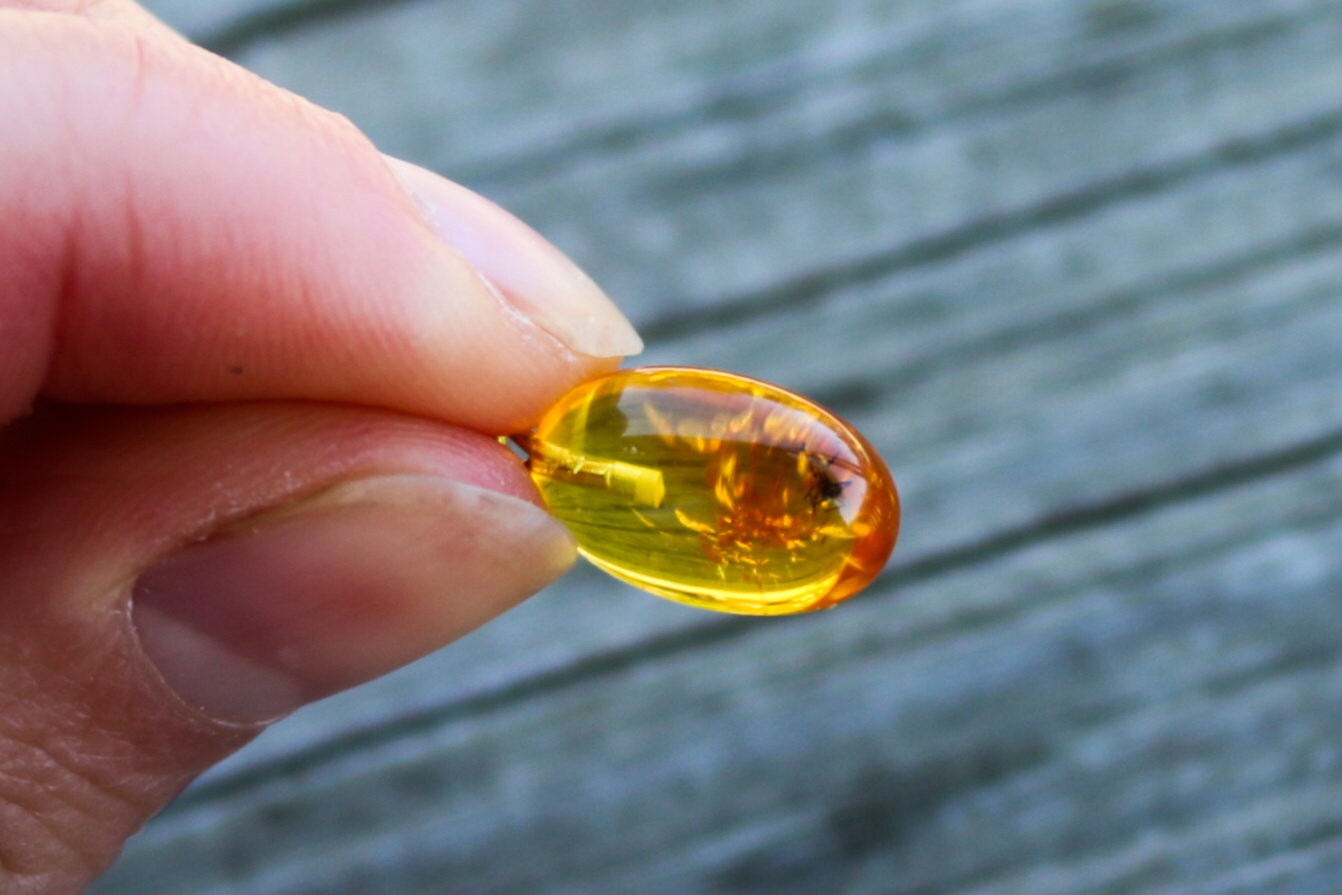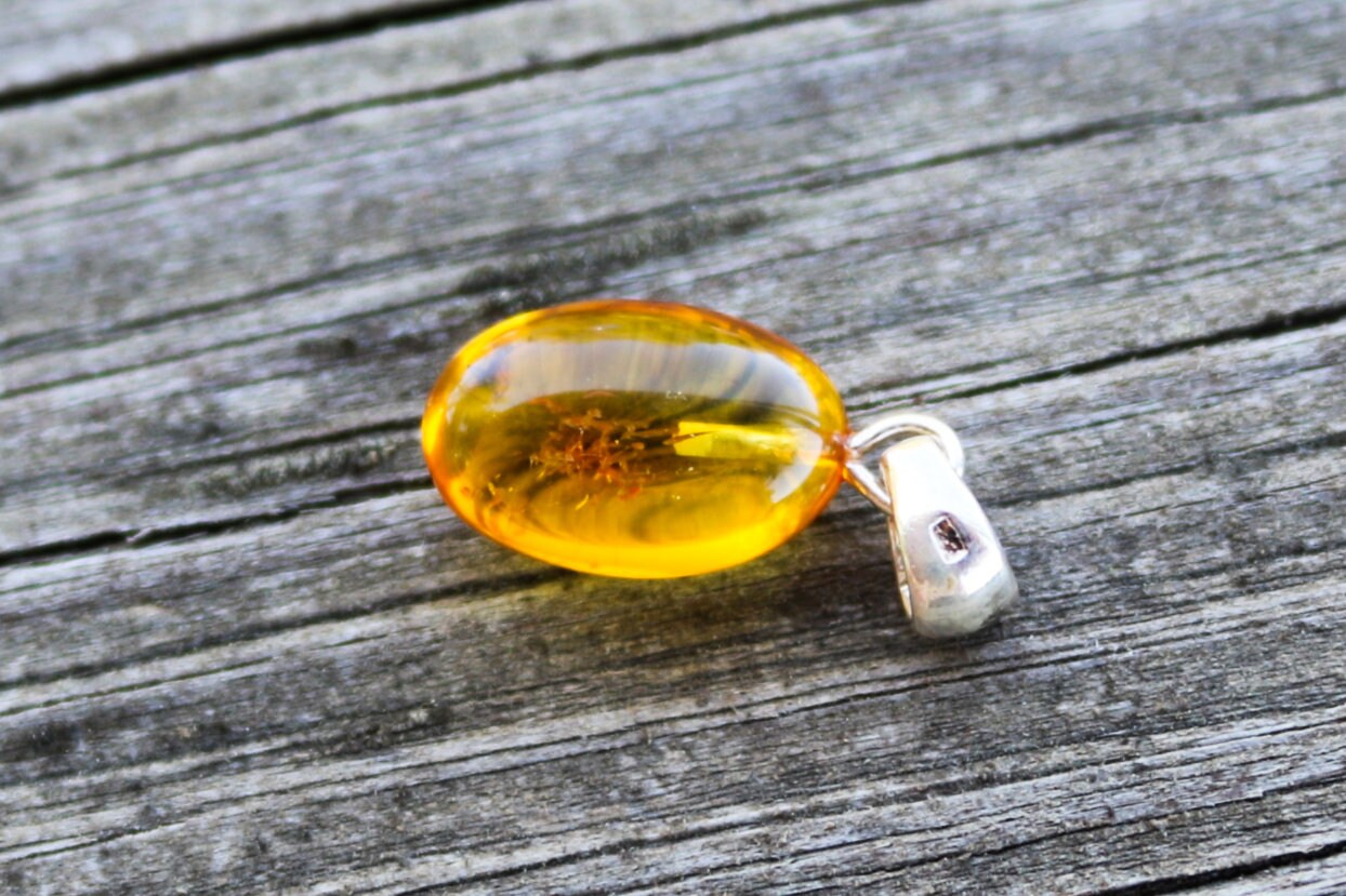 Baltic Amber Pendant with Fossil Insect Egg Shape Small Natural Untreated Honey Unisex 1" 1.4 gram