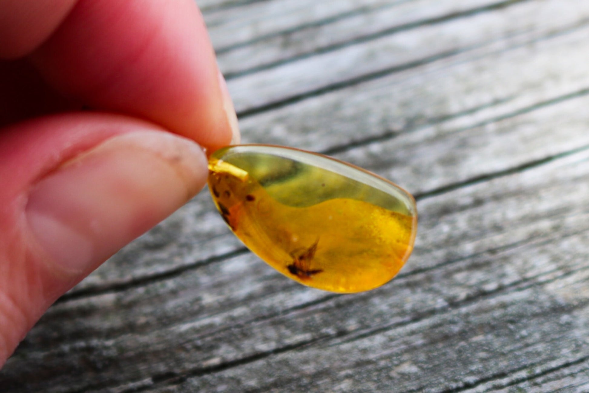 Baltic Amber Pendant with Fossil Insect Fly Small Natural Untreated Honey Unisex 1.33" 1.9 gram