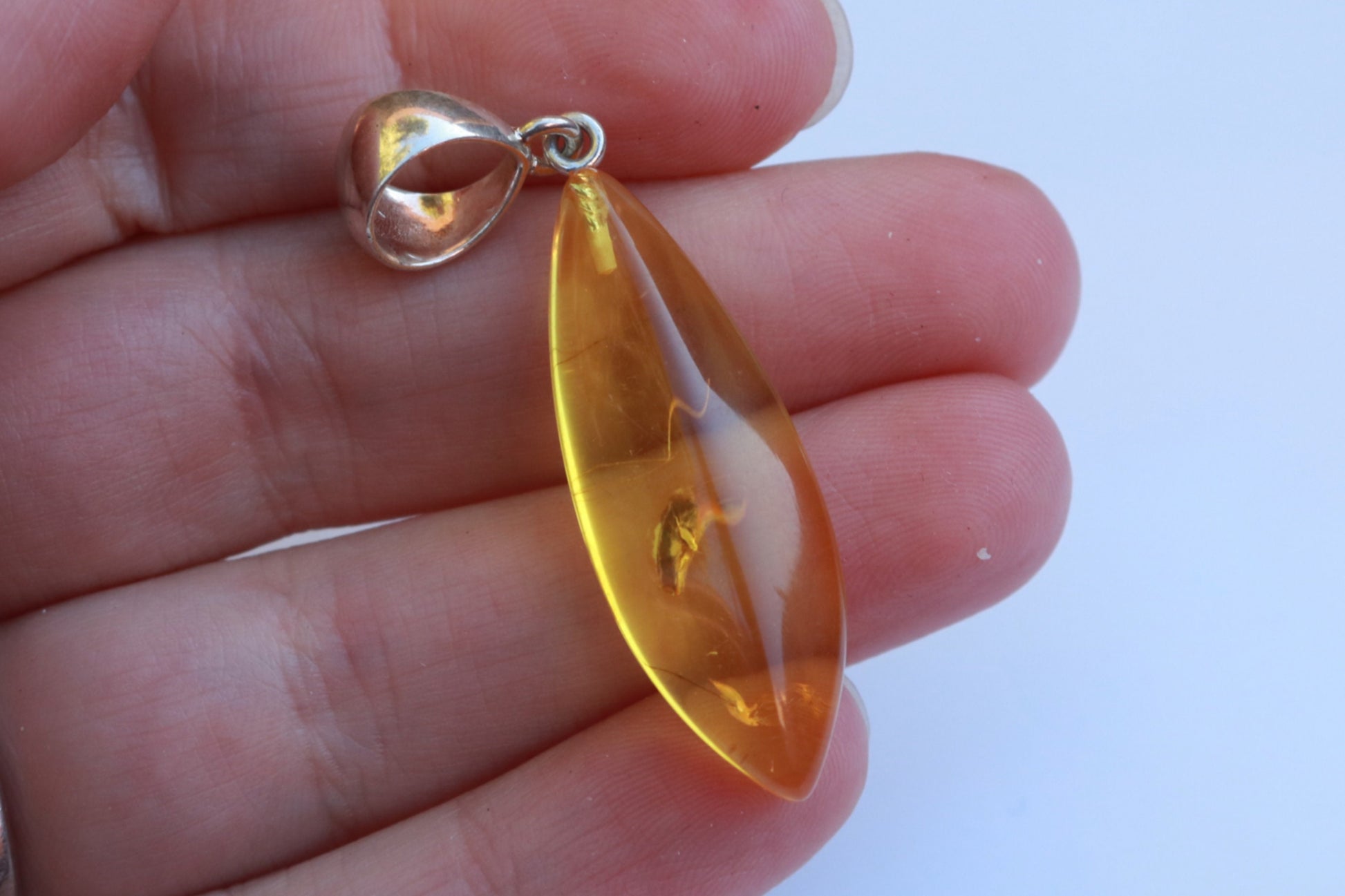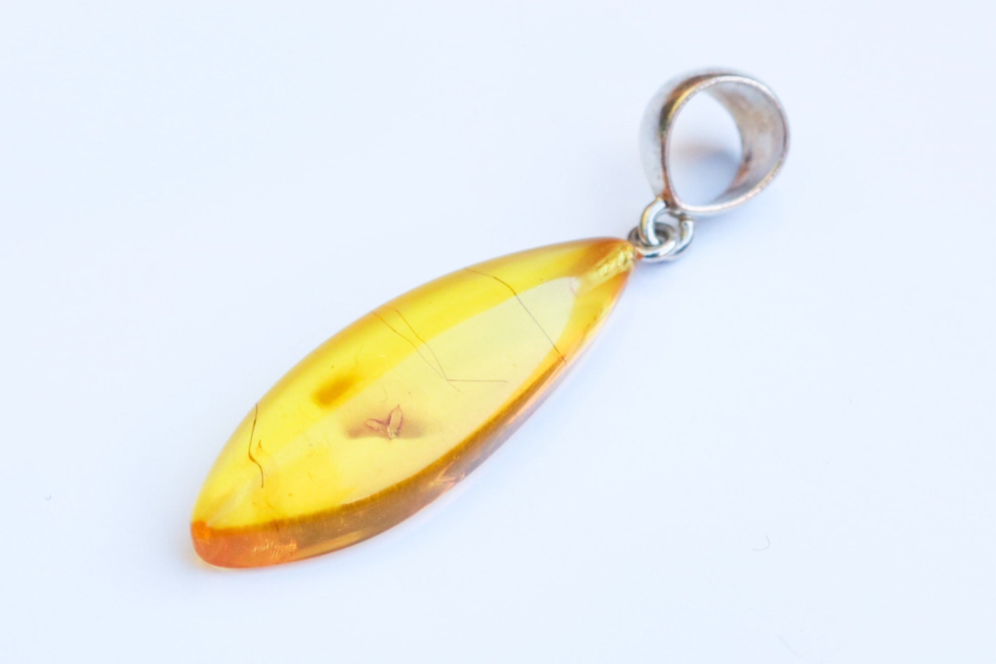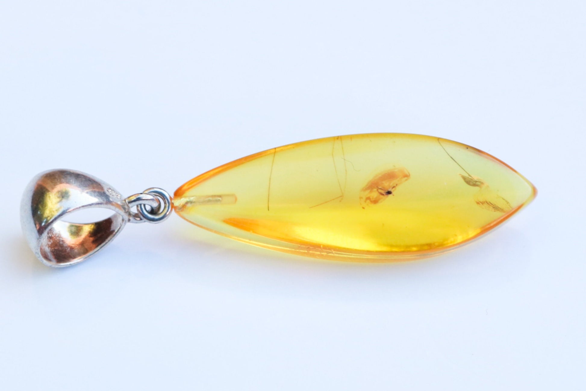 Baltic Amber Pendant with Fossil Insect Inclusions Yellow Natural Untreated 2" 3.3 gram
