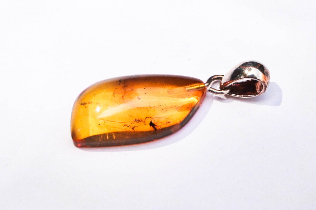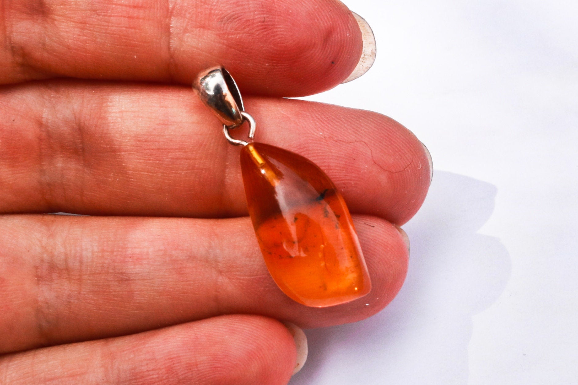 Baltic Amber Pendant with Fossil Insect Natural Untreated Honey 1.25" 1.6 gram 925 Silver