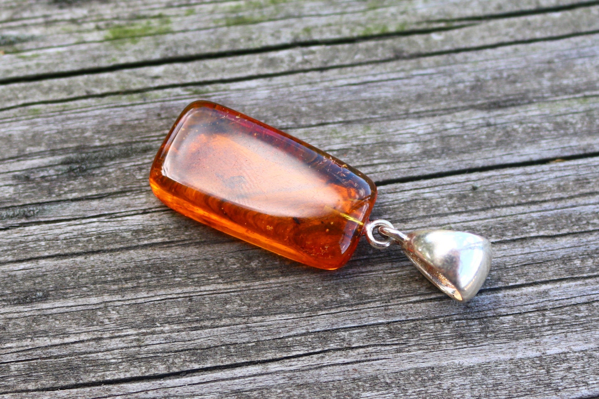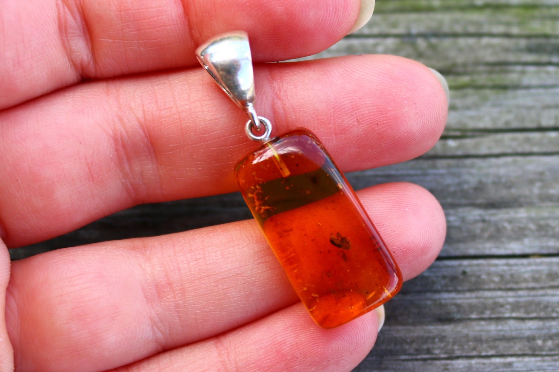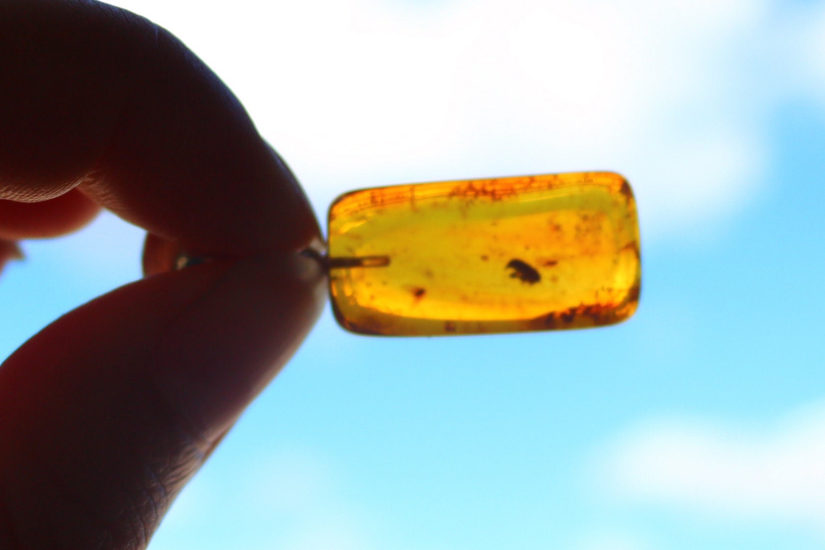 Baltic Amber Pendant with Fossil Insect Natural Untreated Yellow Unisex Jewelry 1.67" 3.7 gram