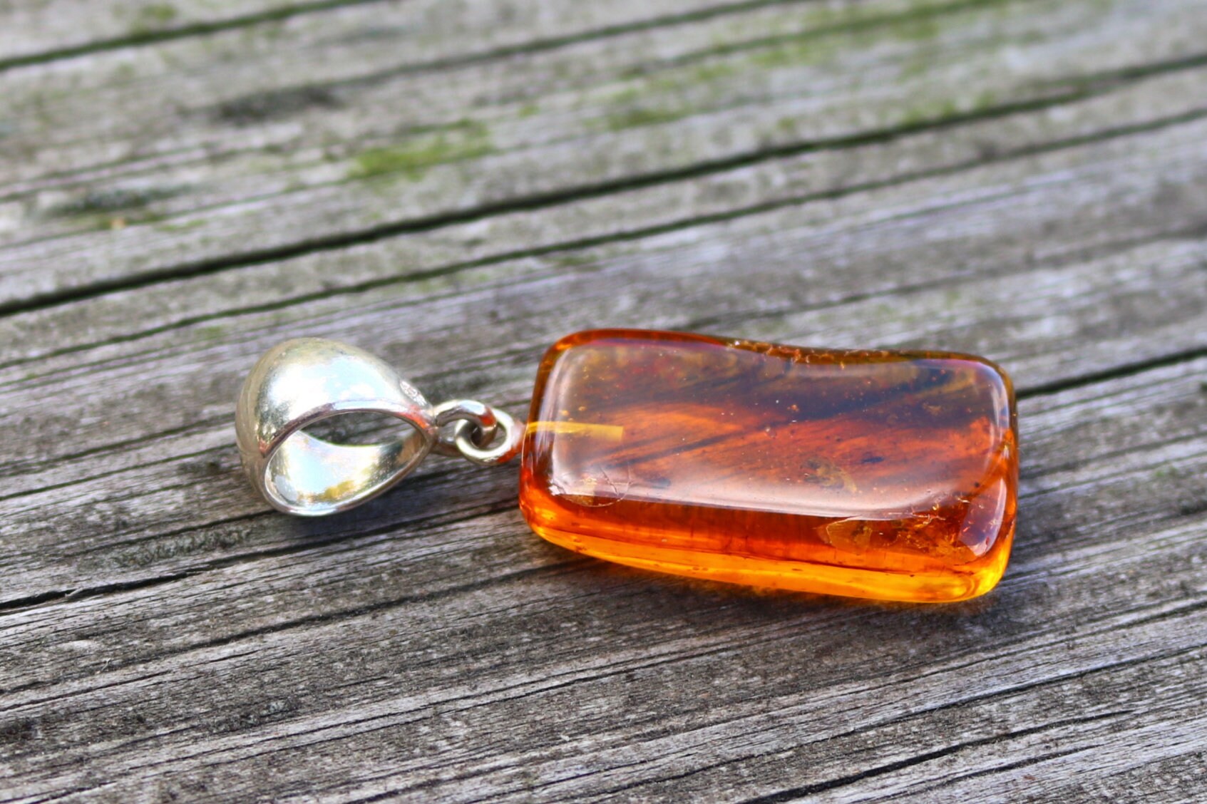 Naturally transparent yellow amber (about 10% of all mined amber) is often found with natural impurities and inclusions in it and pure fully translucent chunks are rare and highly valued. Small transparent yellow chunks (0.5 – 1 inch long) can be found along the shoes of the Baltic Sea in Kaliningrad (Russia), Lithuania, Latvia, Denmark. Often yellow amber is specially treated and purified with high pressure. Inclusions are normally found and also very visible in this kind of amber.