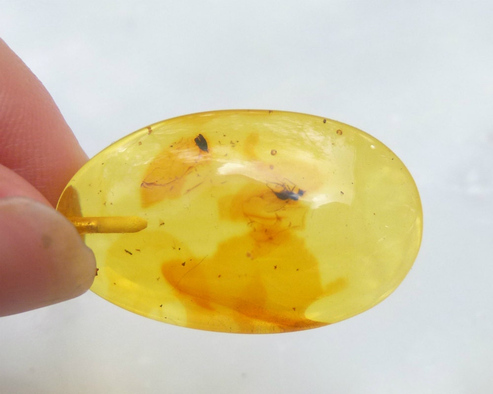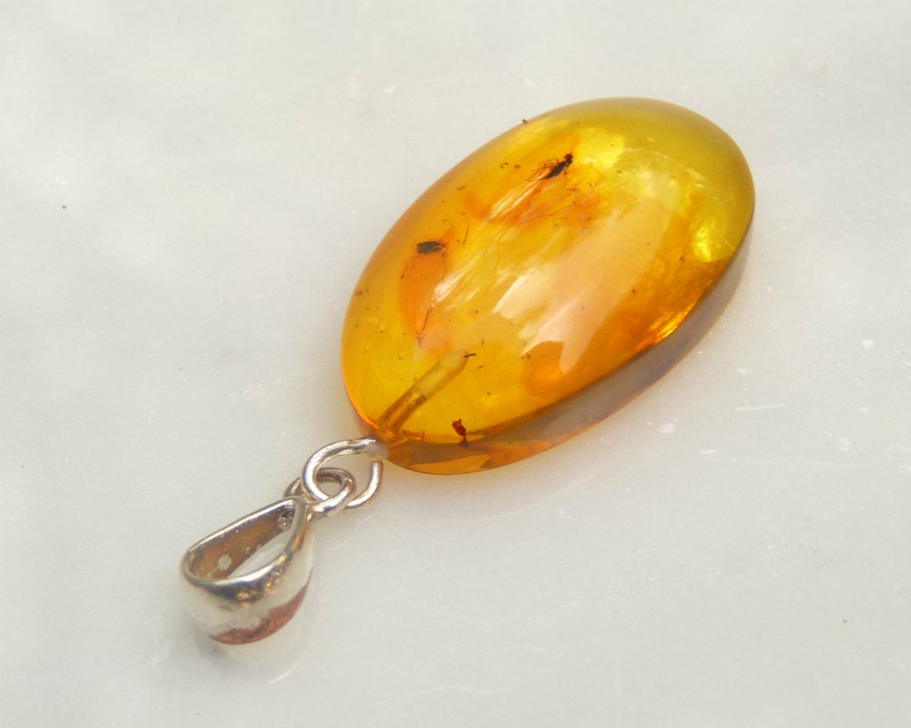 Baltic Amber Pendant with Fossil Insect Oval 1.8" 3.7 gram 925 Silver