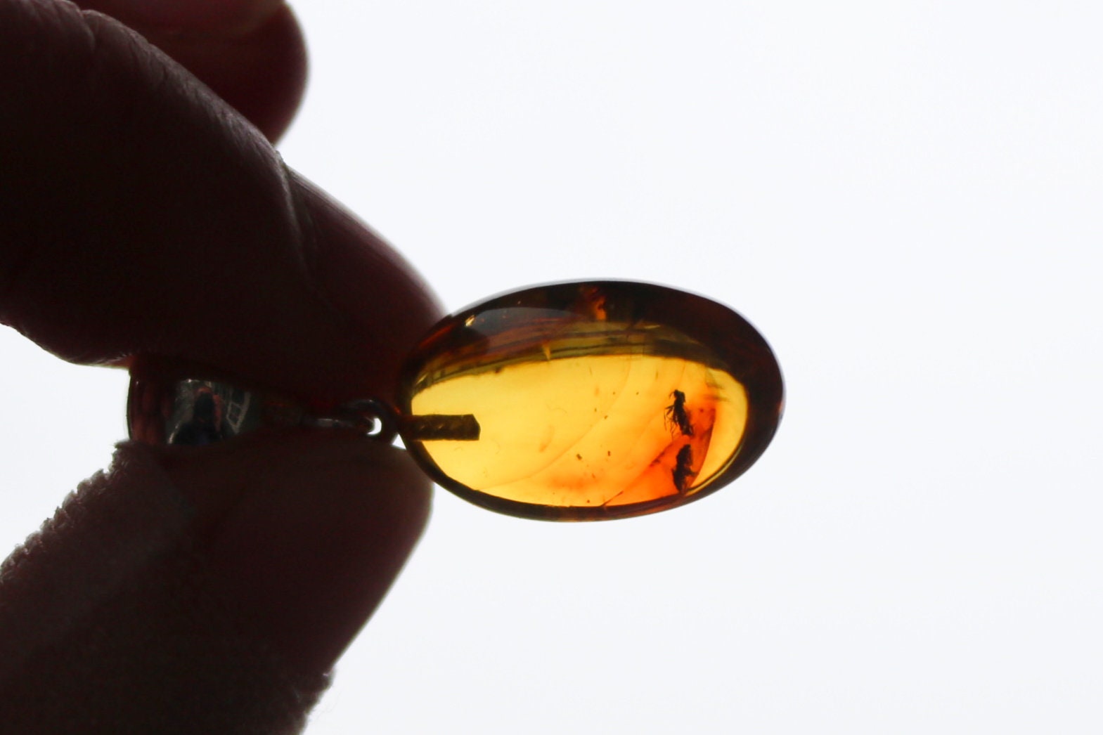 Baltic Amber pendant with a two fossil insects. Natural untreated honey color.