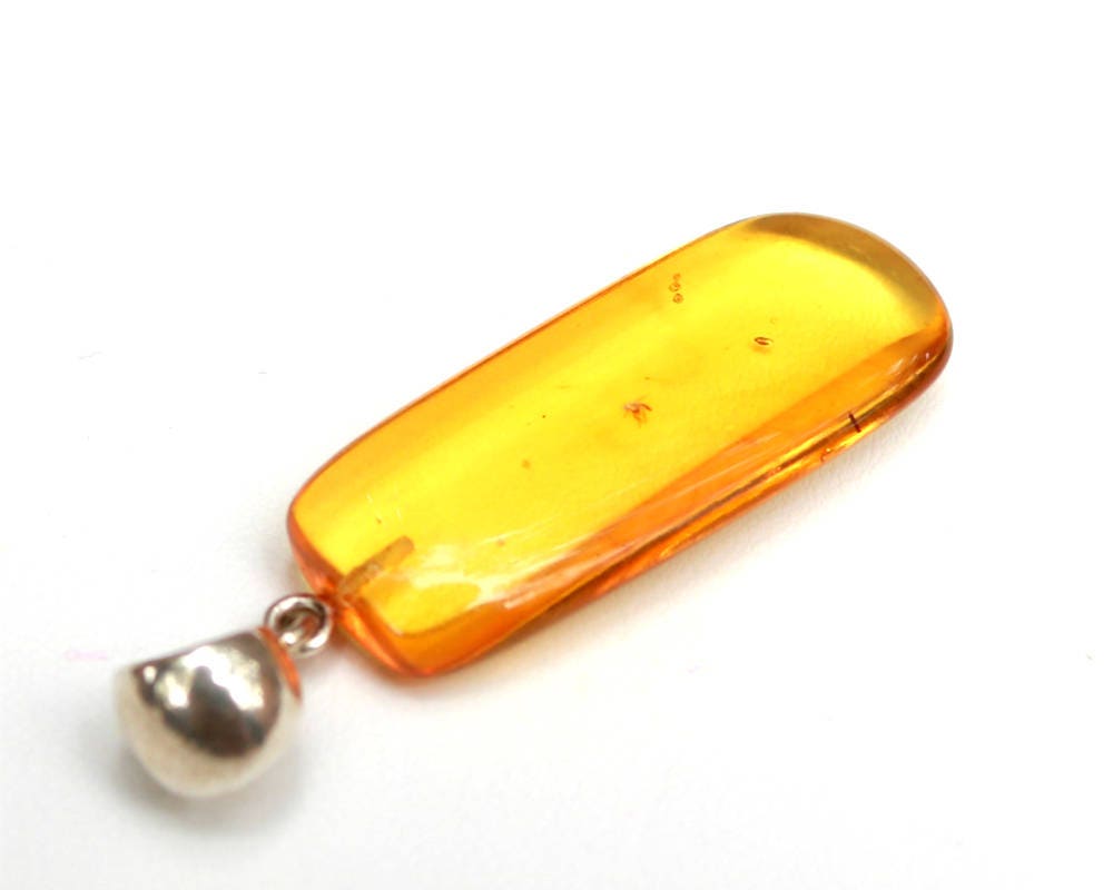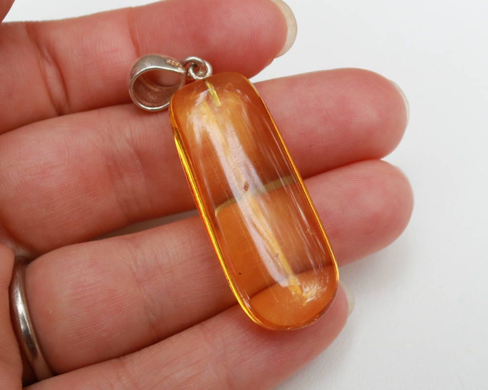 Baltic Amber Pendant with Fossil Insect Yellow Natural Untreated 2.12" 4 gram 925 Silveer