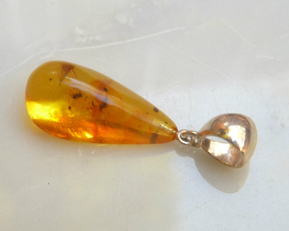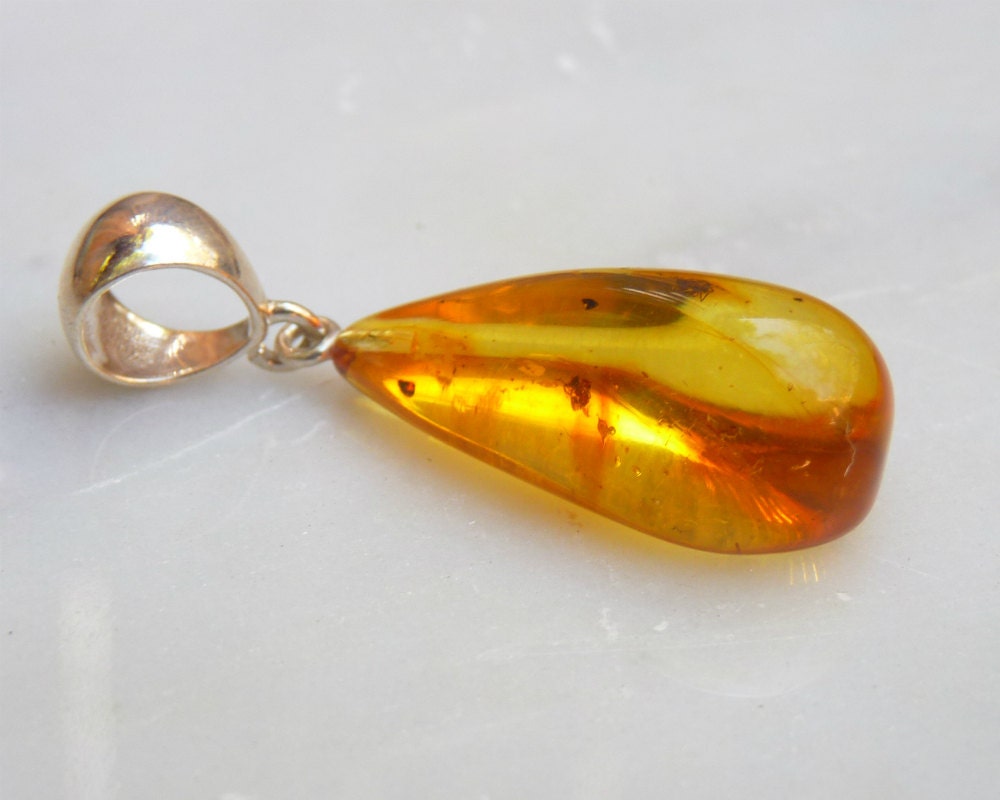 Baltic Amber Pendant with Fossil Insects Drop Natural Untreated Honey Unisex 1.7" 3.6 gram