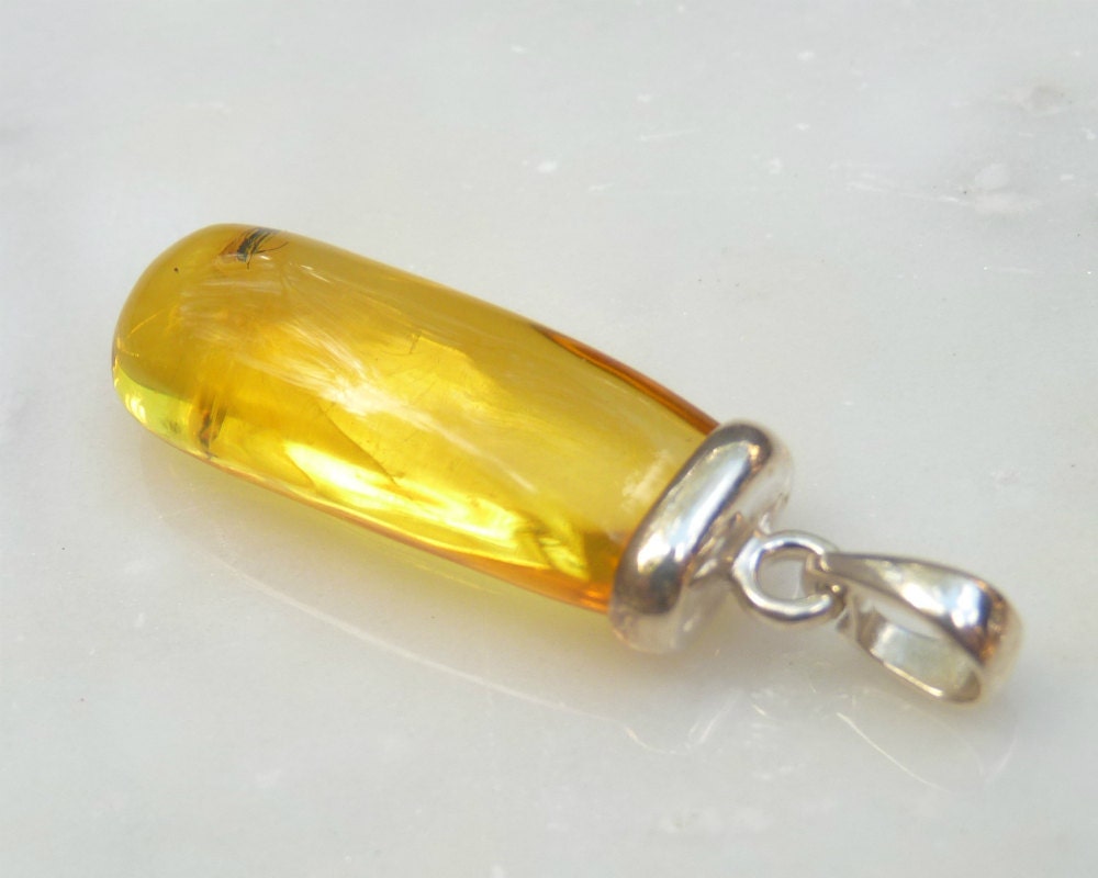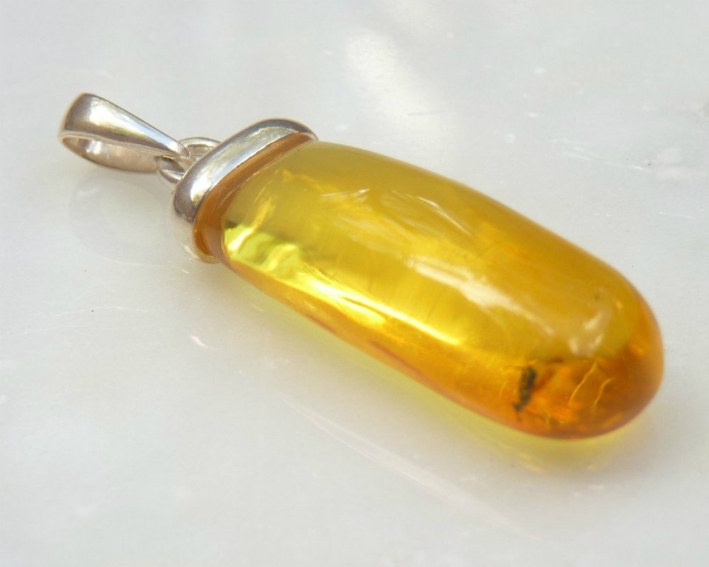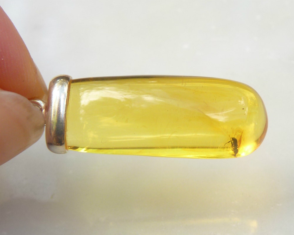 Baltic Amber Pendant with Fossil Insects Fly 1.57" Natural Honey 3.1 gram 925 Silver