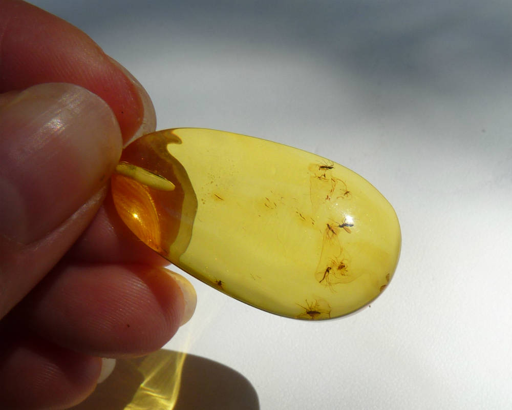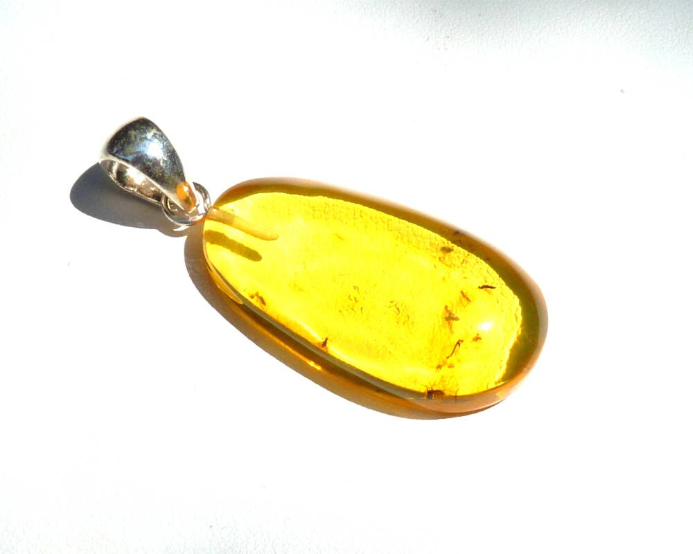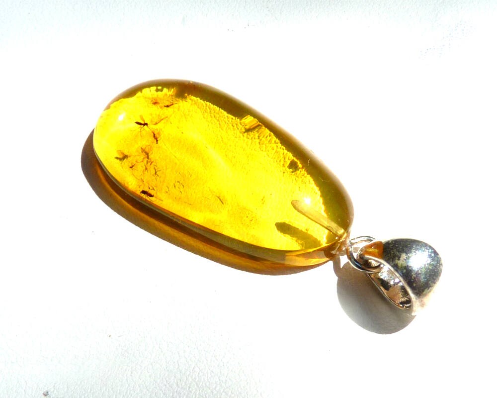 Baltic Amber Pendant with Fossil Insects Natural Yellow Drop 1.87" 4.8 gram gram 925 Silver