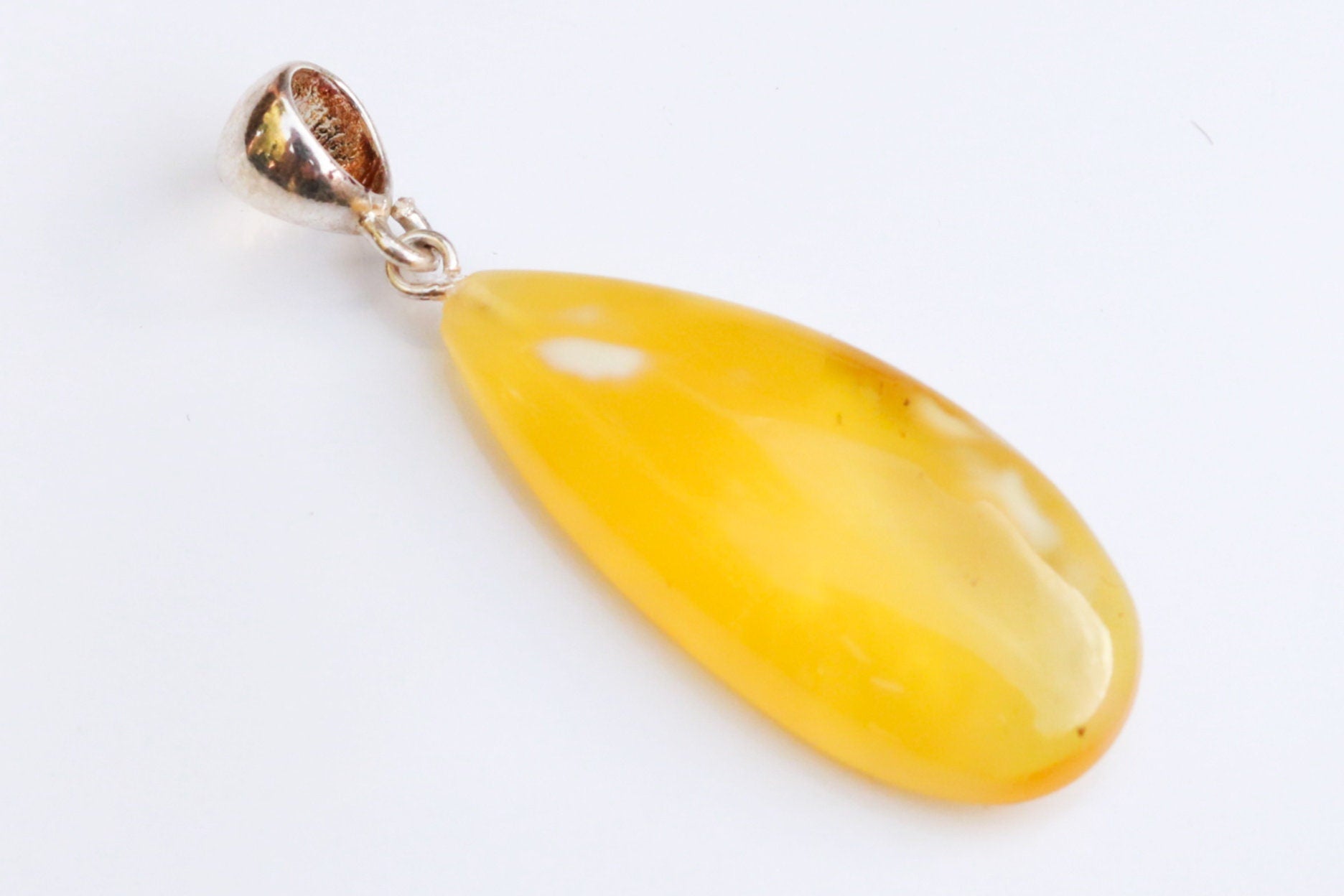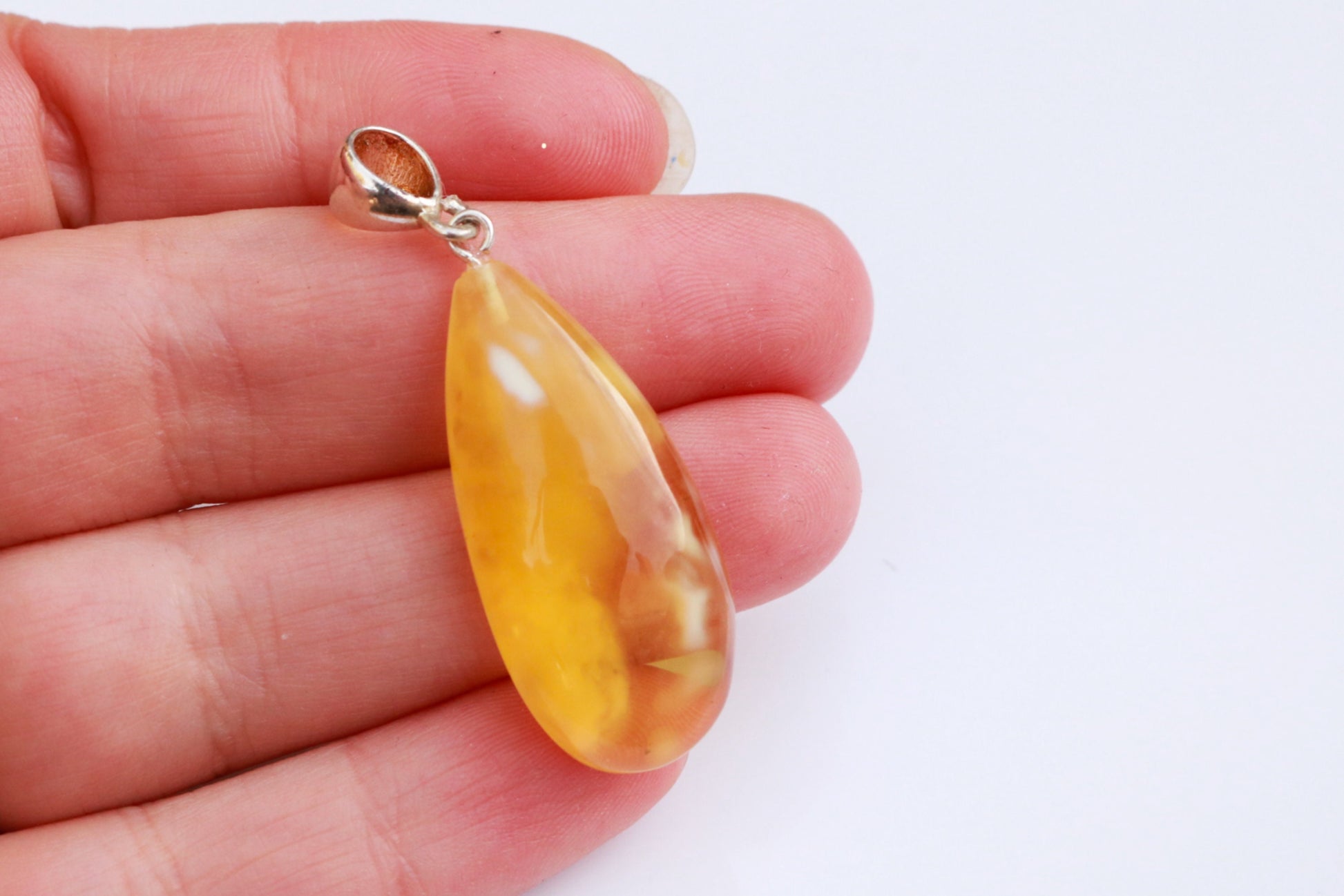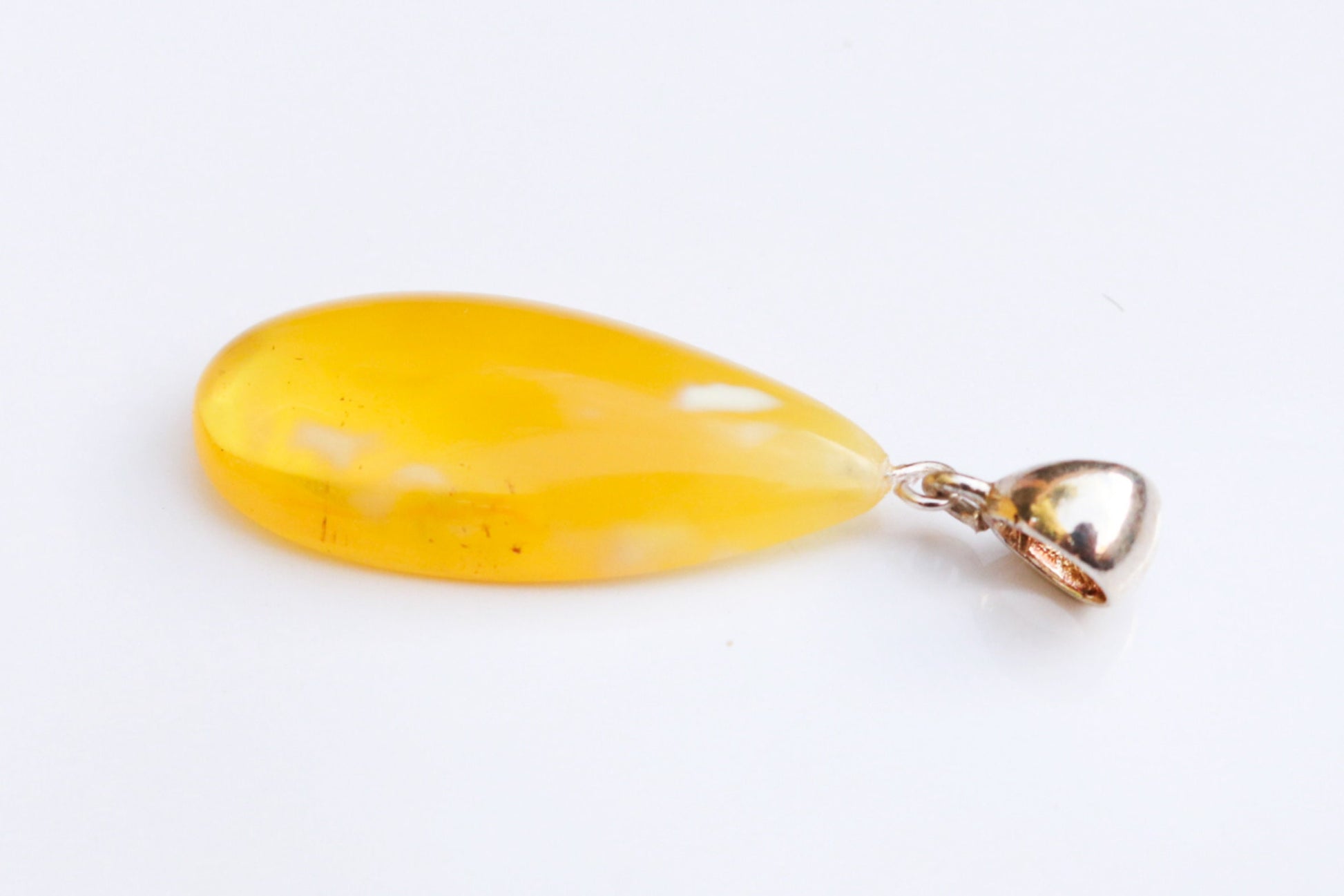 Baltic Amber pendant in natural untreated yellow color with cloudiness and milky swirls.