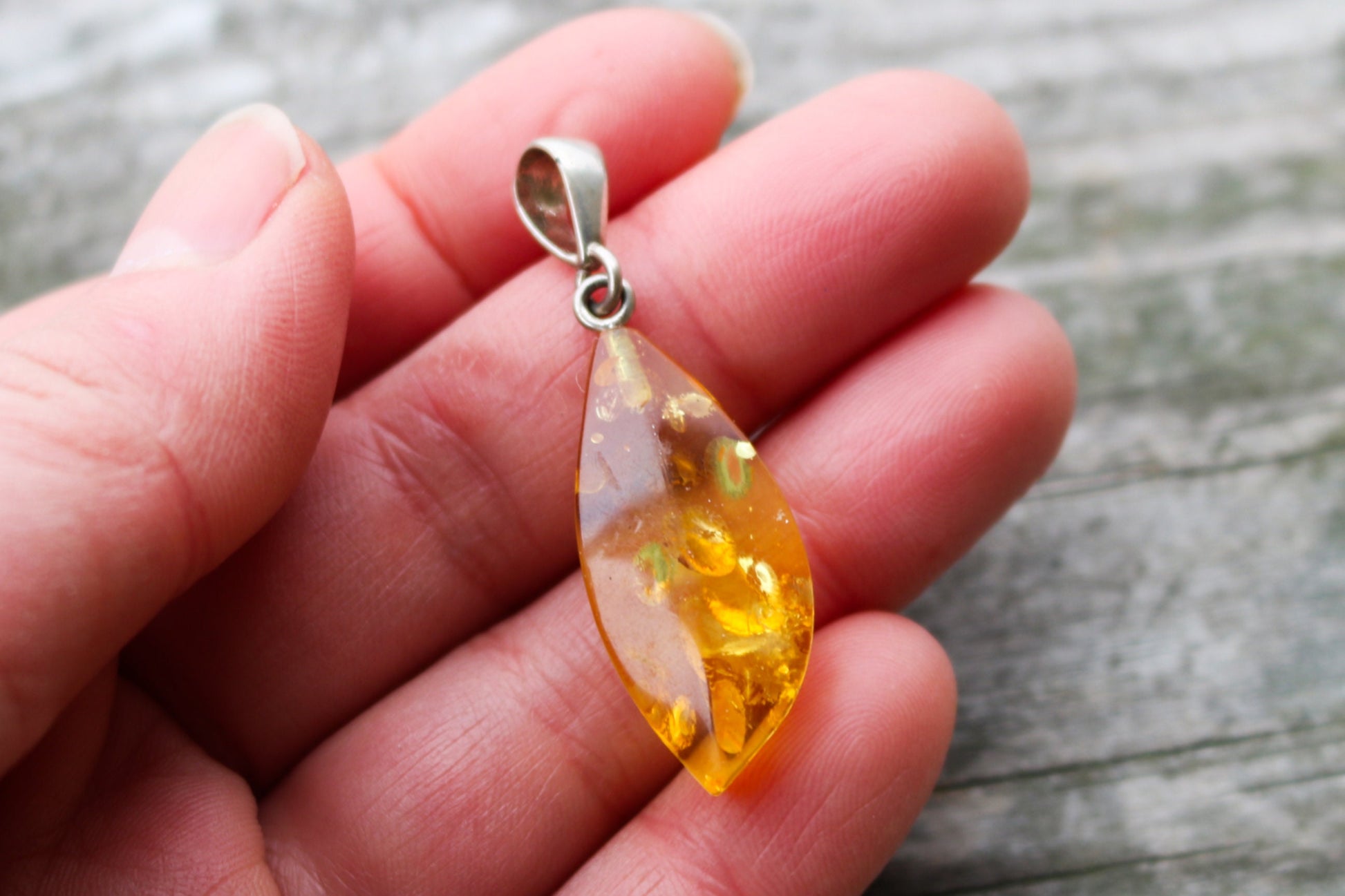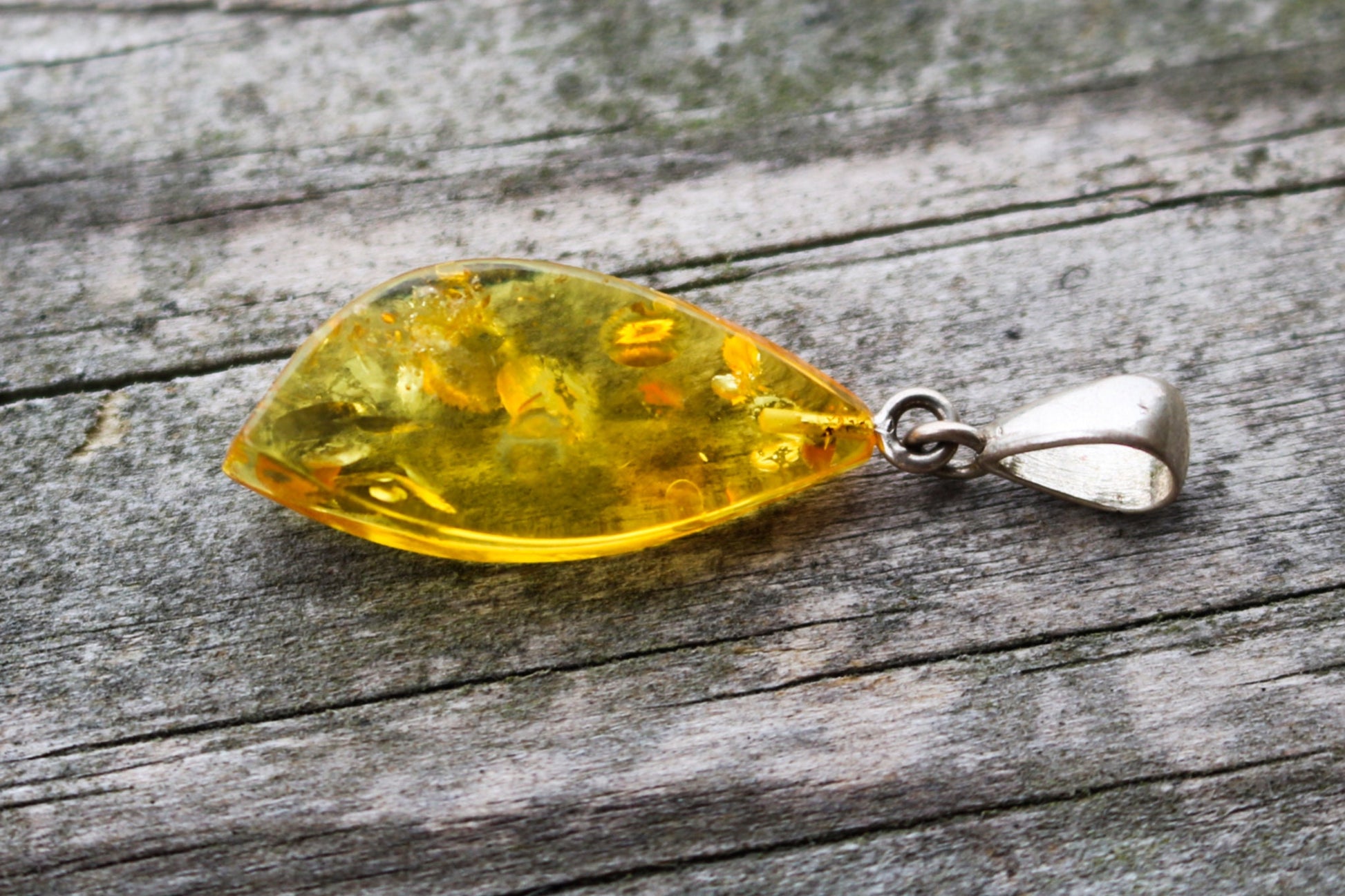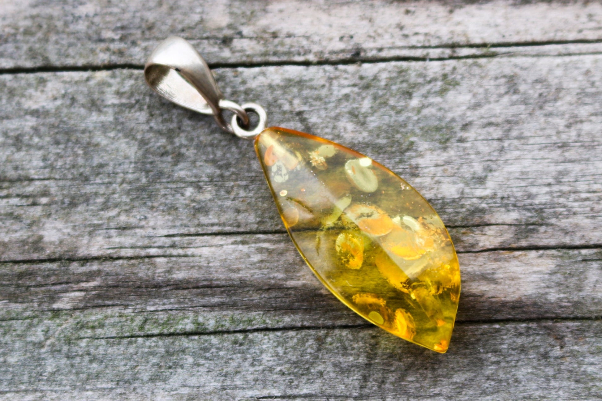 Baltic Amber Pendant Yellow Cloudy Natural Faceted Sparkling 1.79″ 2.5 gram 925 Silver