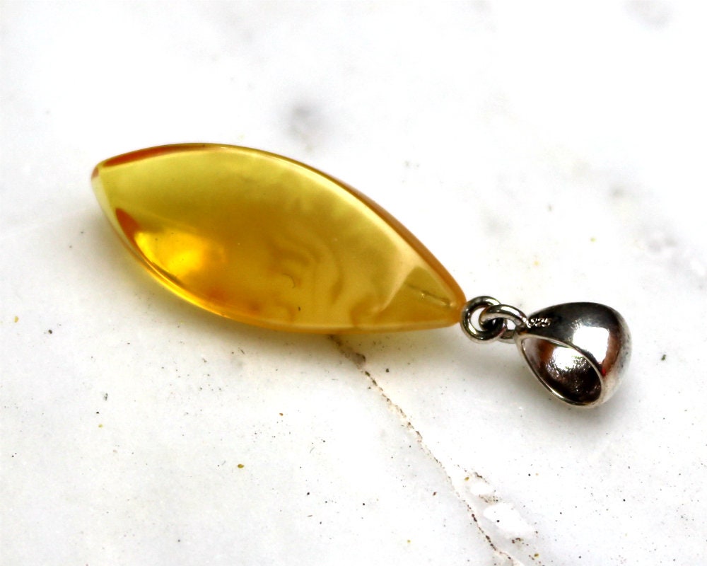 Baltic Amber Pendant Yellow Faceted Jewelry Natural Untreated Cloudy Unisex 1.77" 2.6 gram 925 Silver
