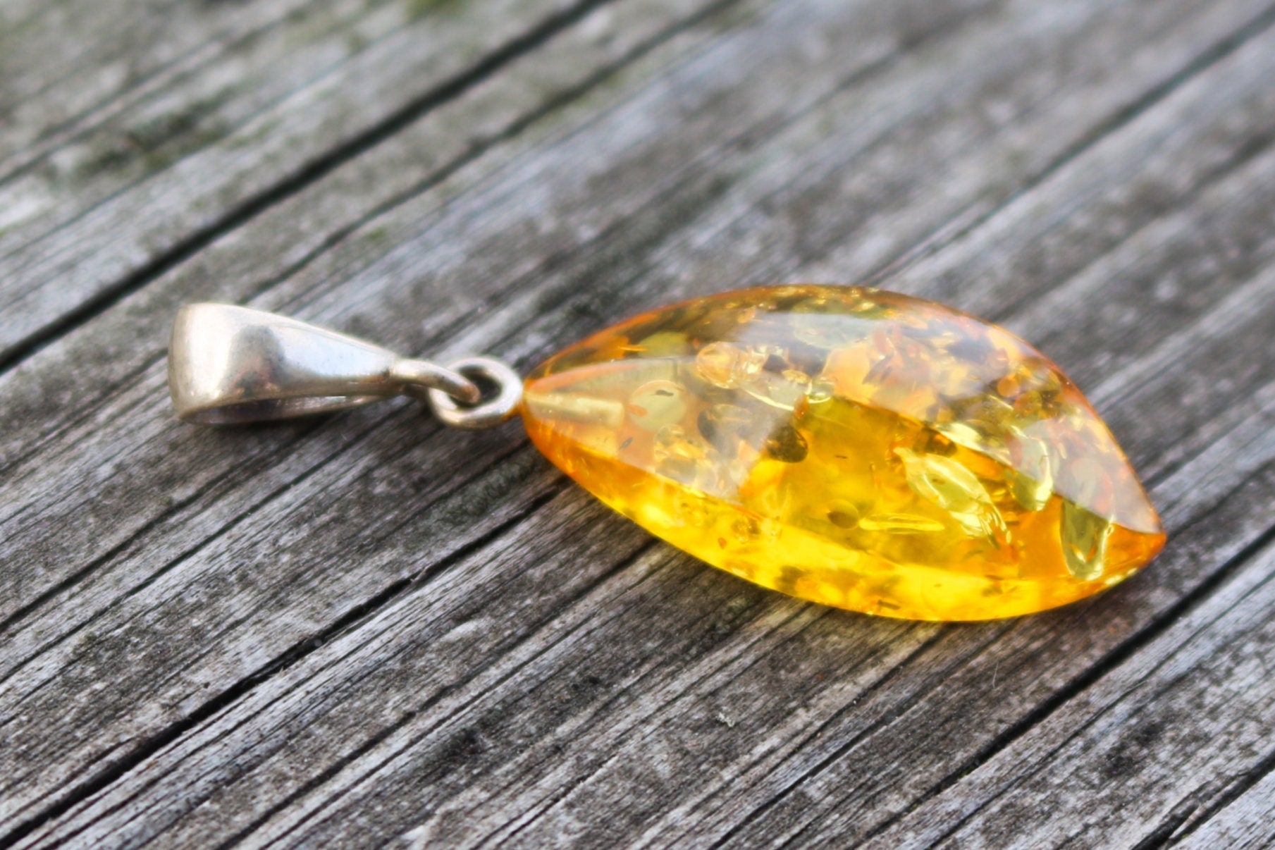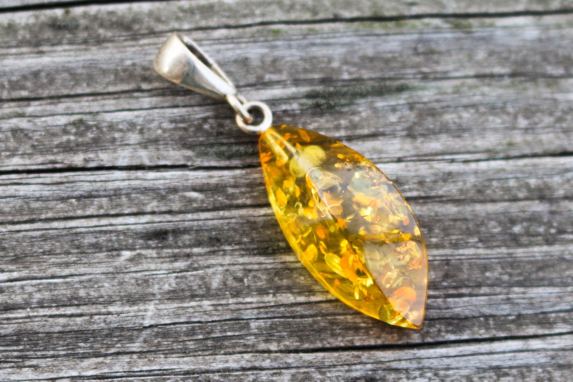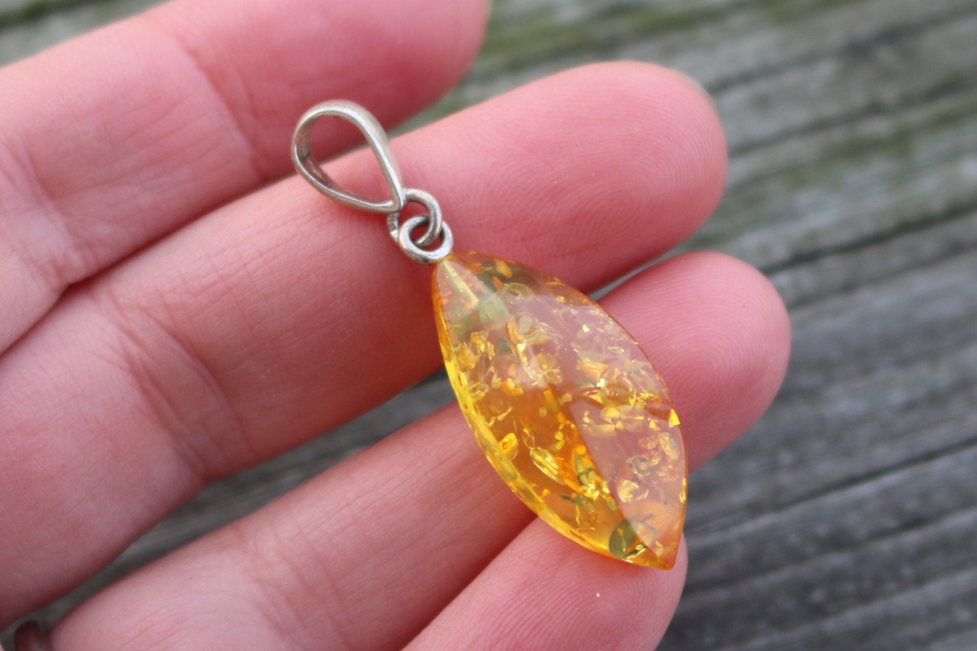 Baltic Amber Pendant Yellow Lemon Faceted Cloudy Jewelry Unisex 1.7" 2.6 gram 925 Silver
