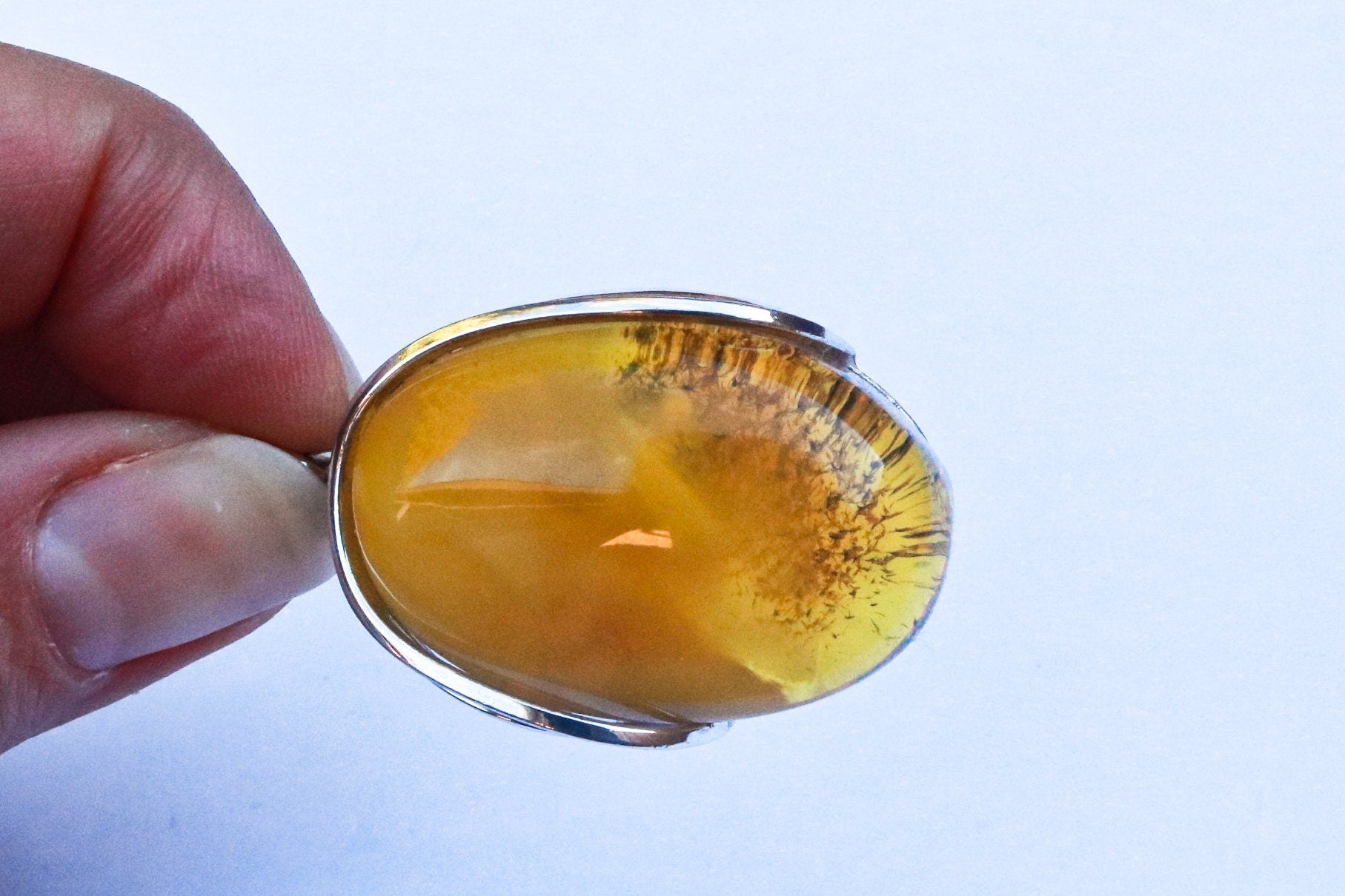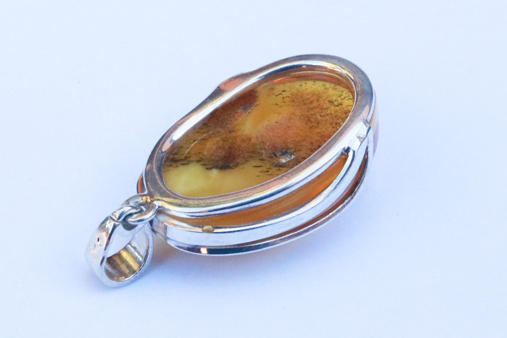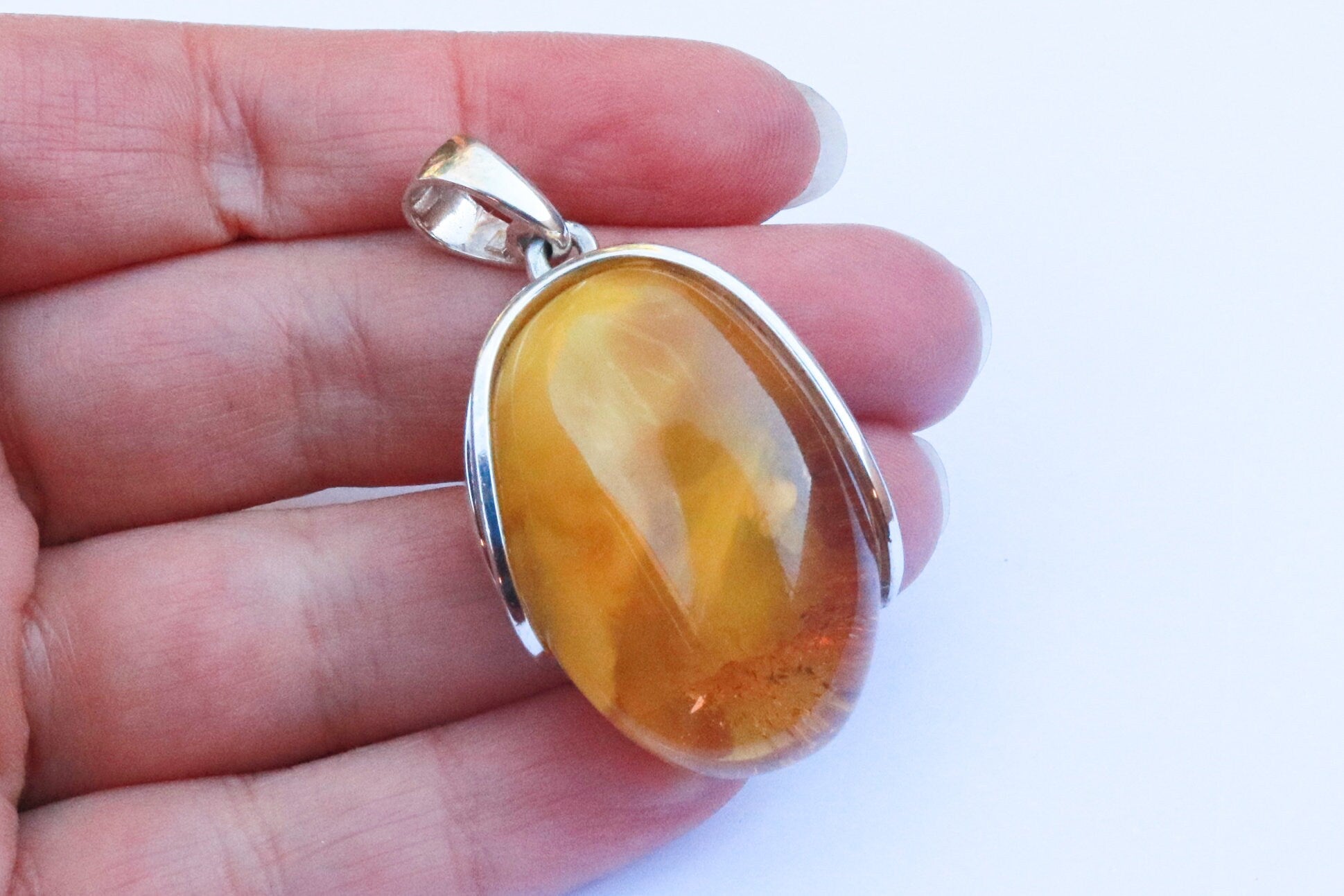 Baltic Amber Pendant Yellow Oval Jewelry Natural Untreated Cloudy Unisex 1.93" 14.4 gram 925 Silver