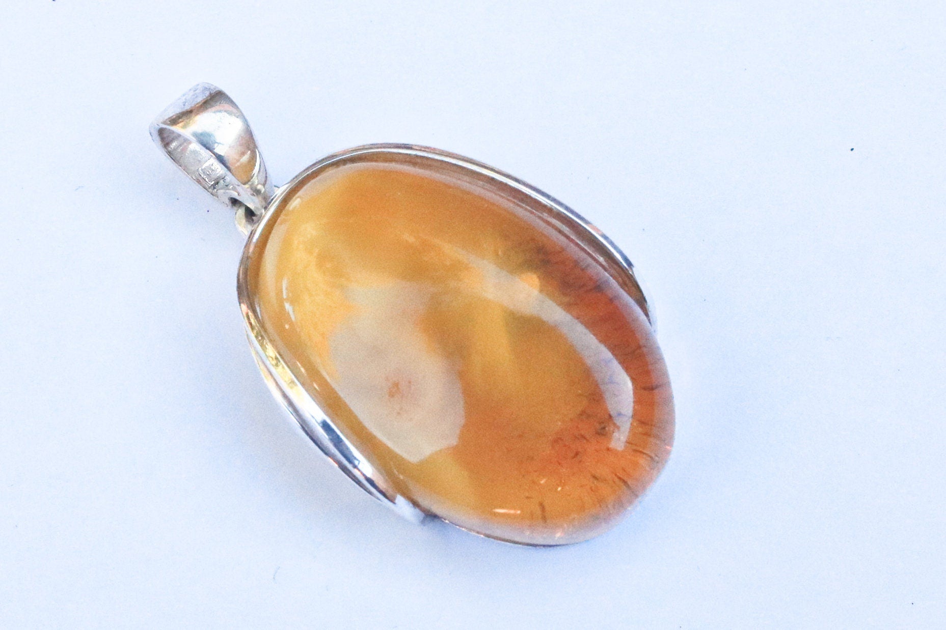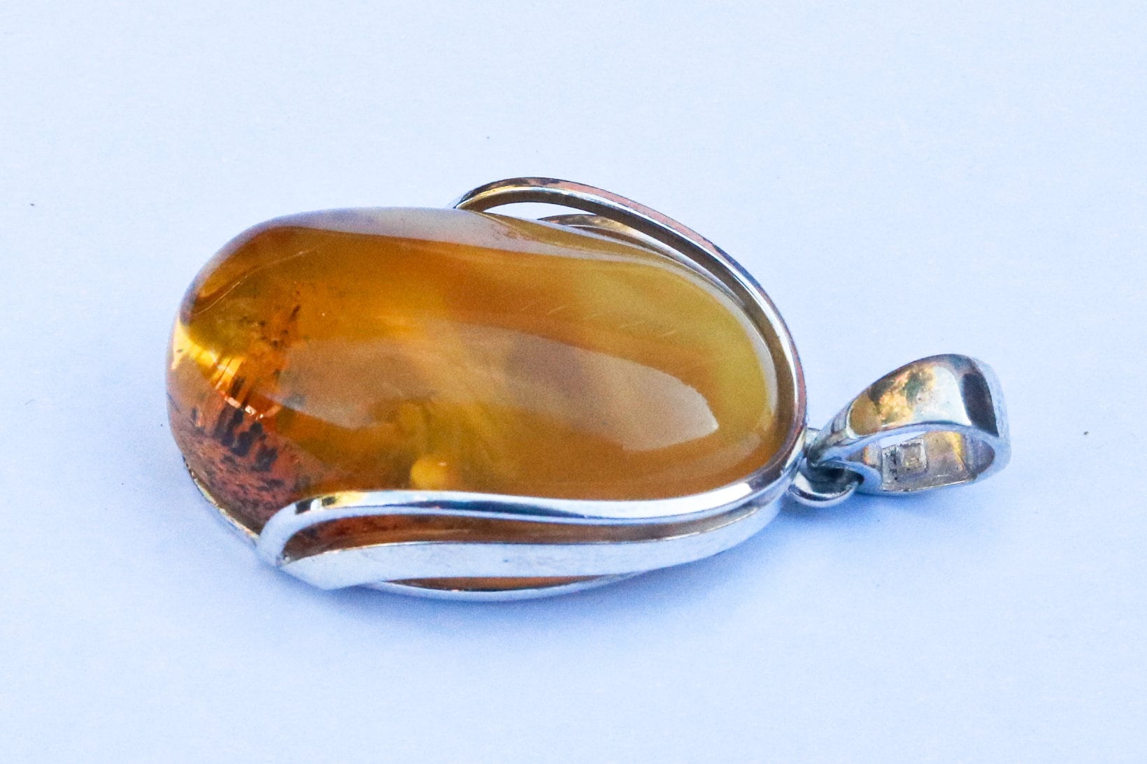 Baltic Amber pendant in untreated yellow color with rare natural cloudiness. Set in 925 sterling silver.