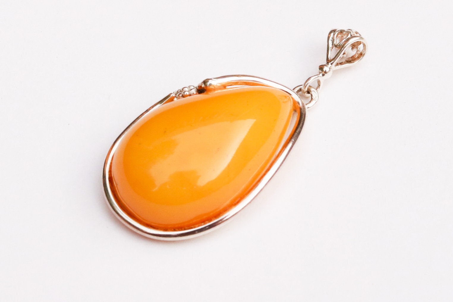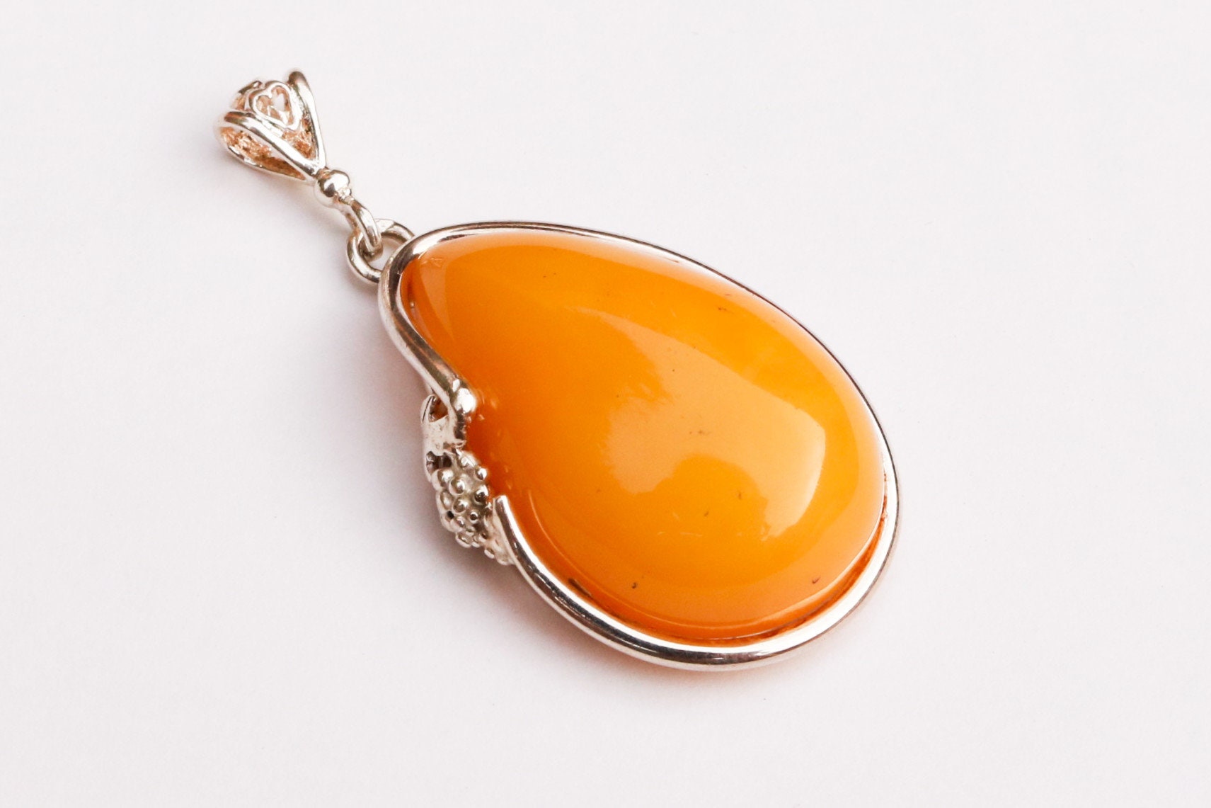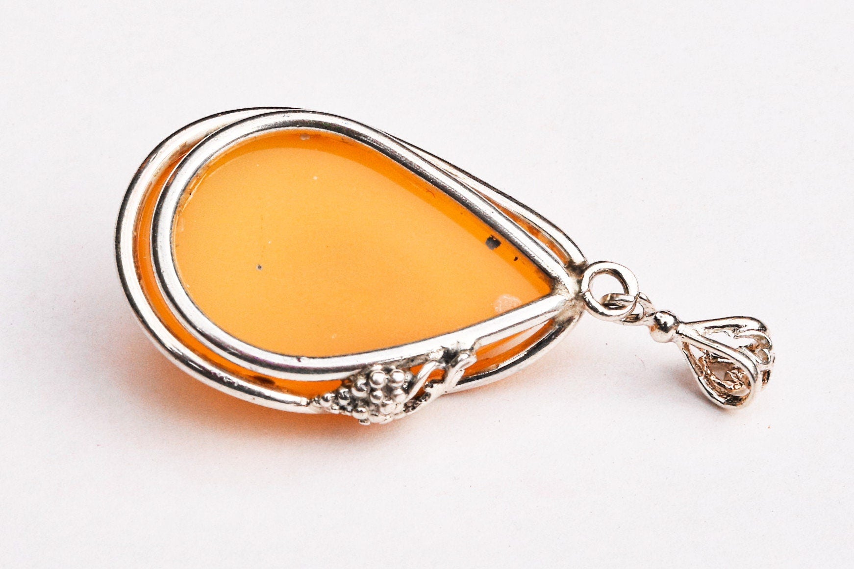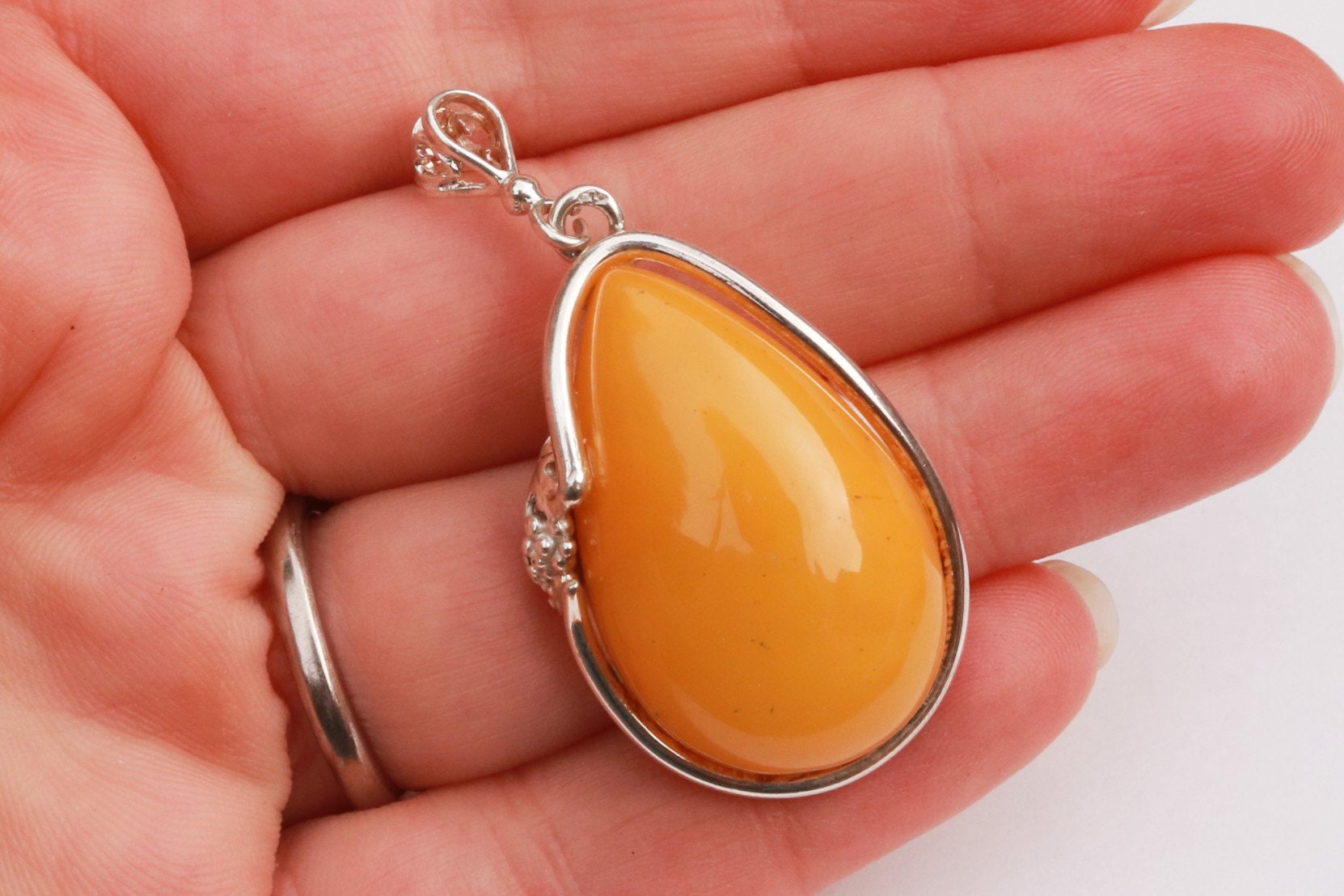 Baltic Amber Pendant Yolk Antique Butterscotch Drop Jewelry Unisex Natural 1.96" 8.6 gram 925 Silver