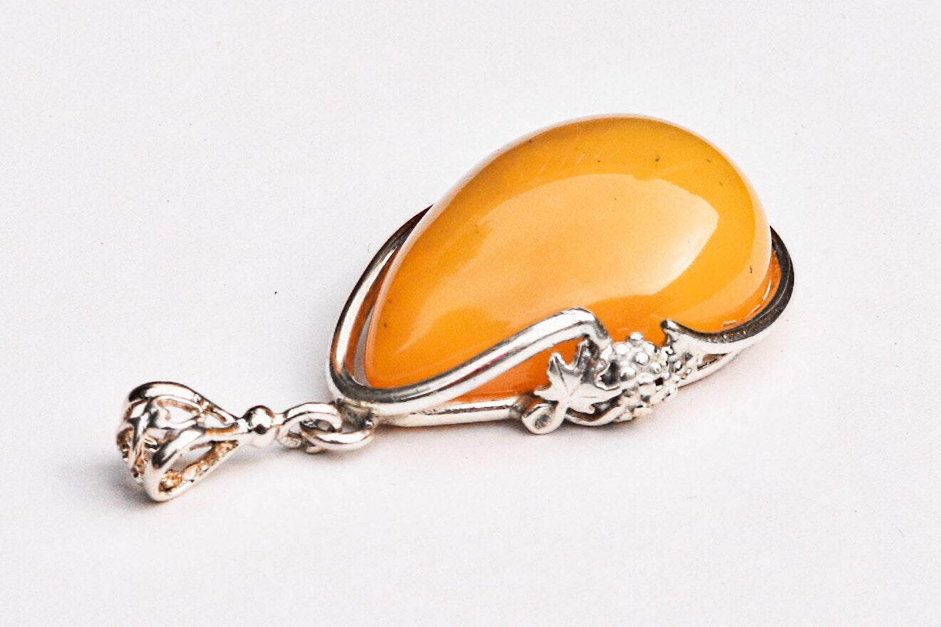 Unique hand crafted Baltic Amber pendant in natural untreated butterscotch (yolk) color. Set in 925 sterling silver.