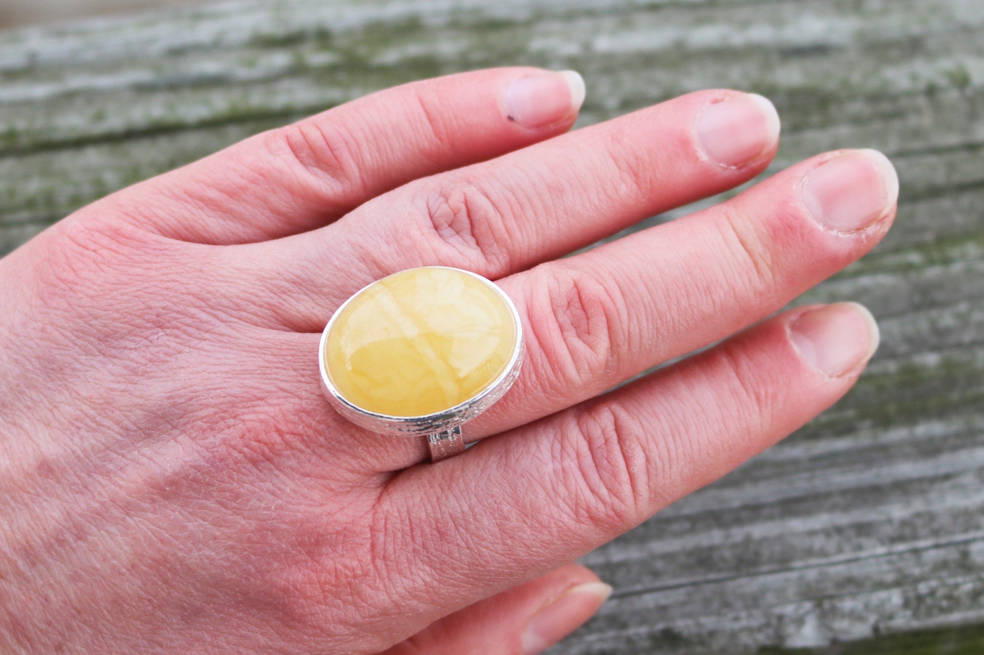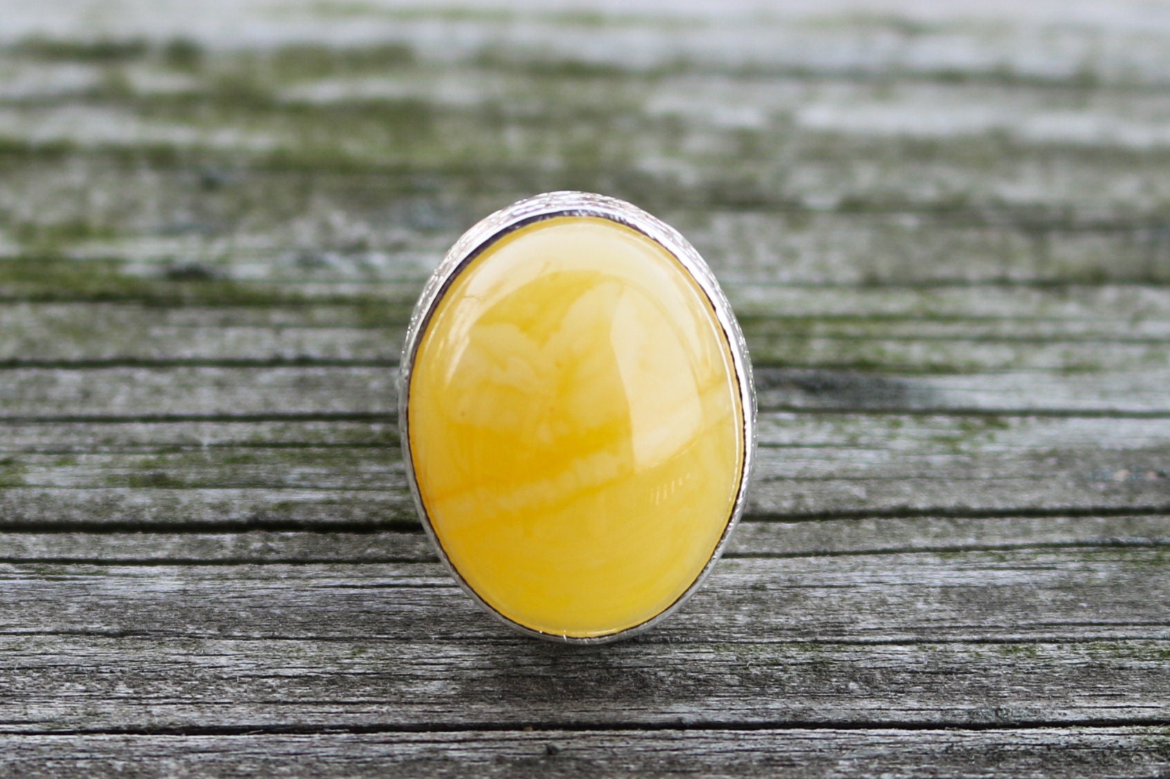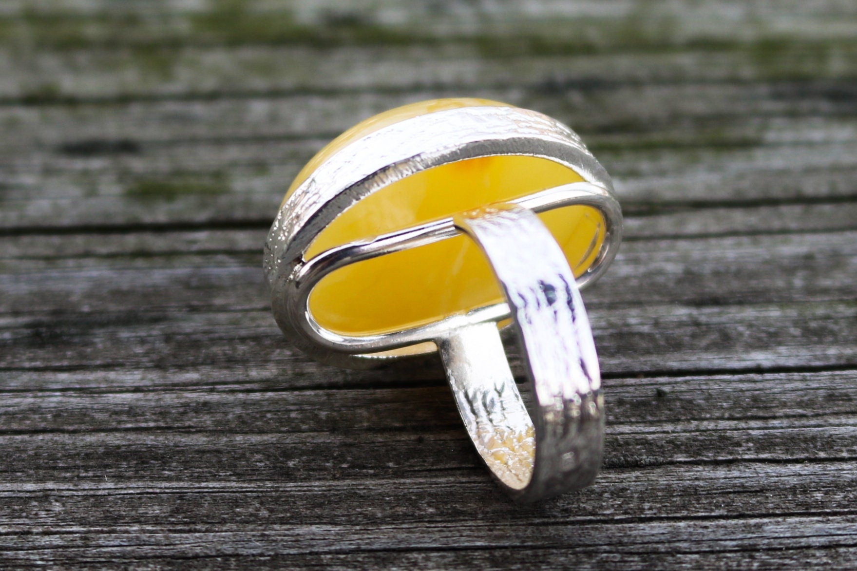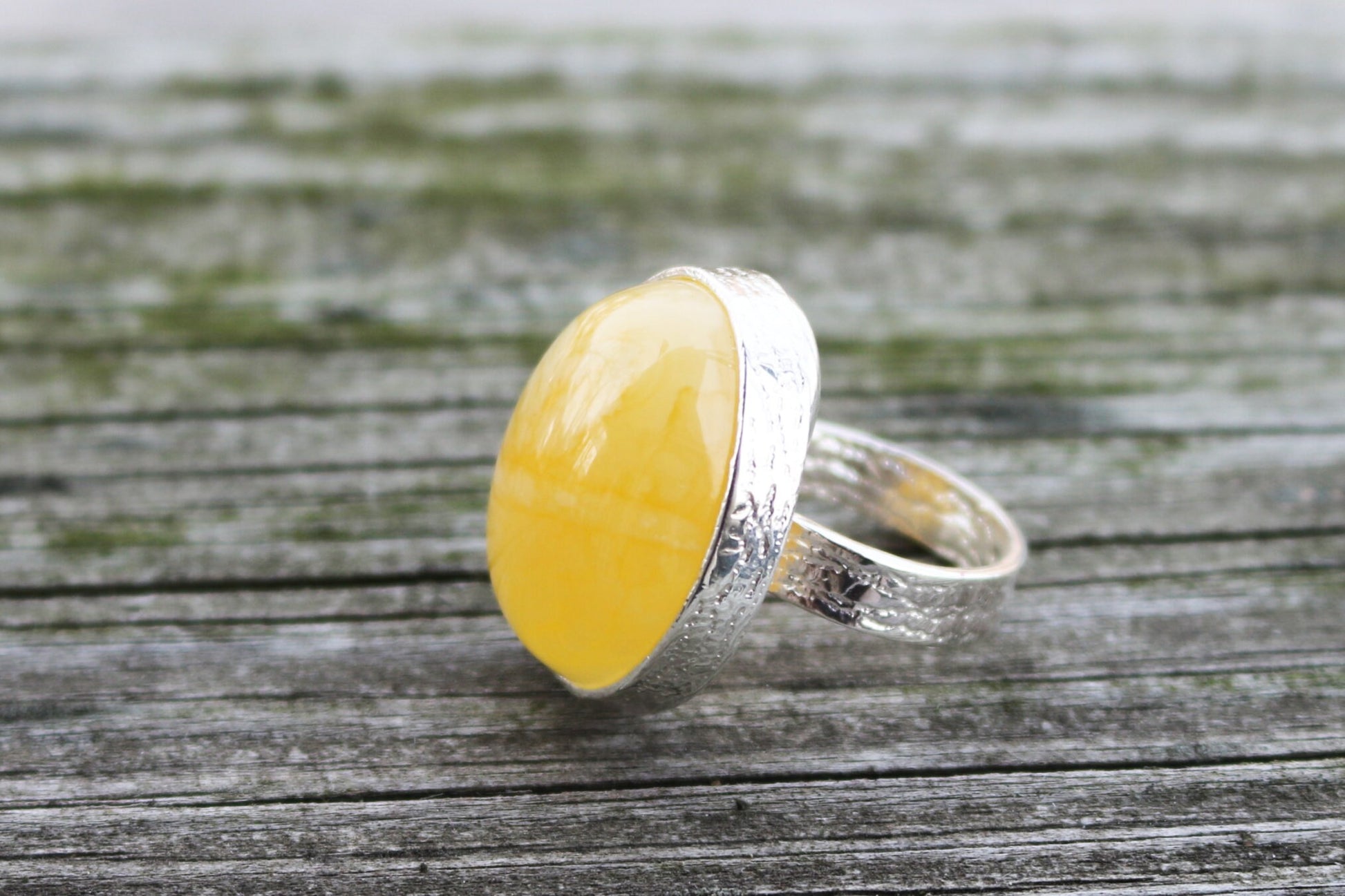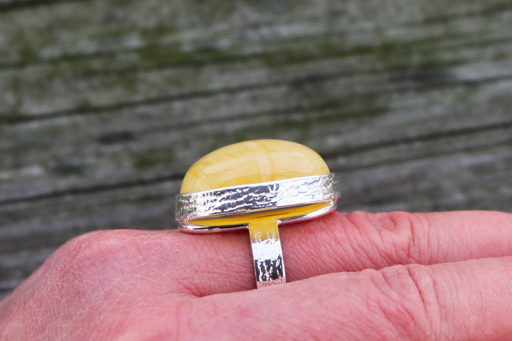 Baltic Amber Ring Butterscotch Adjustable Natural Untreated Yellow Jewelry 925 Silver 12.3 gram 925 Silver