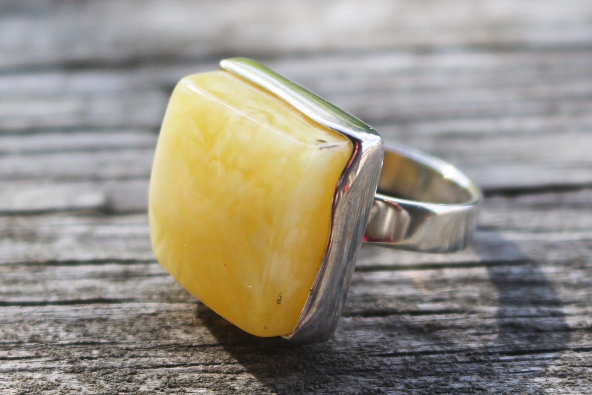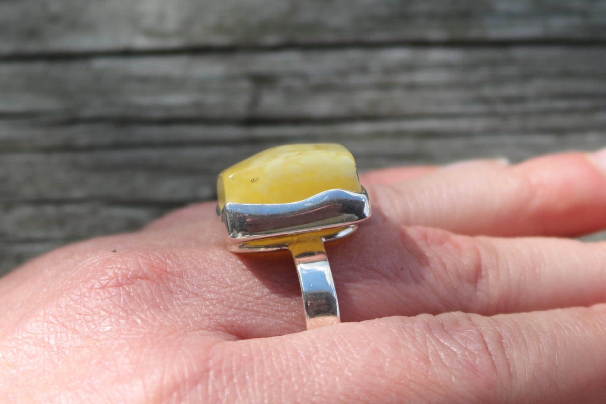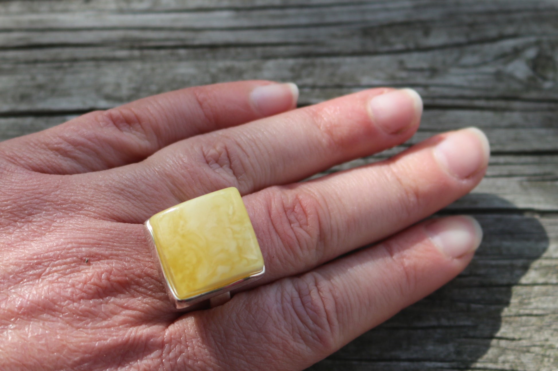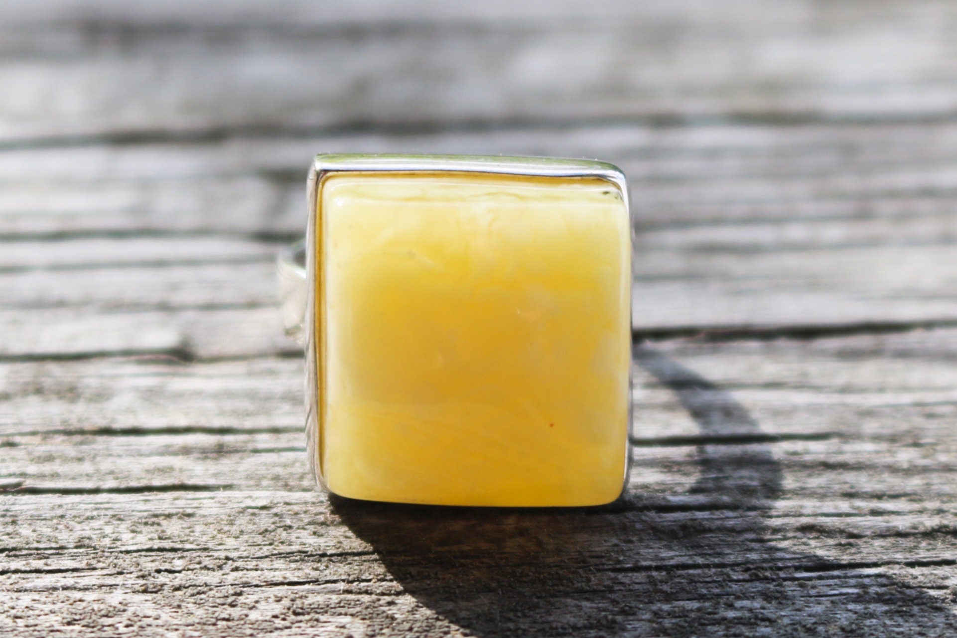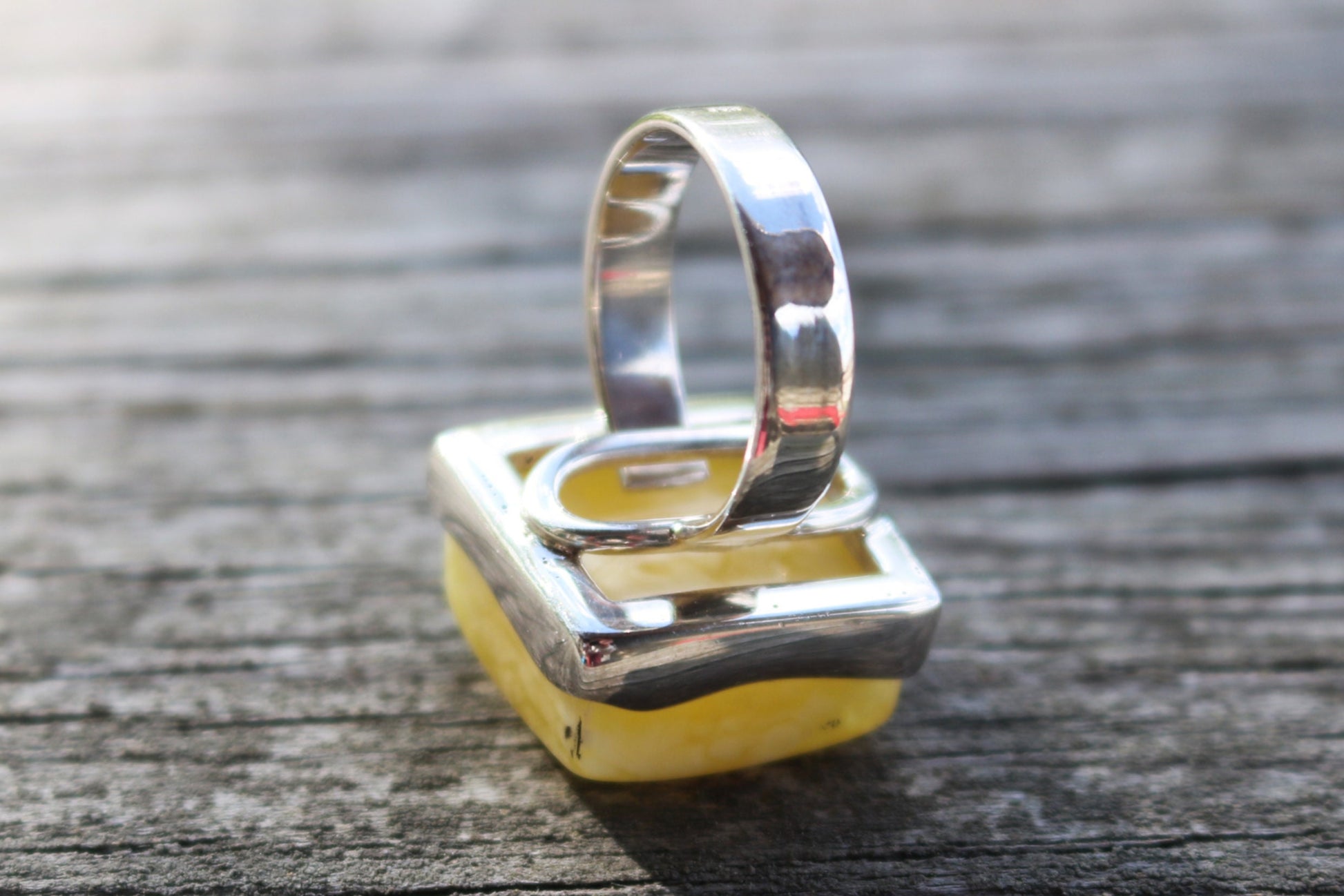Baltic Amber Ring Butterscotch Adjustable Square Natural Untreated Jewelry 925 Silver 12.6 gram