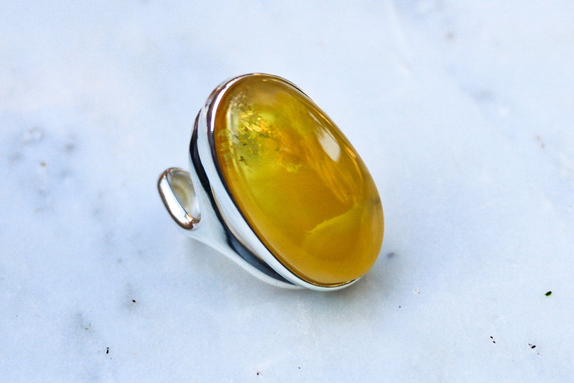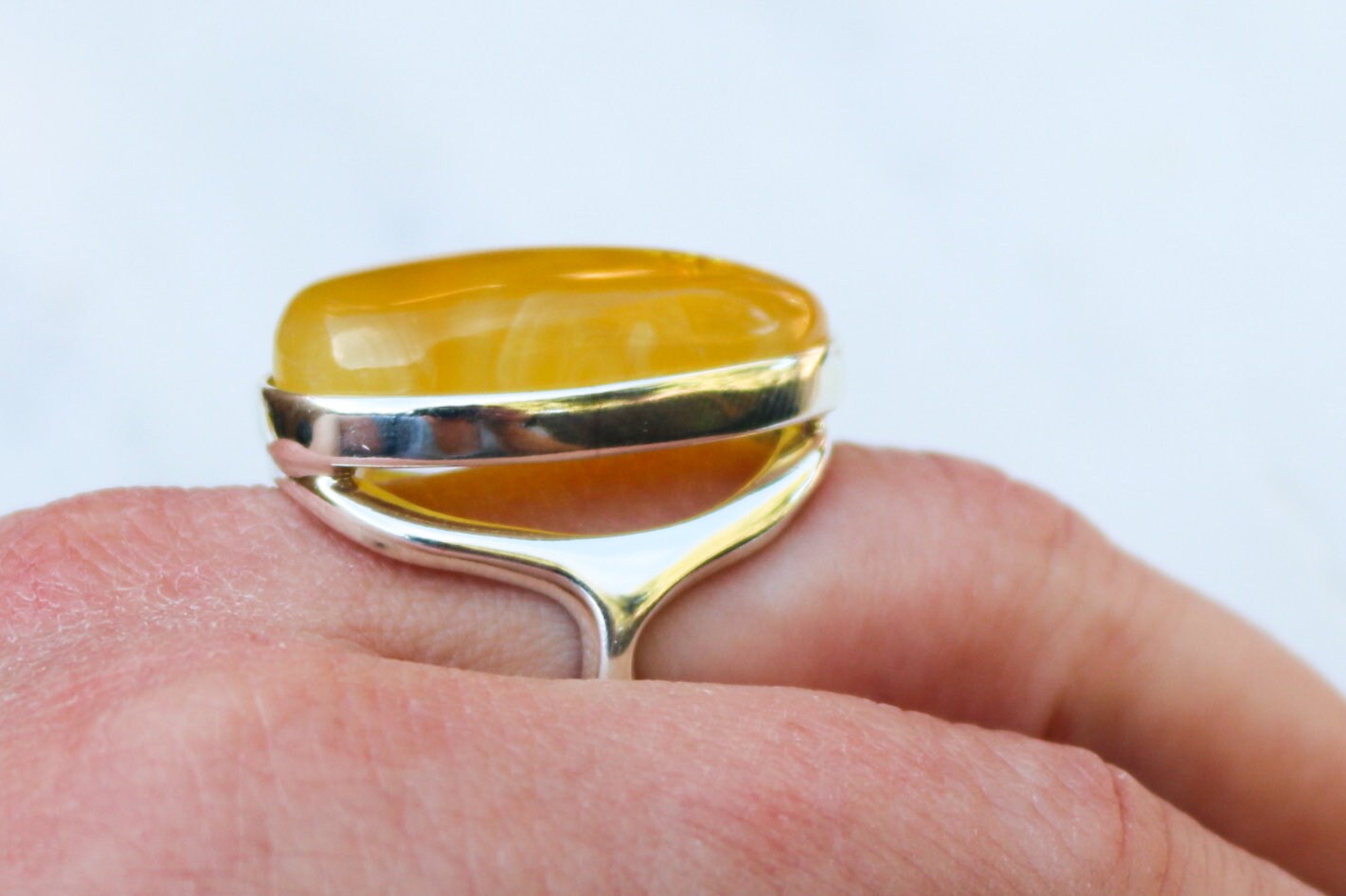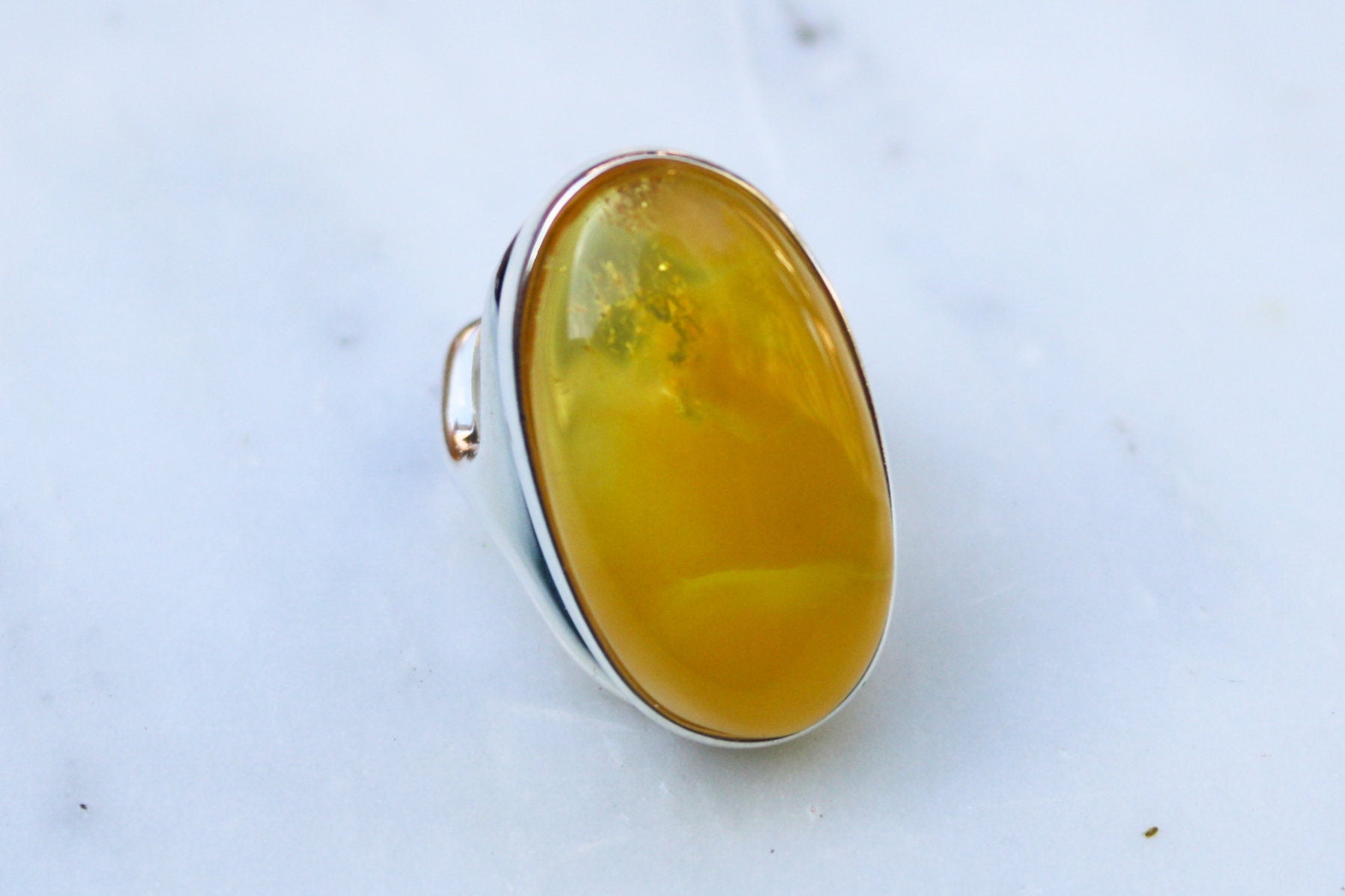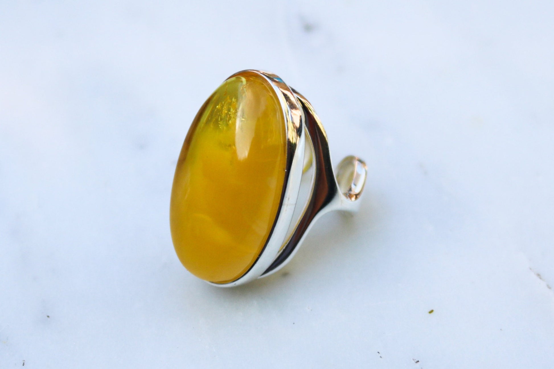 Baltic Amber ring in rare natural untreated cloudy yellow color. Set in 925 sterling silver.