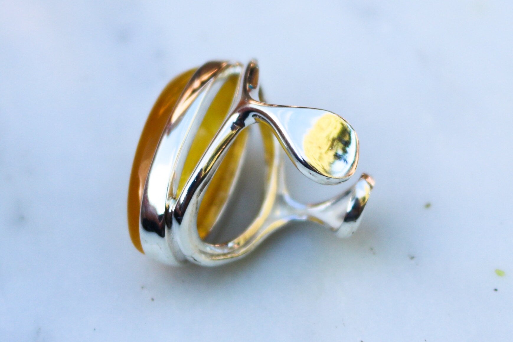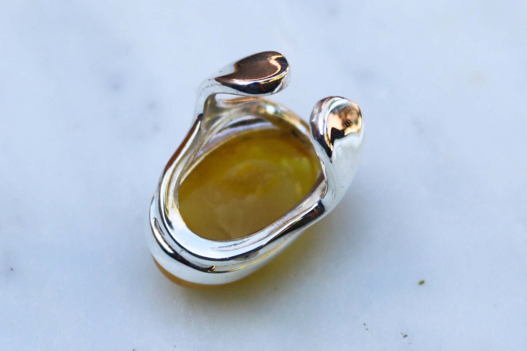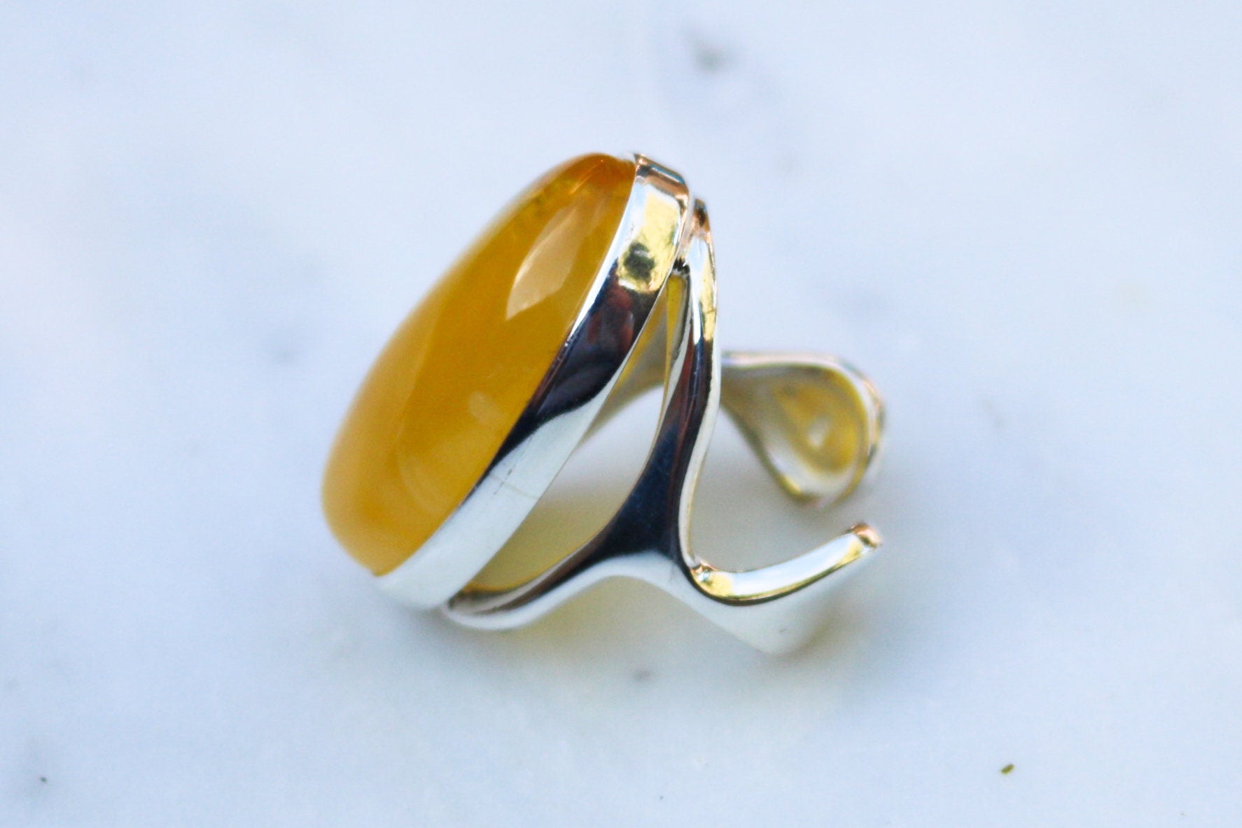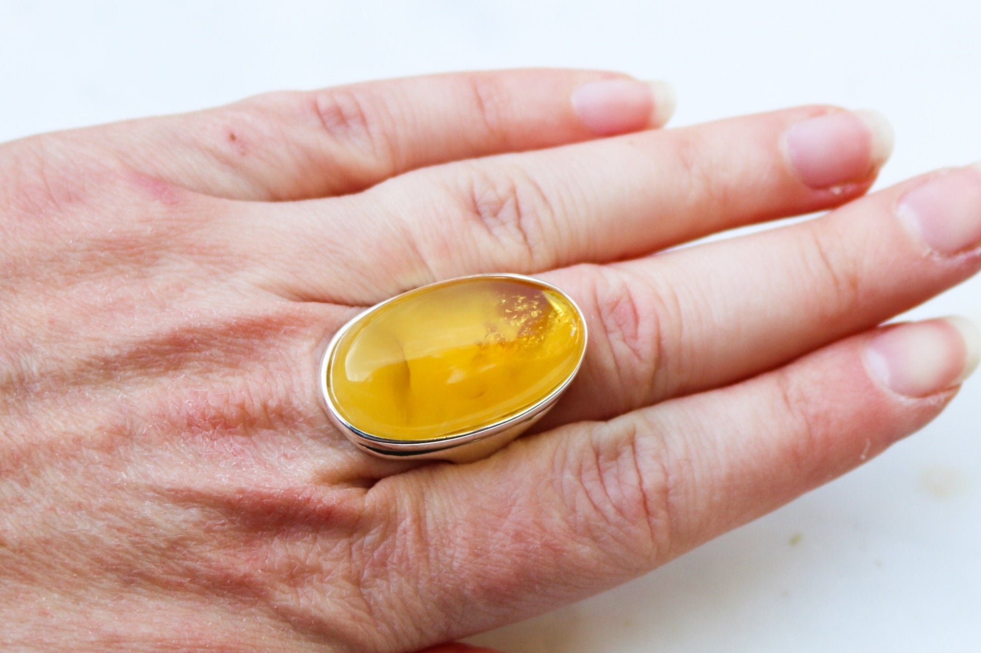 Baltic Amber ring in rare natural untreated cloudy yellow color. Set in 925 sterling silver.