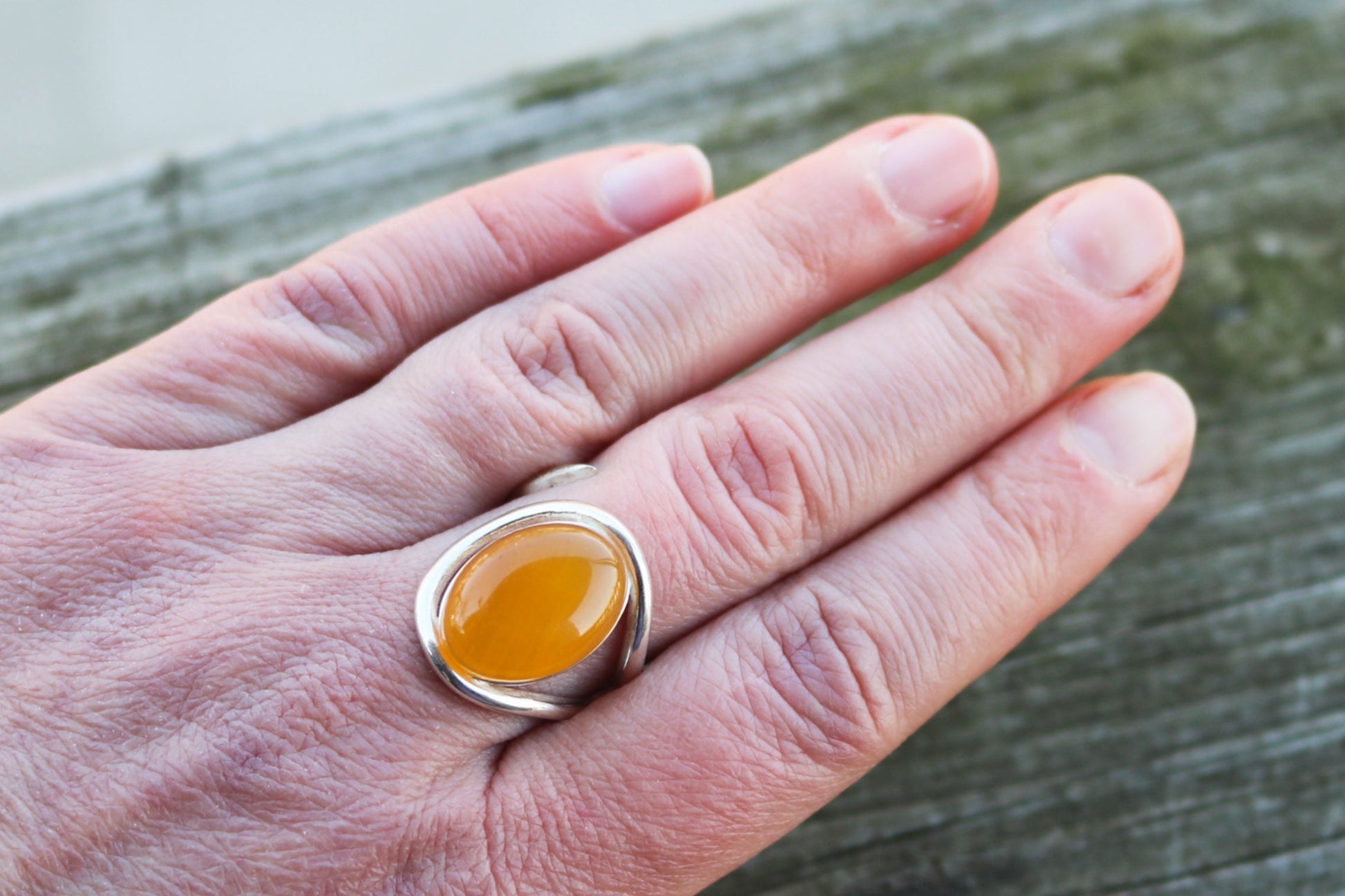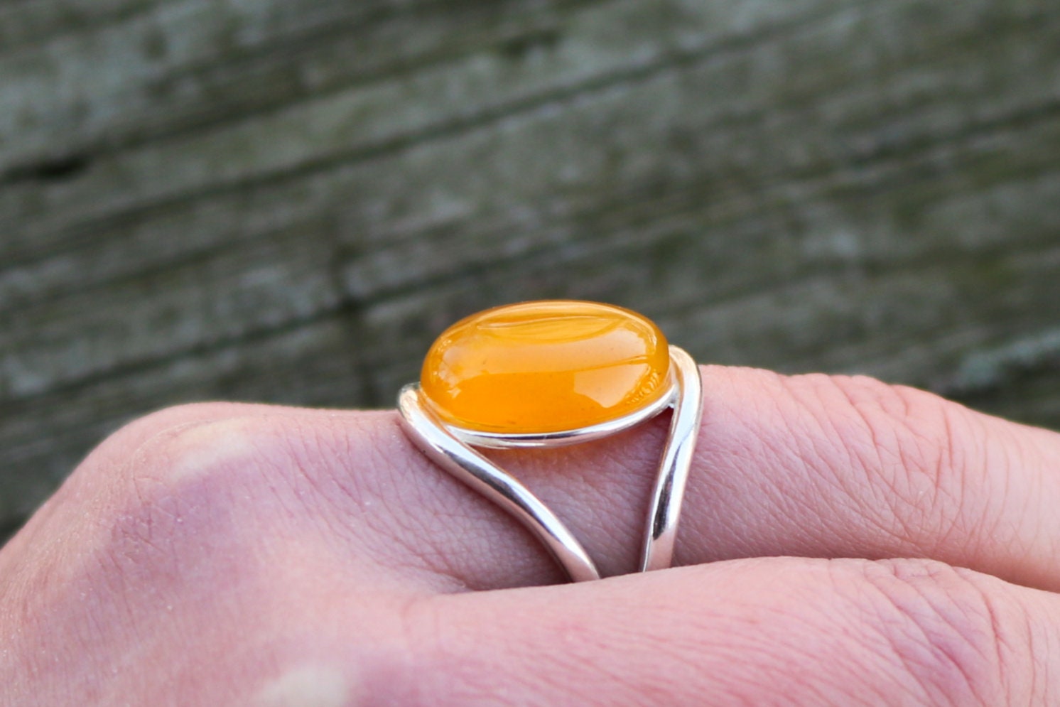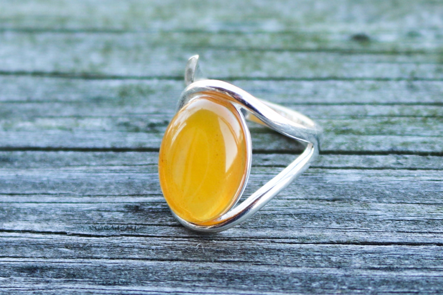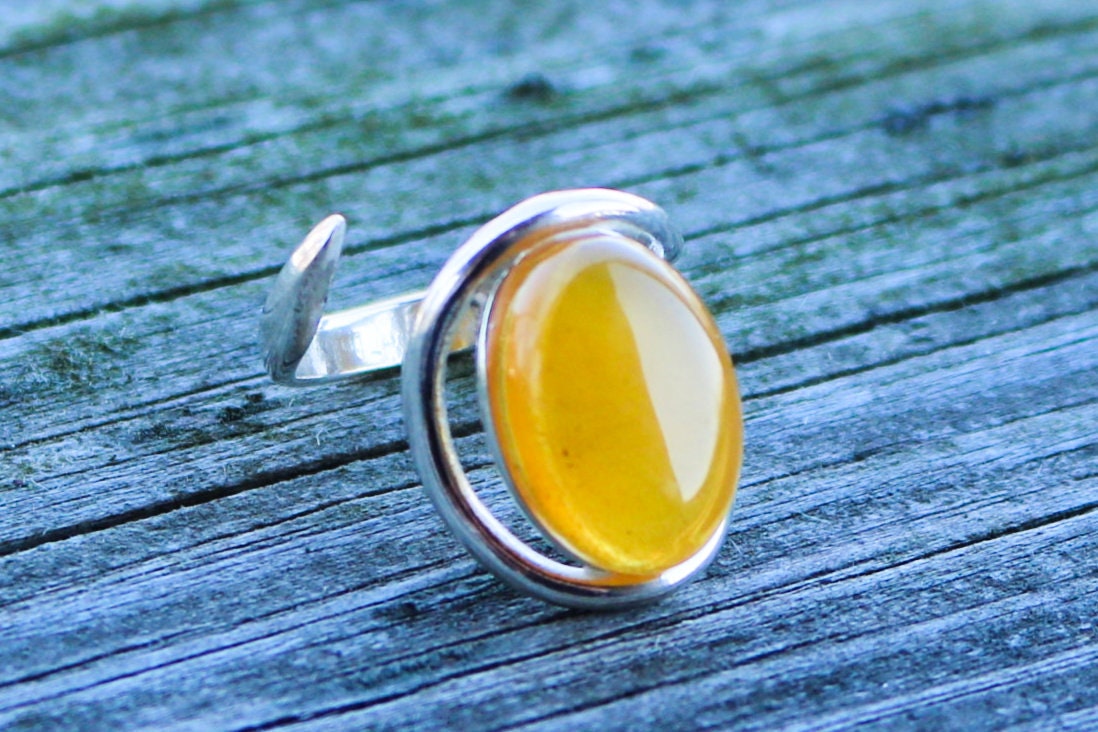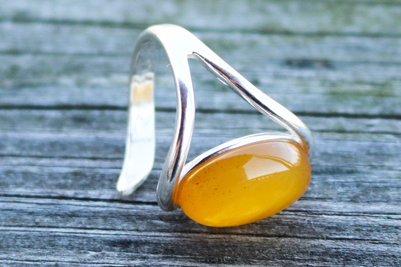 Baltic Amber ring in rare natural untreated cloudy yellow color. Set in 925 sterling silver.