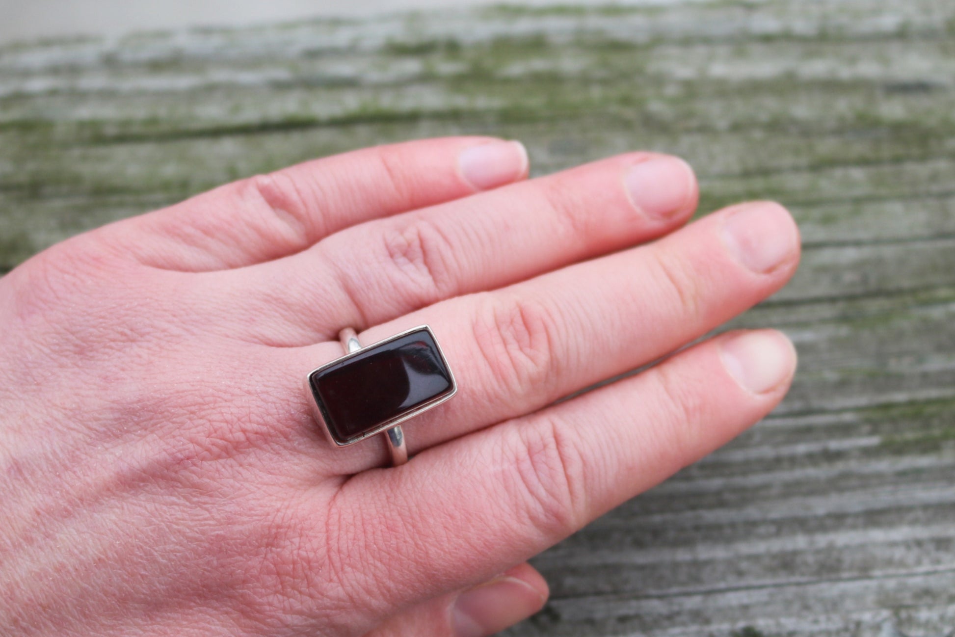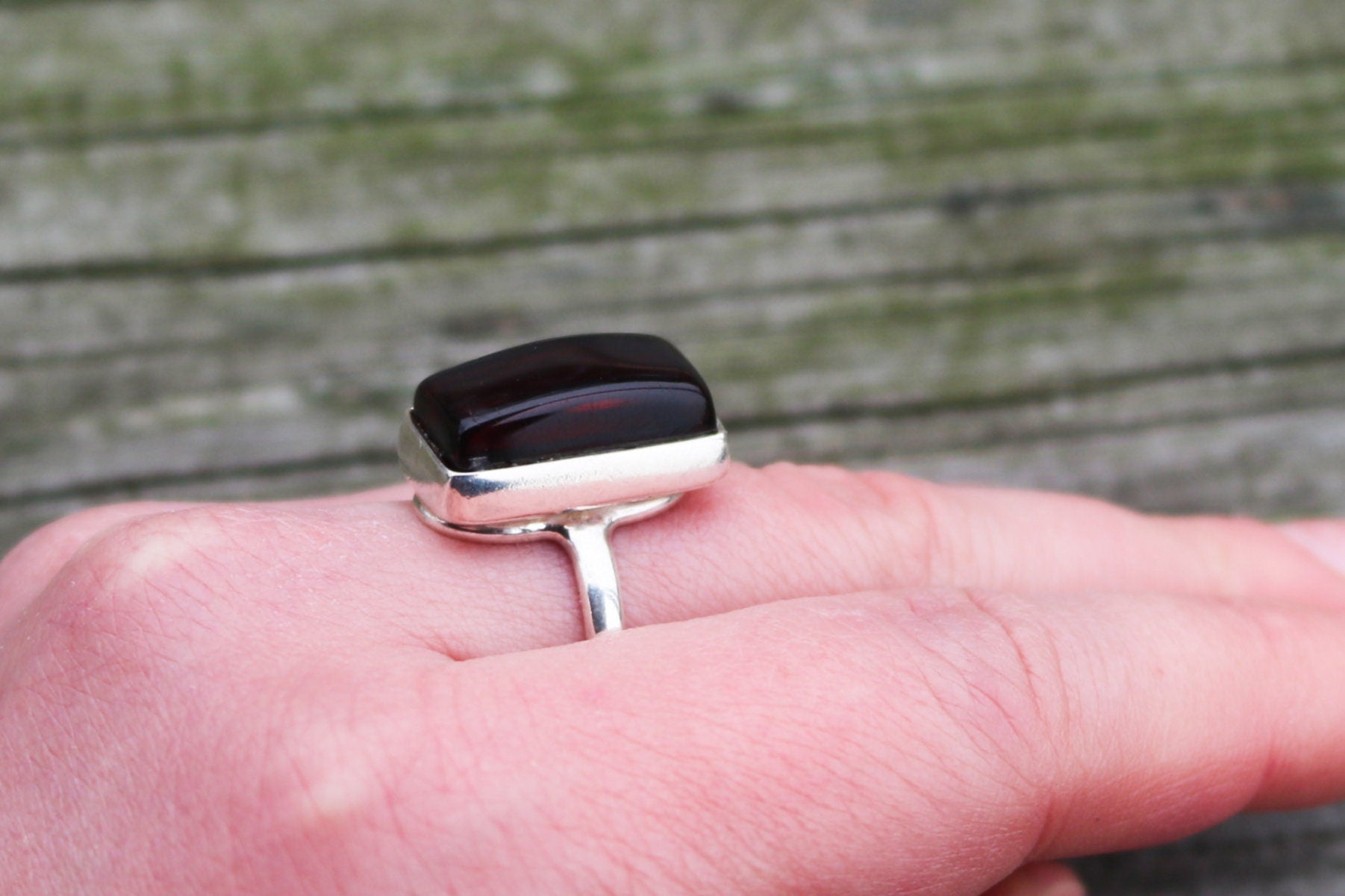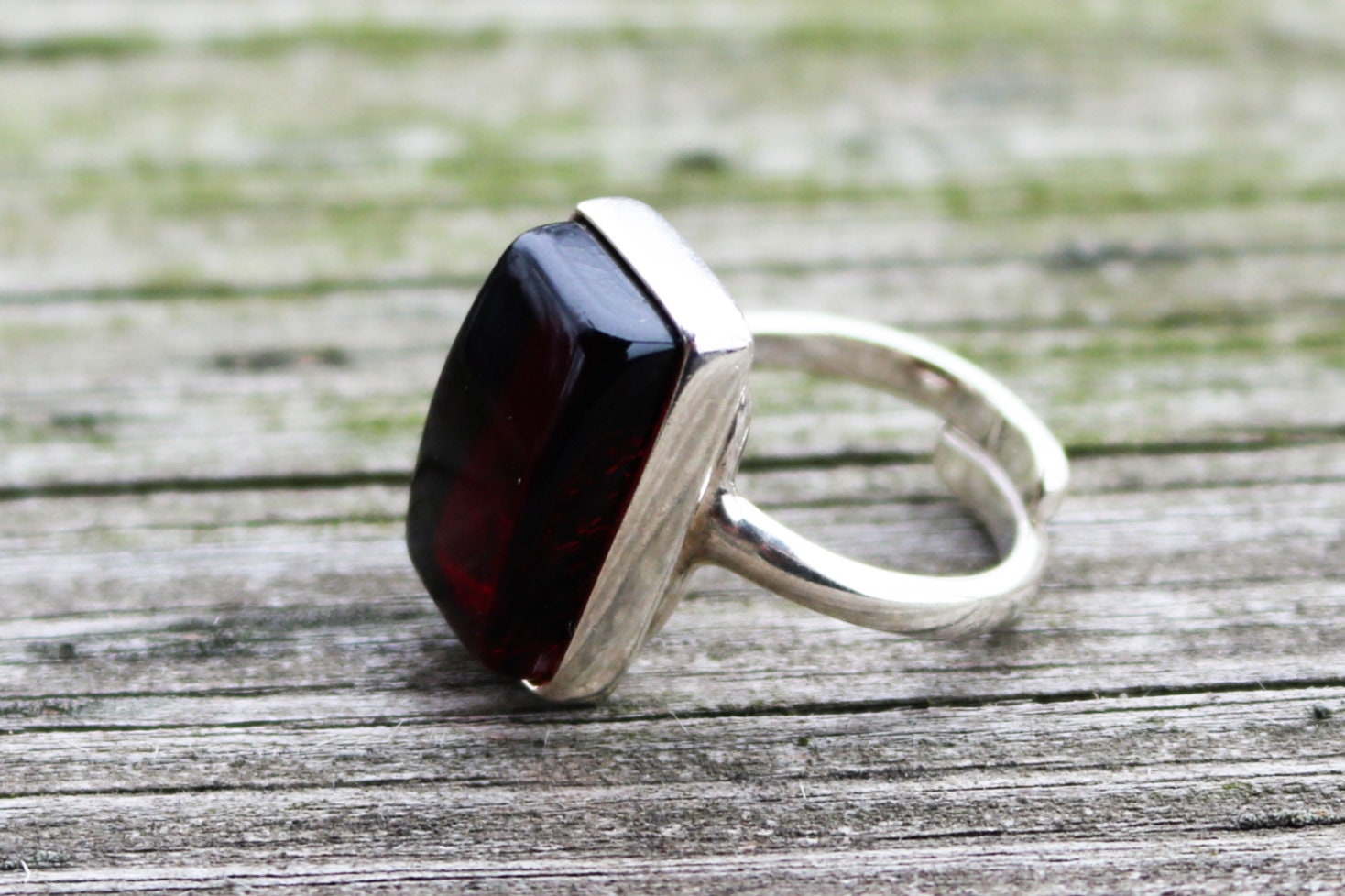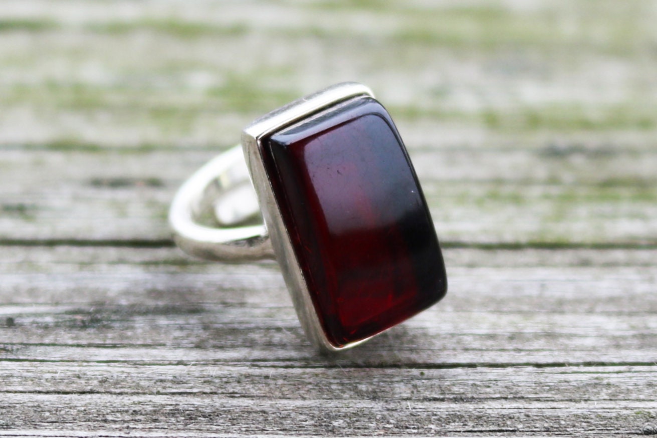 Baltic Amber Ring Cherry Adjustable Renctangle Natural Unisex Jewelry 8.4 gram