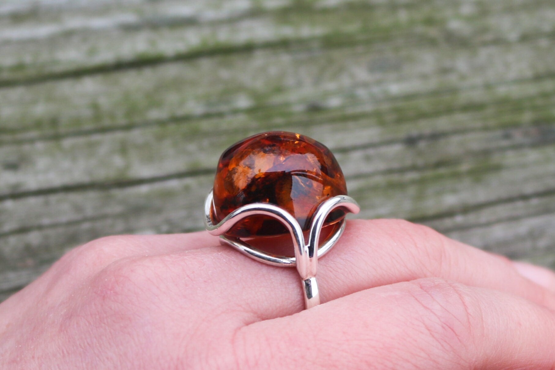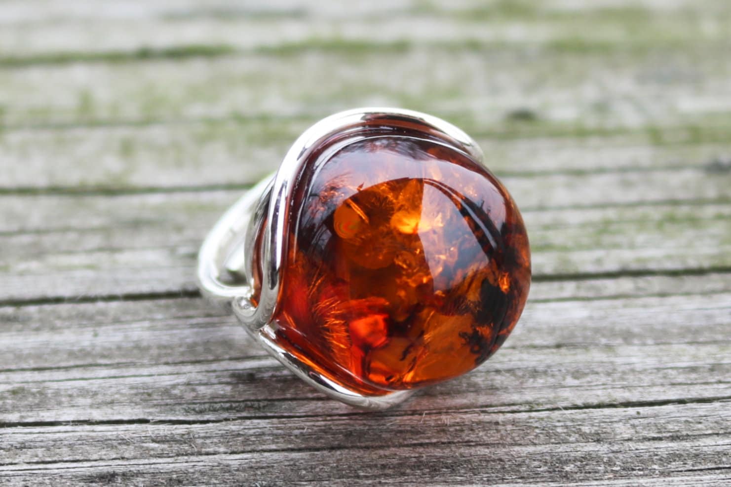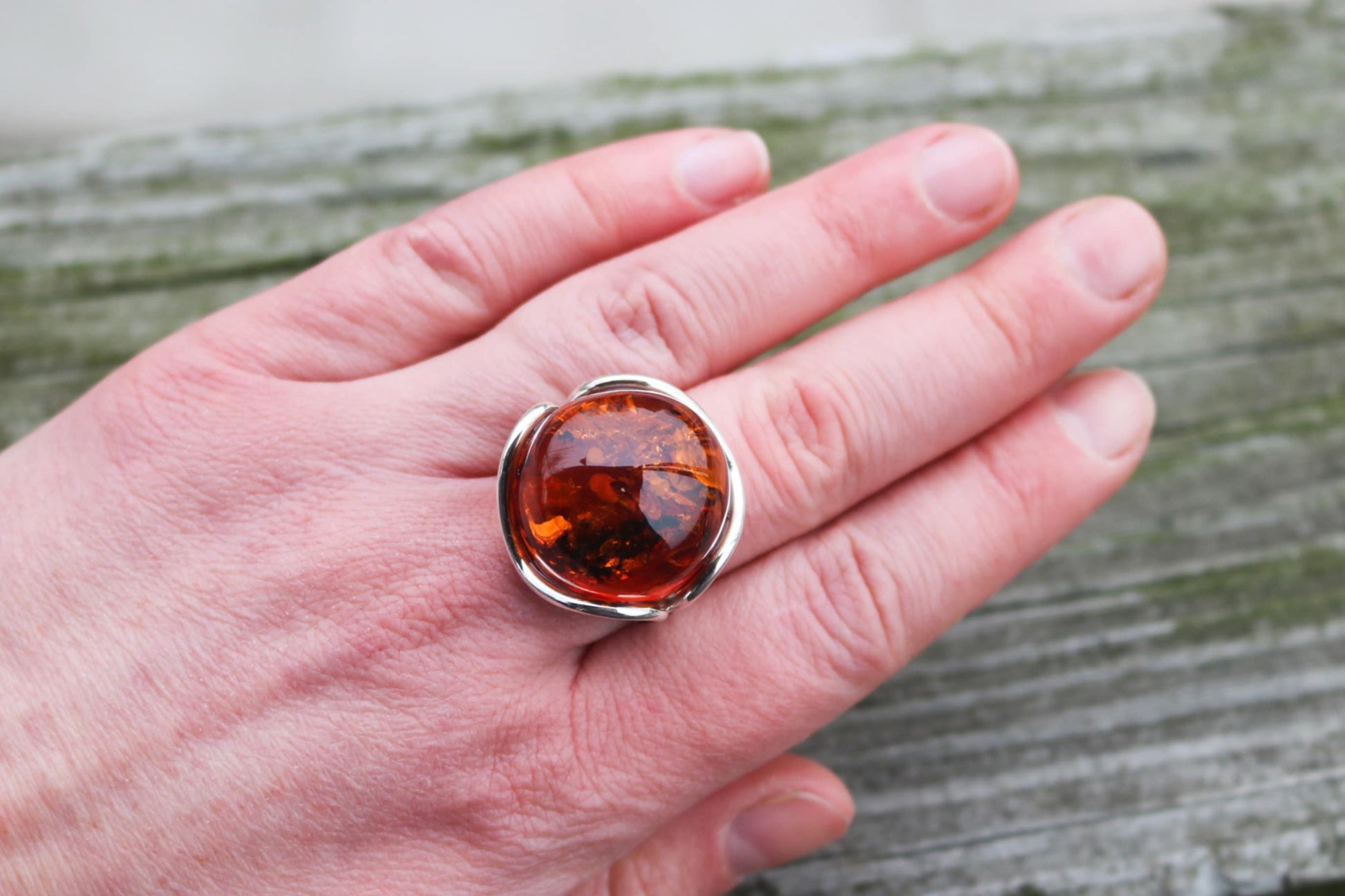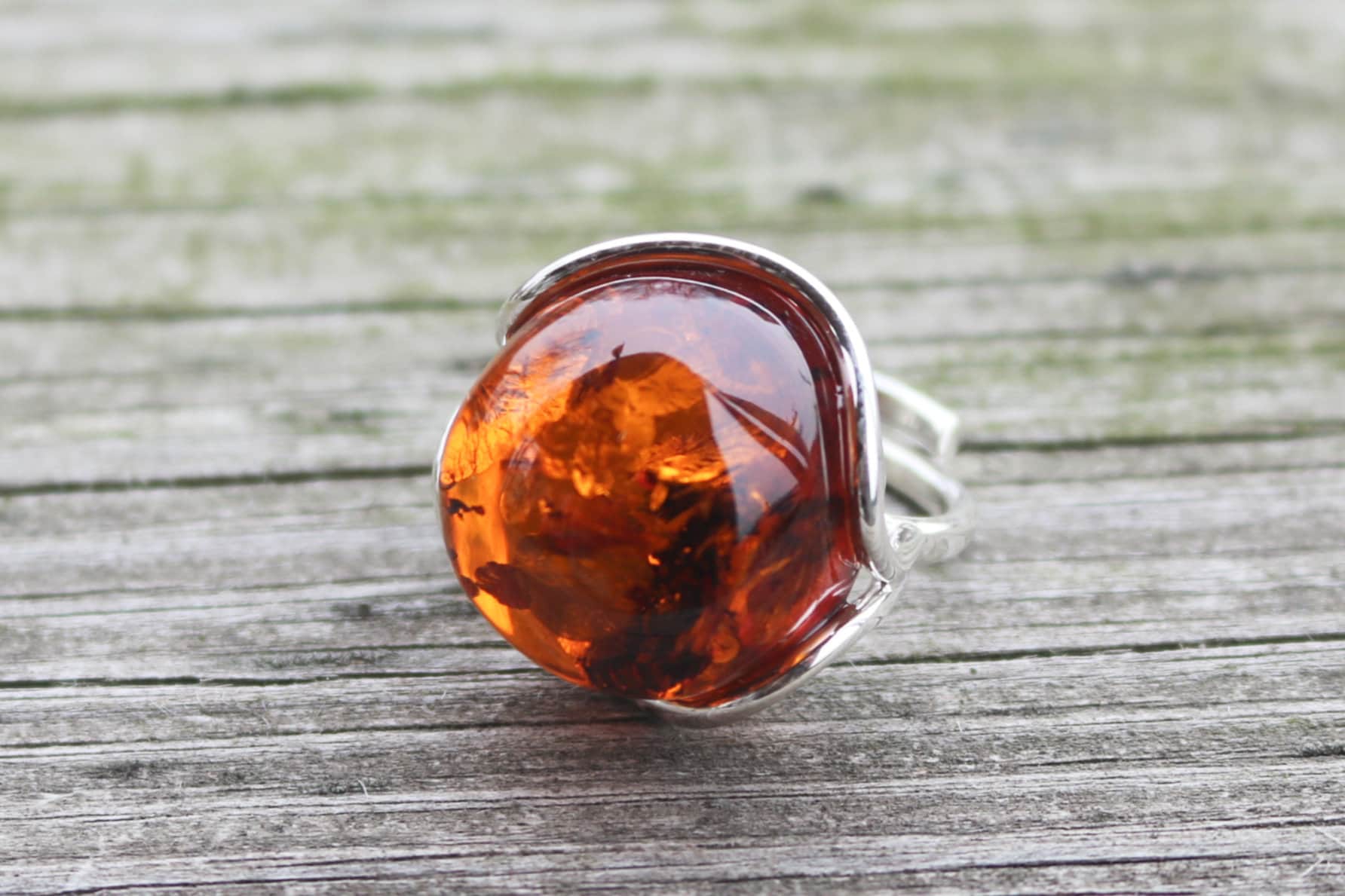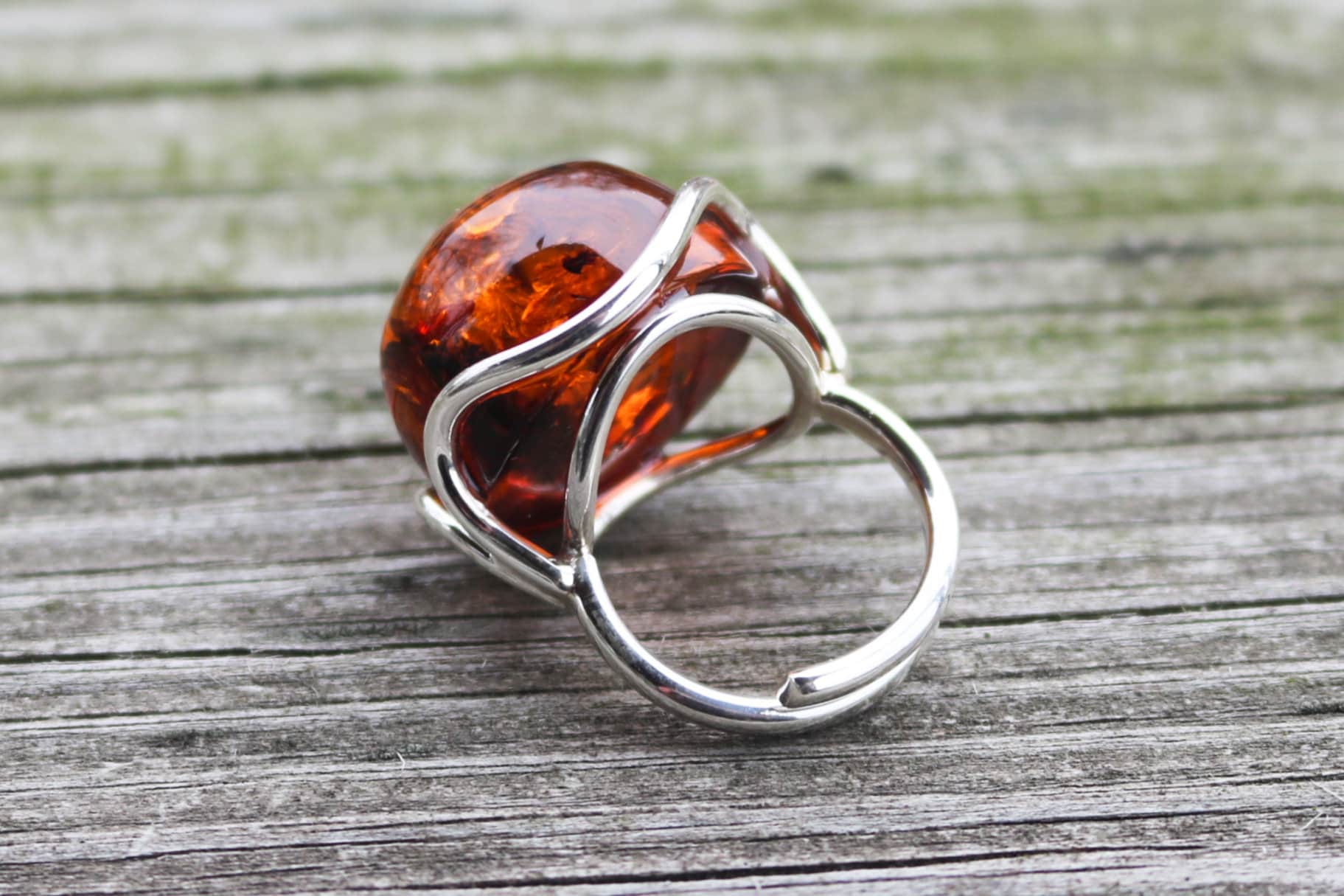 Baltic Amber ring made out of sparkling cognac color. Set in 925 sterling silver.